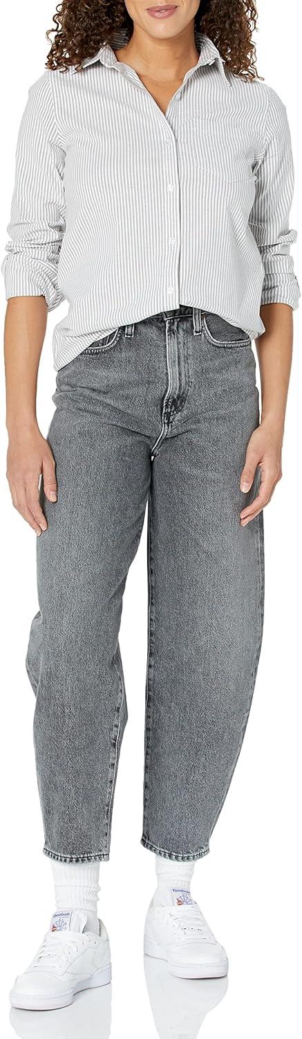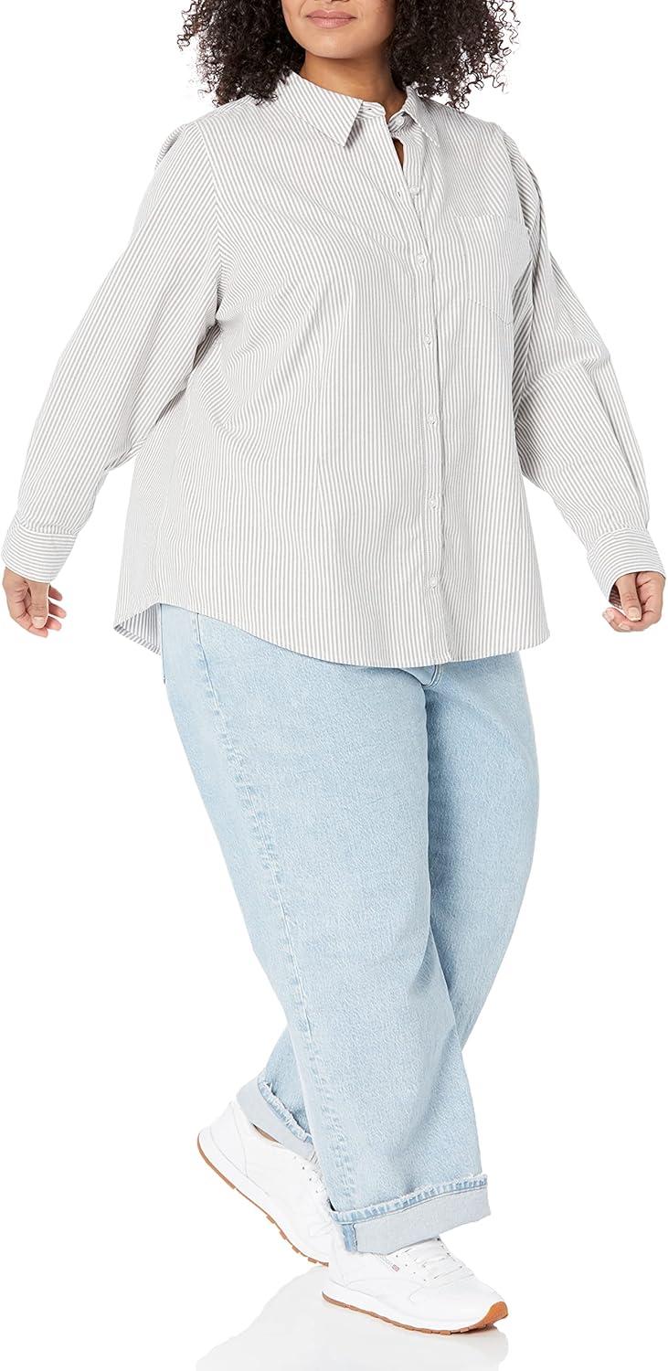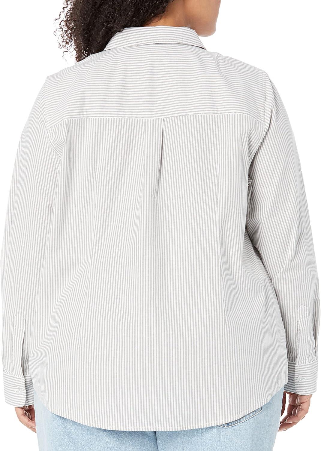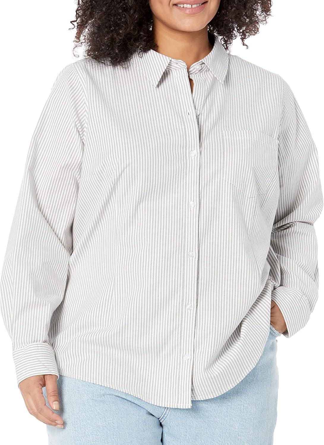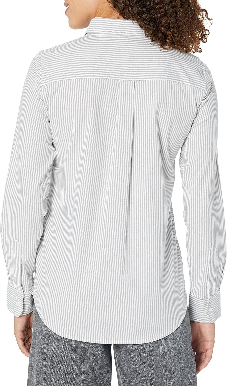 Amazon Essentials Women’s Long Sleeve Button Down Stretch Oxford Shirt (Available in Plus Size)(Grey Stripe)
