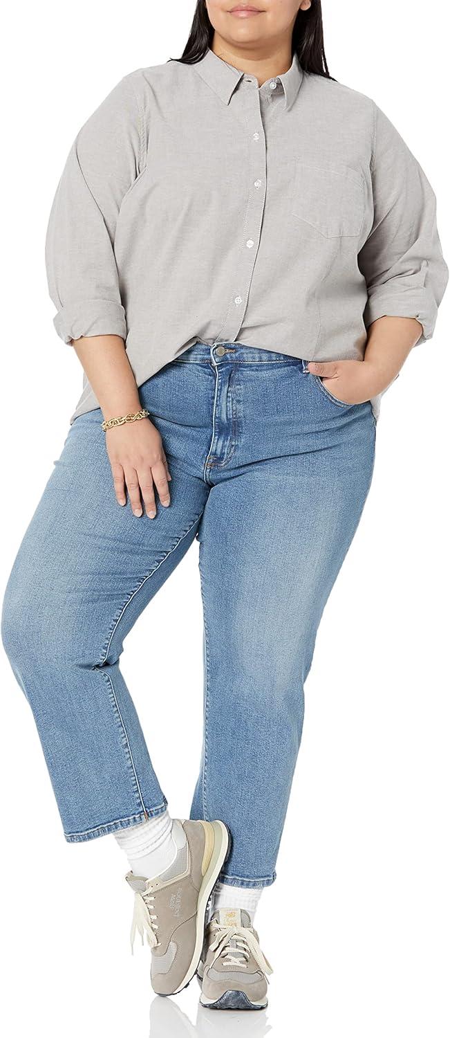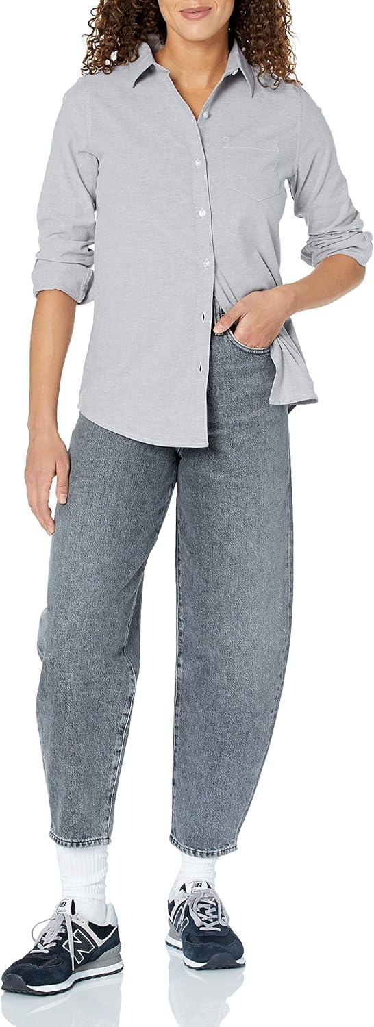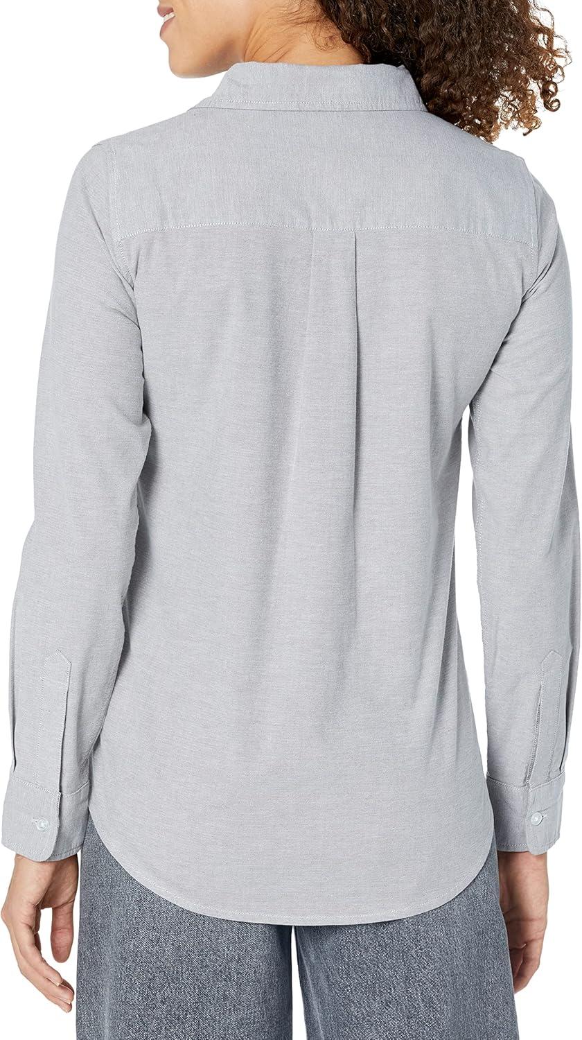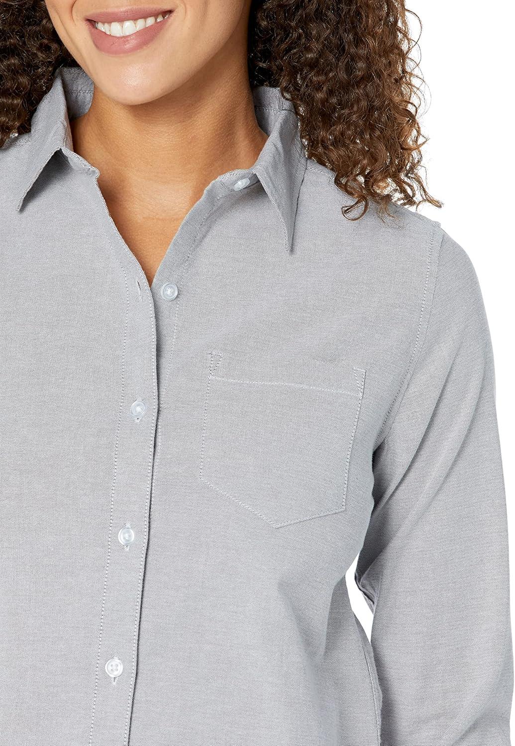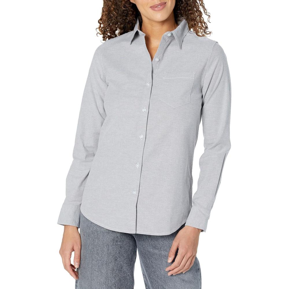 Amazon Essentials Women’s Long Sleeve Button Down Stretch Oxford Shirt (Available in Plus Size)(Grey)