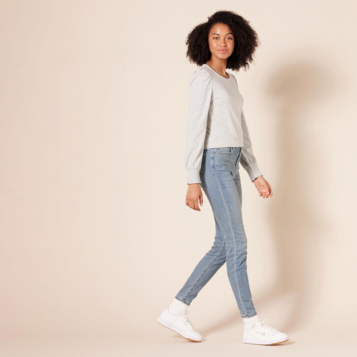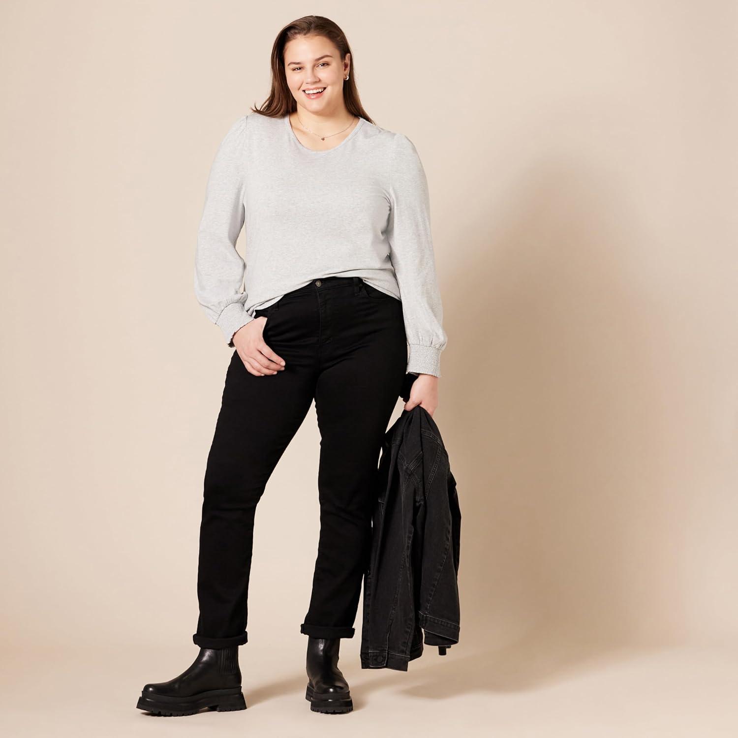 Amazon Essentials Women’s Long-Sleeve Crewneck Smocked Cuff T-Shirt(Navy)