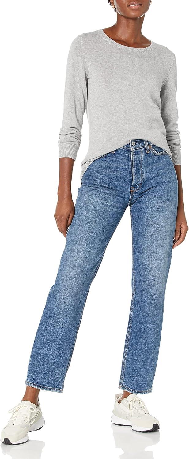 Amazon Essentials Women’s Long-Sleeve Lightweight Crewneck Sweater (Available in Plus Size)(Light Grey Heather)