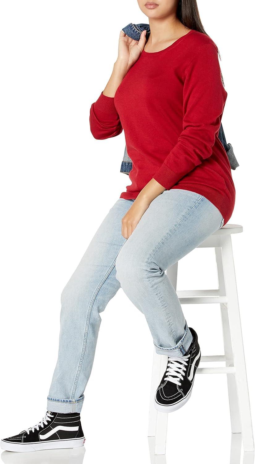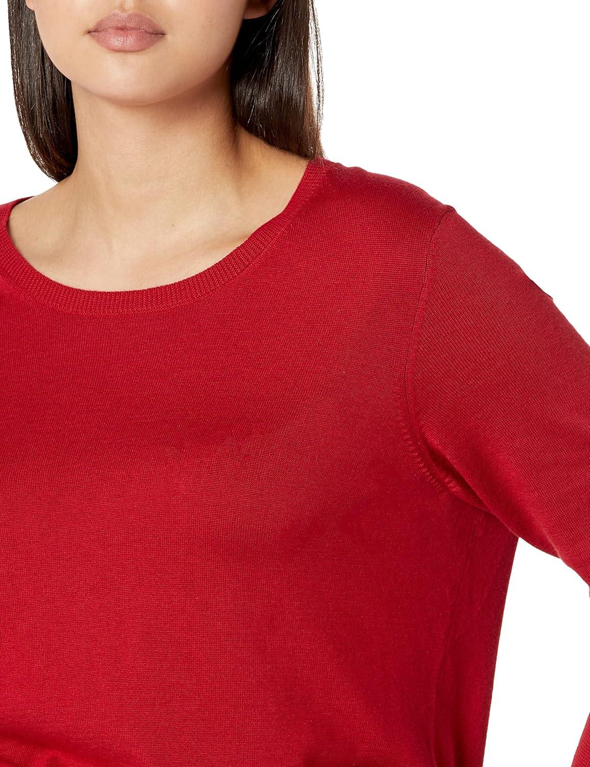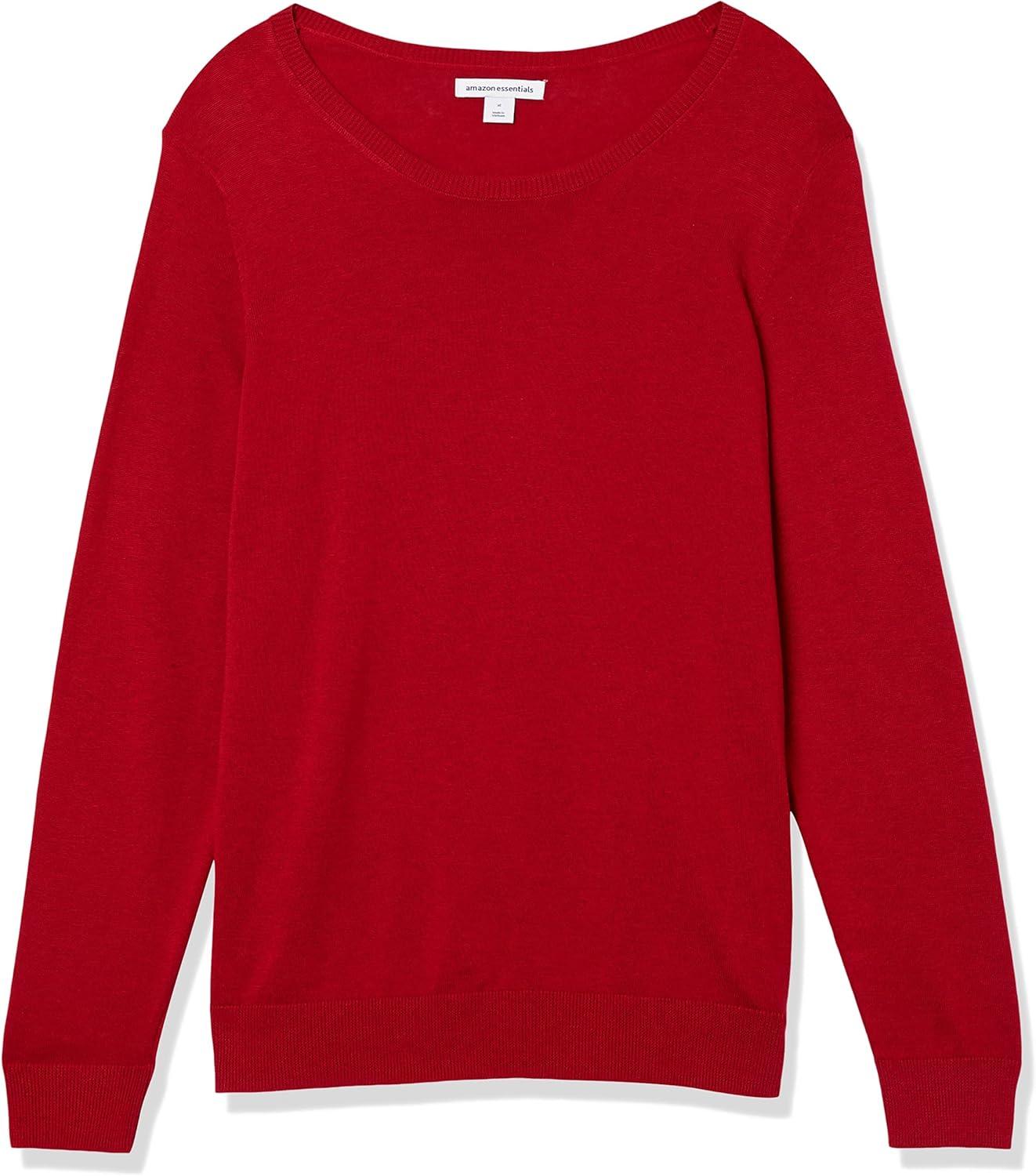 Amazon Essentials Women's Long-Sleeve Lightweight Crewneck Sweater (Available in Plus Size)(Red)