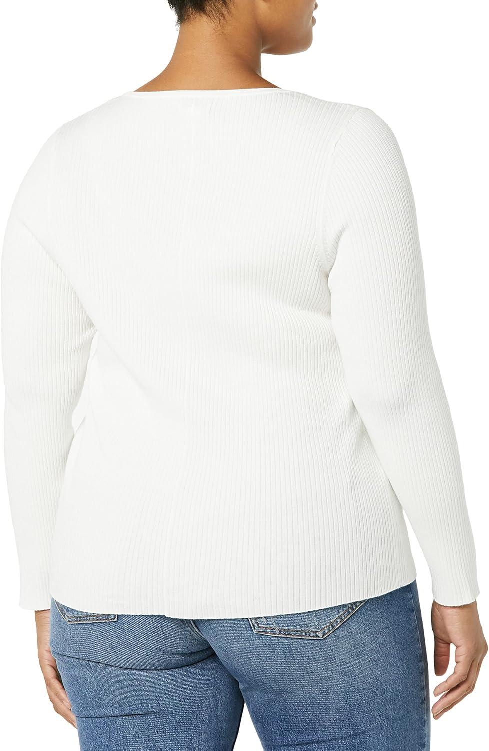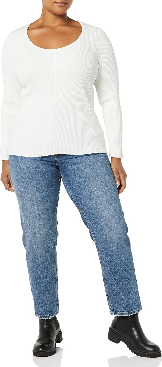 Amazon Essentials Women’s Long-Sleeve Sweater Fine Gauge Stretch Scoop Neck, Available in Plus Sizes(Ivory)
