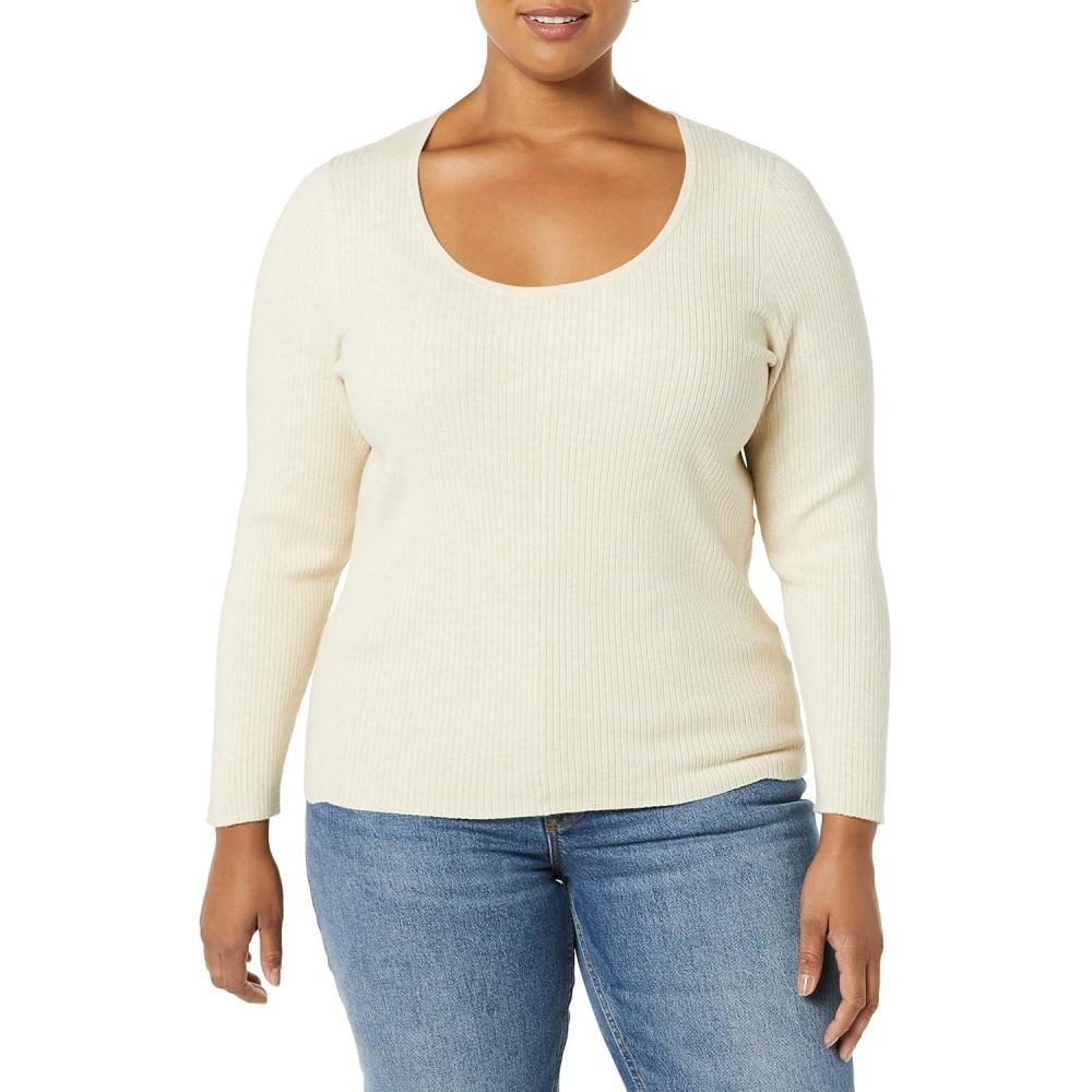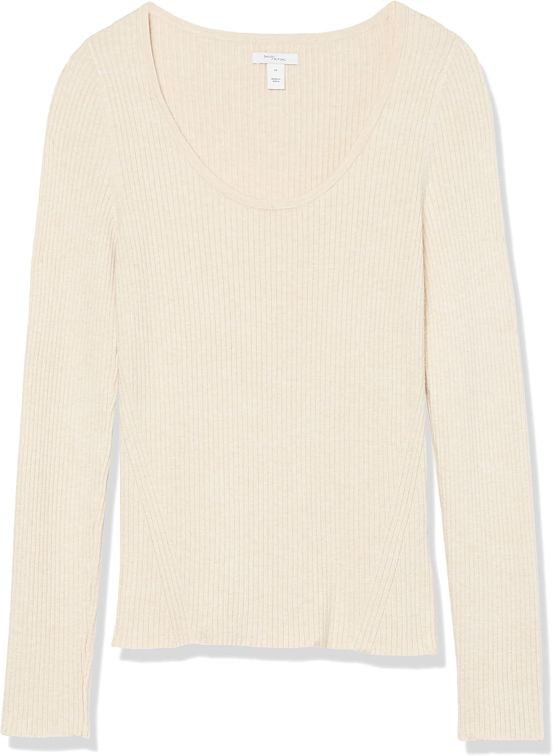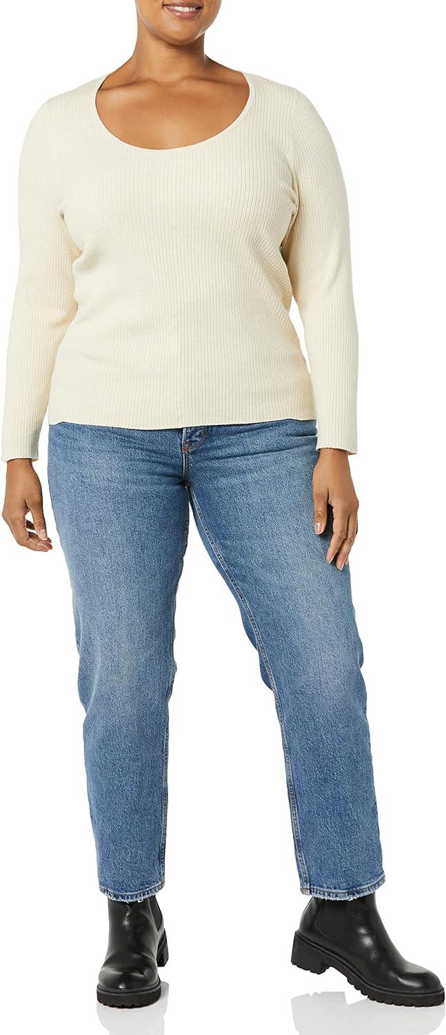 Amazon Essentials Women’s Long-Sleeve Sweater Fine Gauge Stretch Scoop Neck, Available in Plus Sizes(Sand Heather)