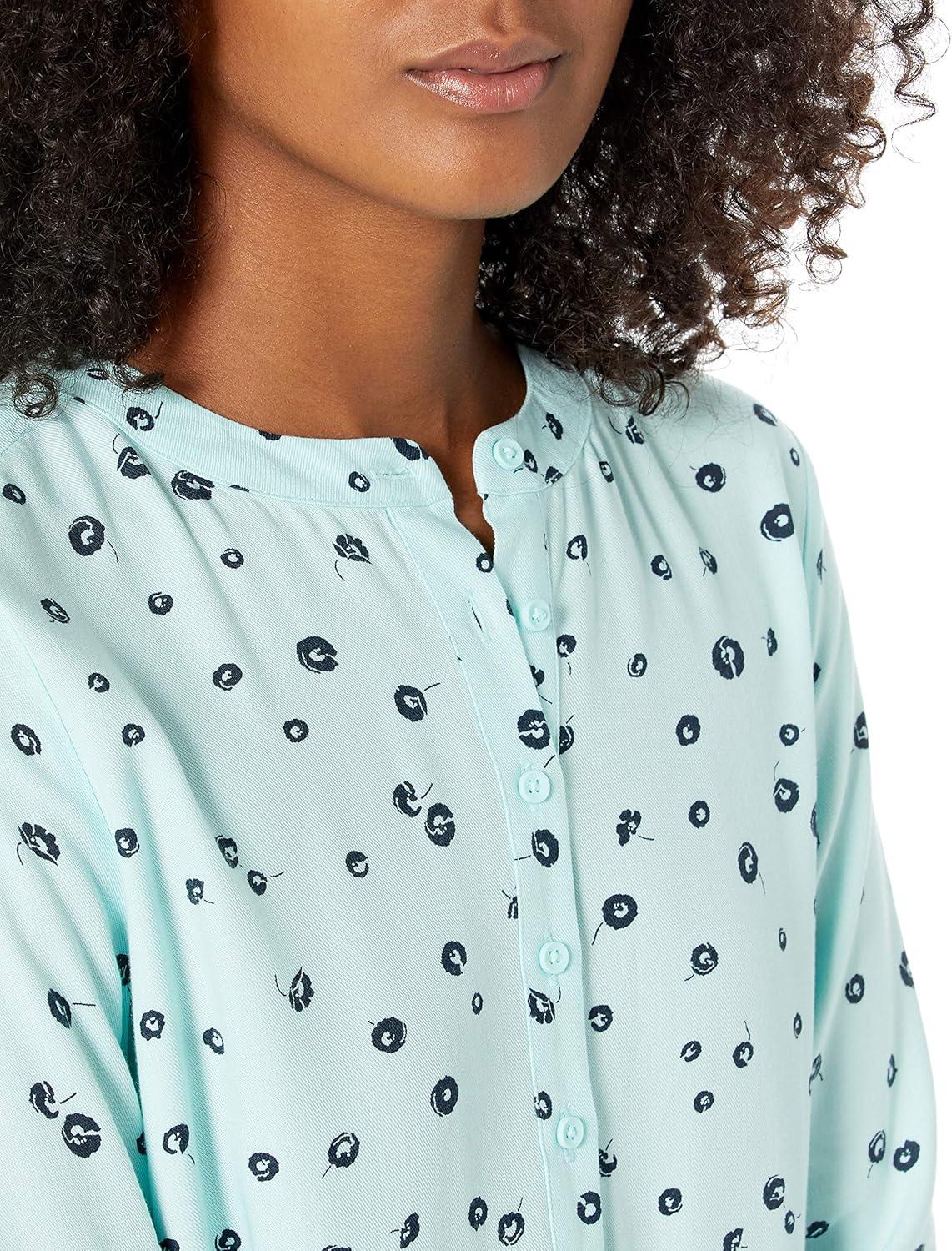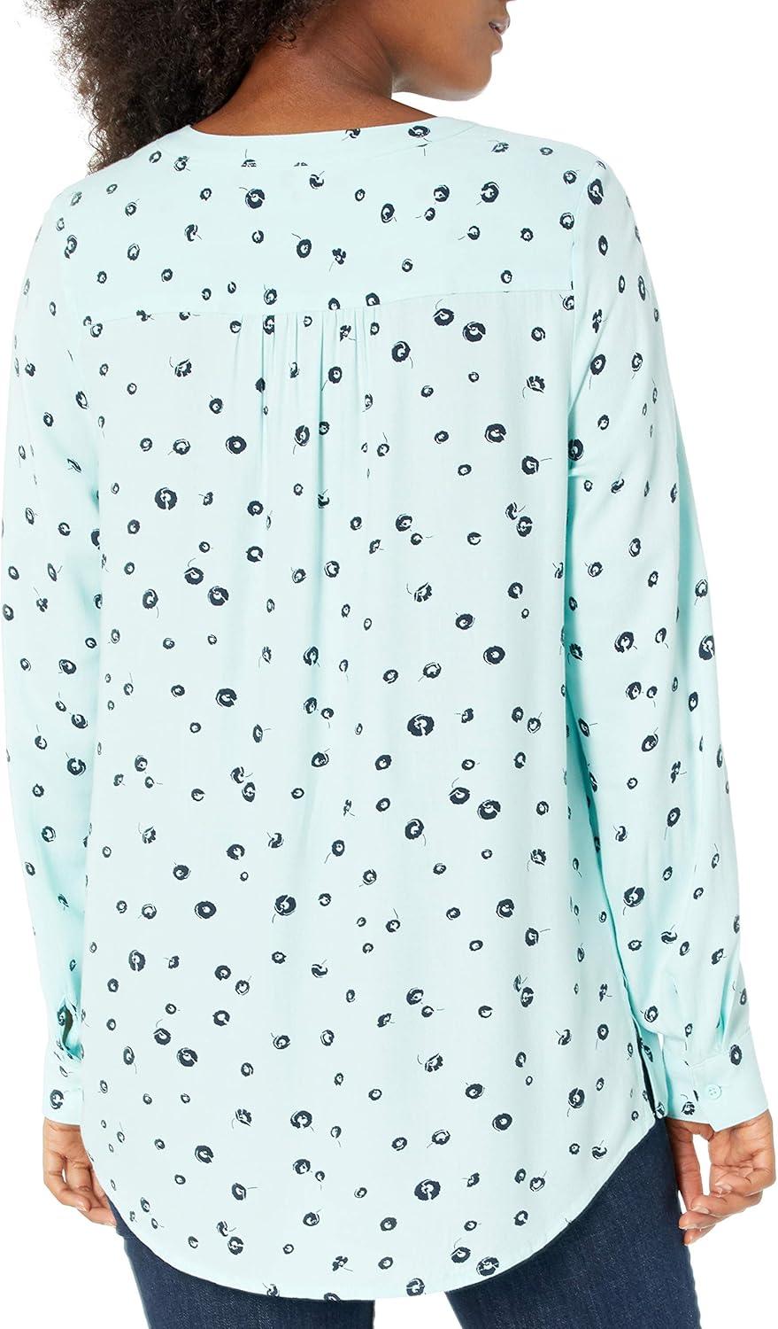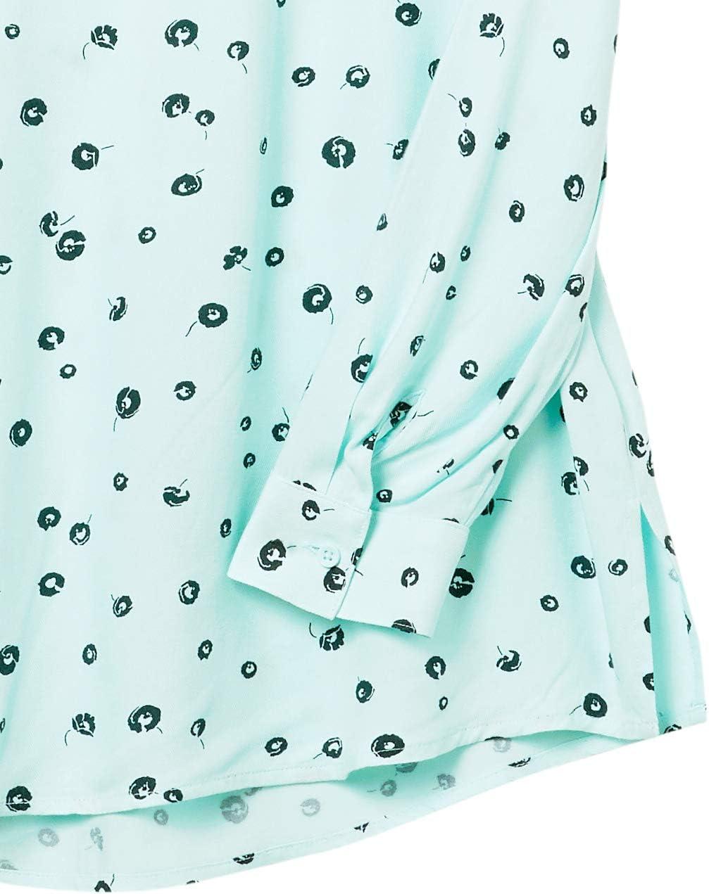 Amazon Essentials Women's Long-Sleeve Woven Blouse(Aqua Blue Poppy)