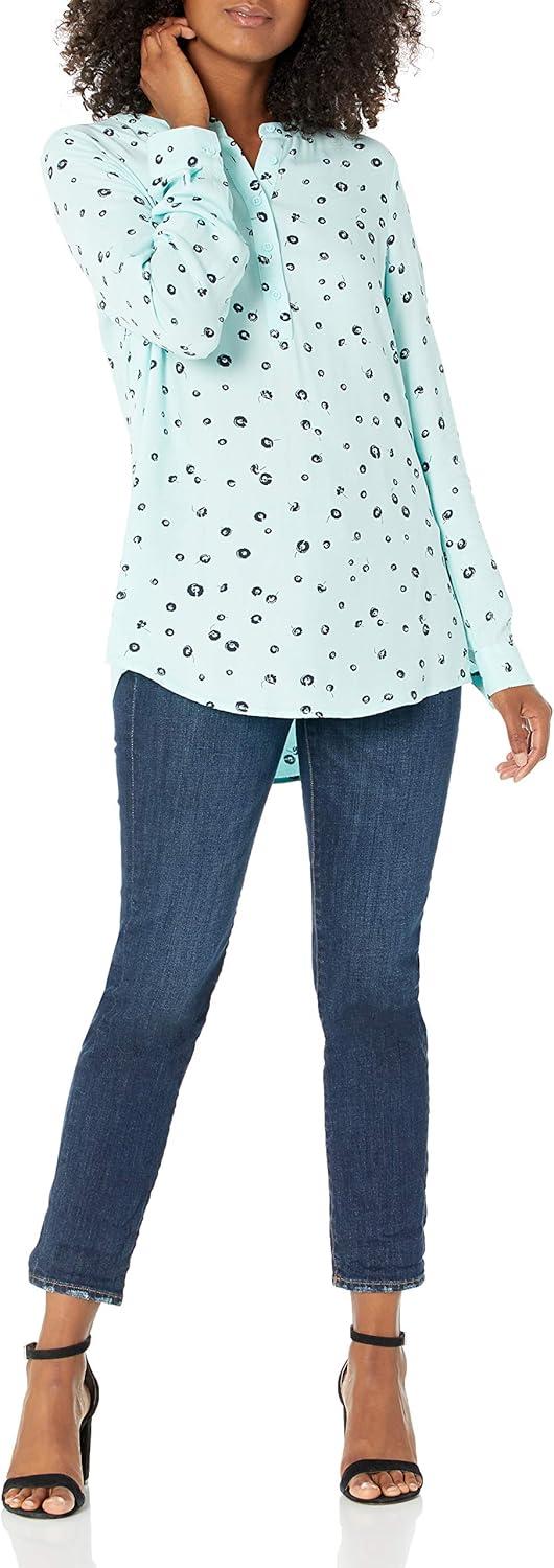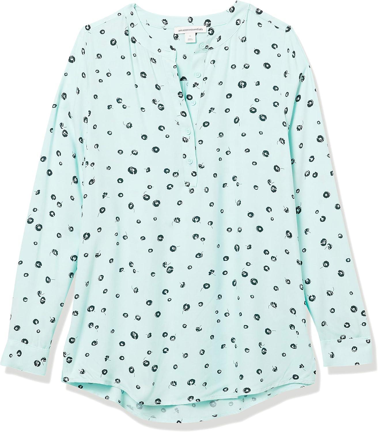 Amazon Essentials Women’s Long-Sleeve Woven Blouse(Aqua Blue Poppy)