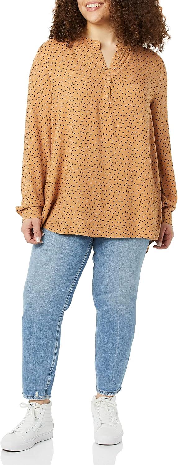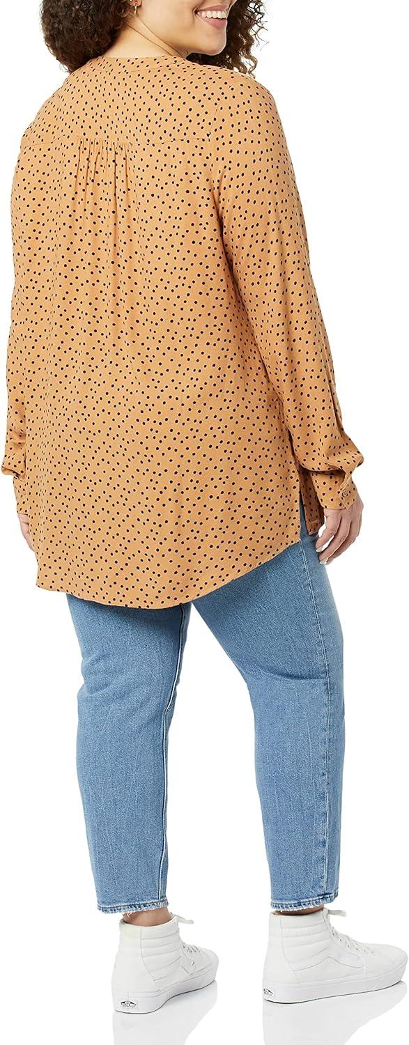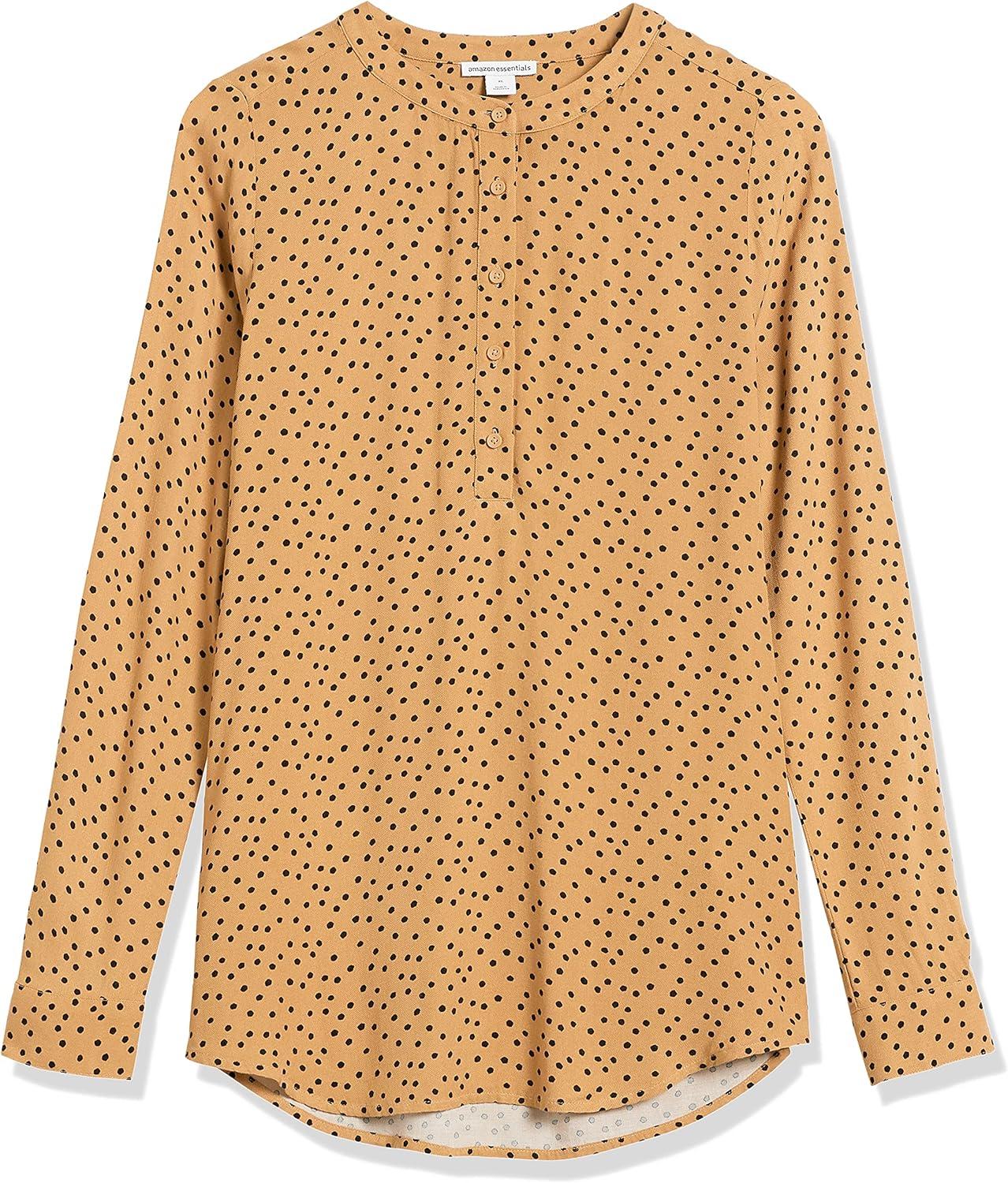 Amazon Essentials Women’s Long-Sleeve Woven Blouse(Black Camel Dots)