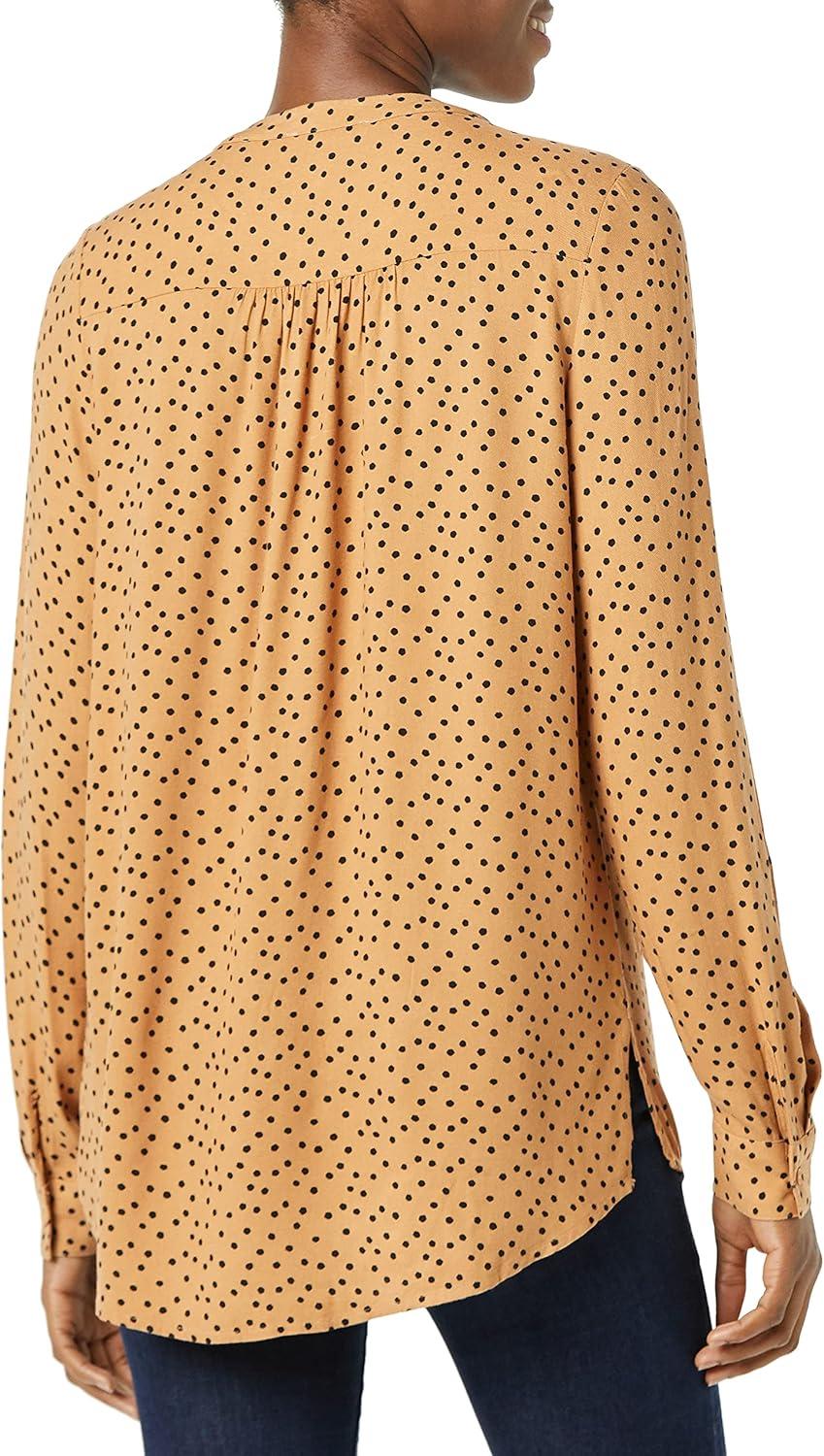 Amazon Essentials Women's Long-Sleeve Woven Blouse(Black Camel Dots)