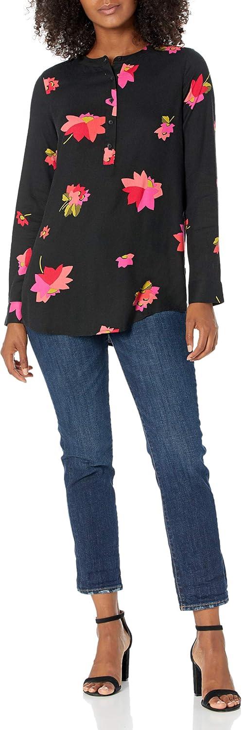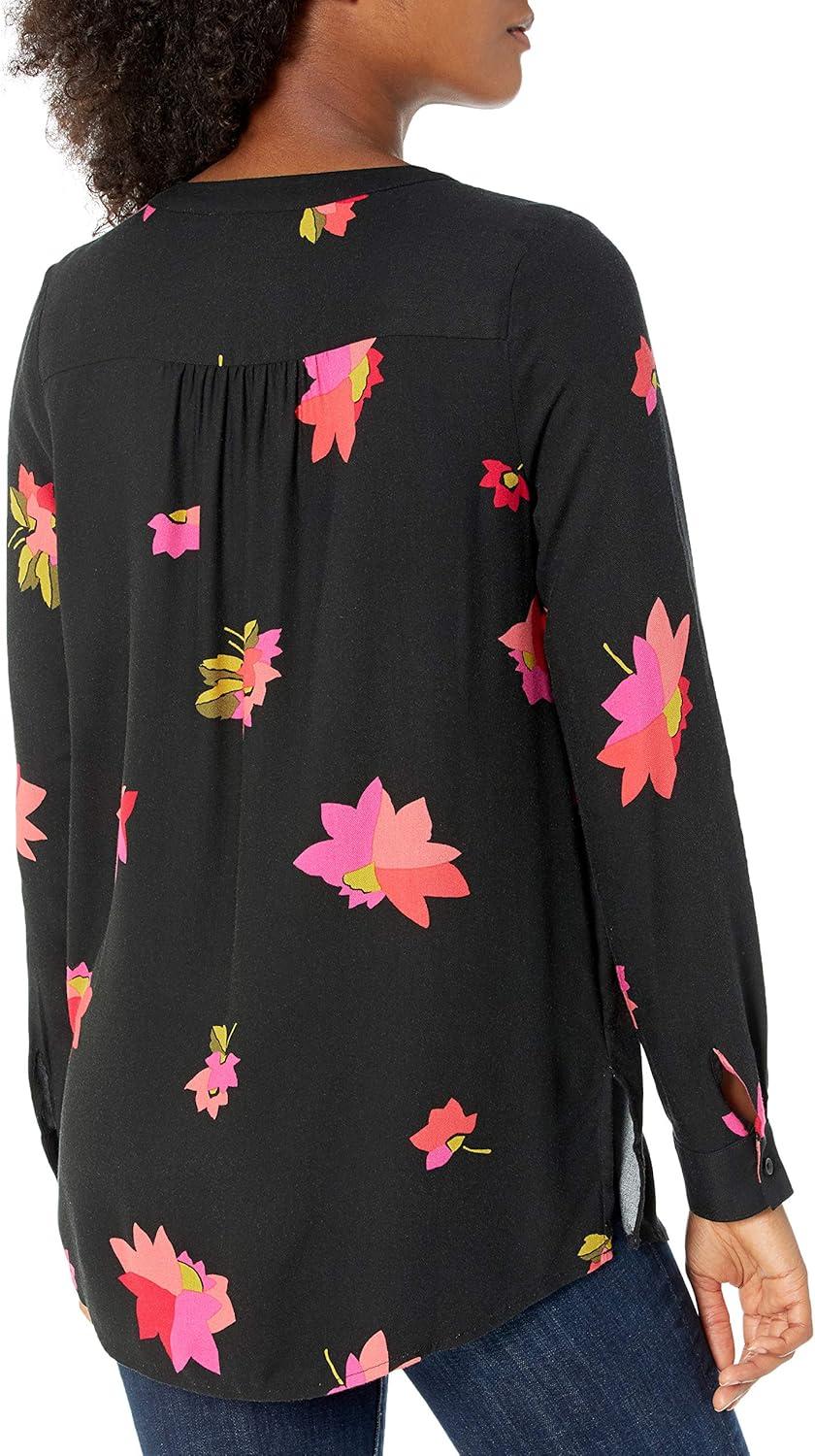 Amazon Essentials Women’s Long-Sleeve Woven Blouse(Black Pink Floral)