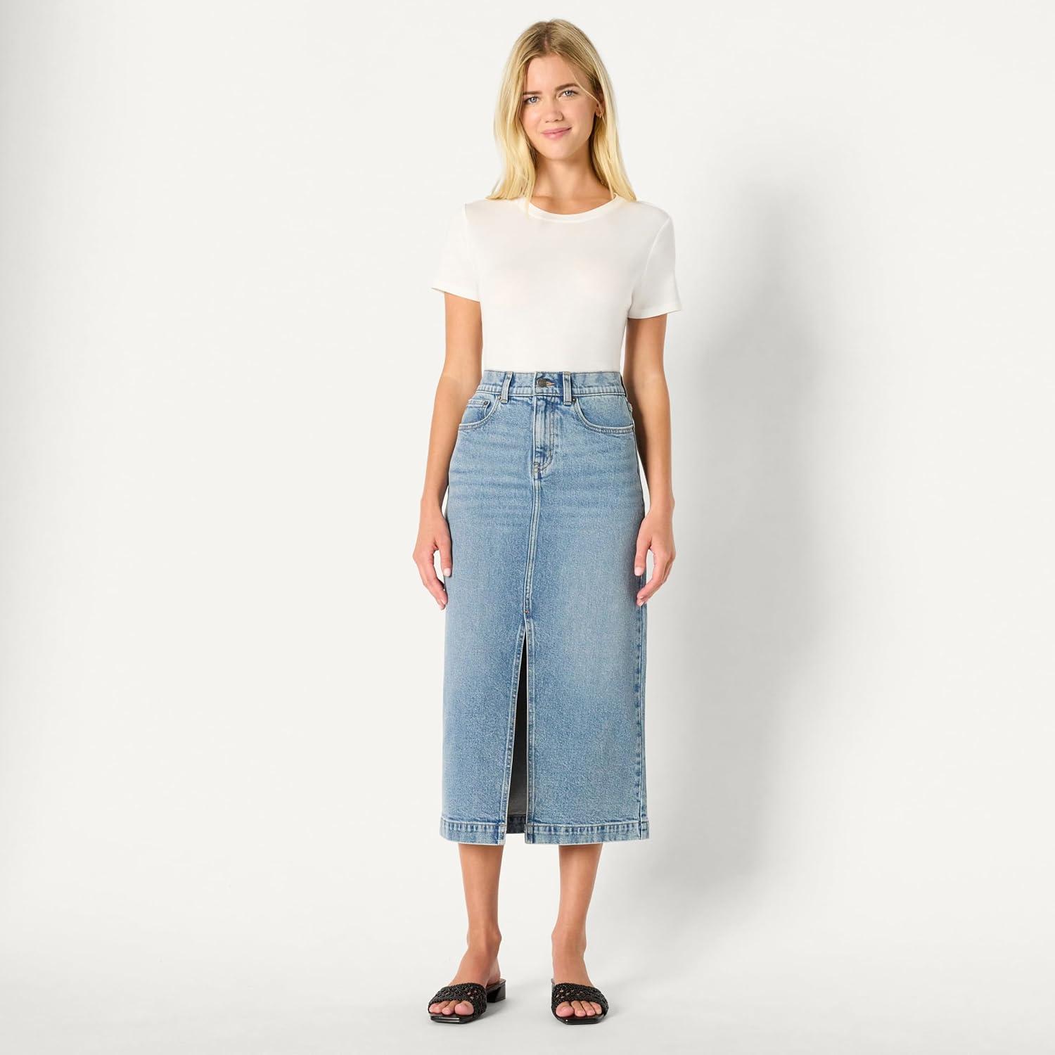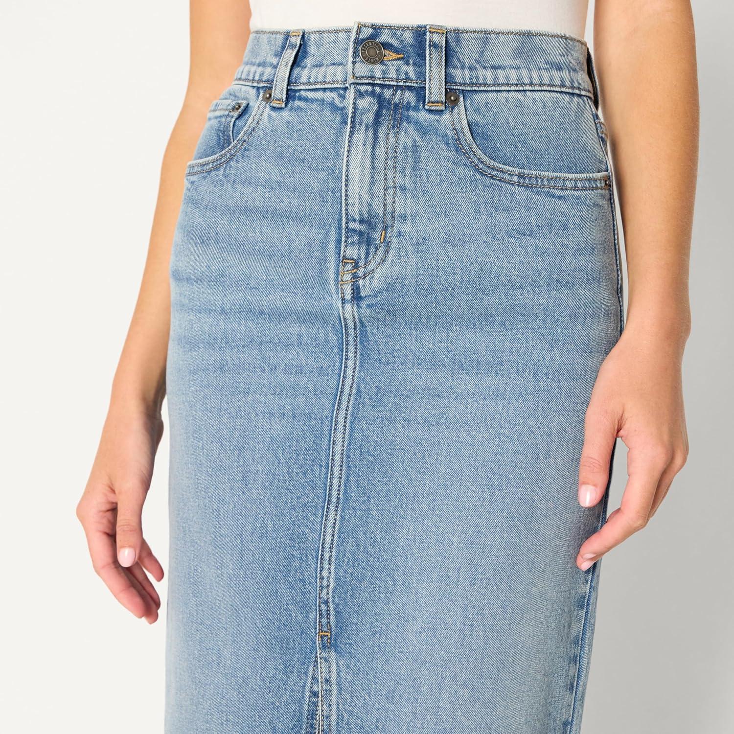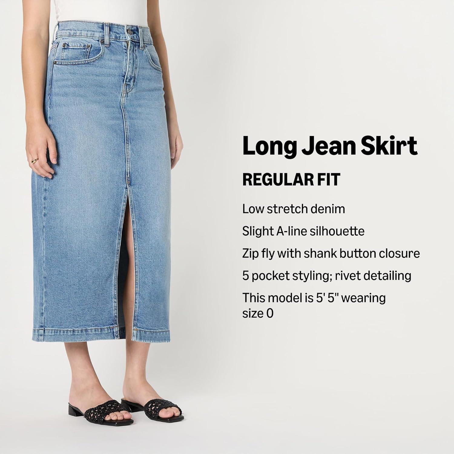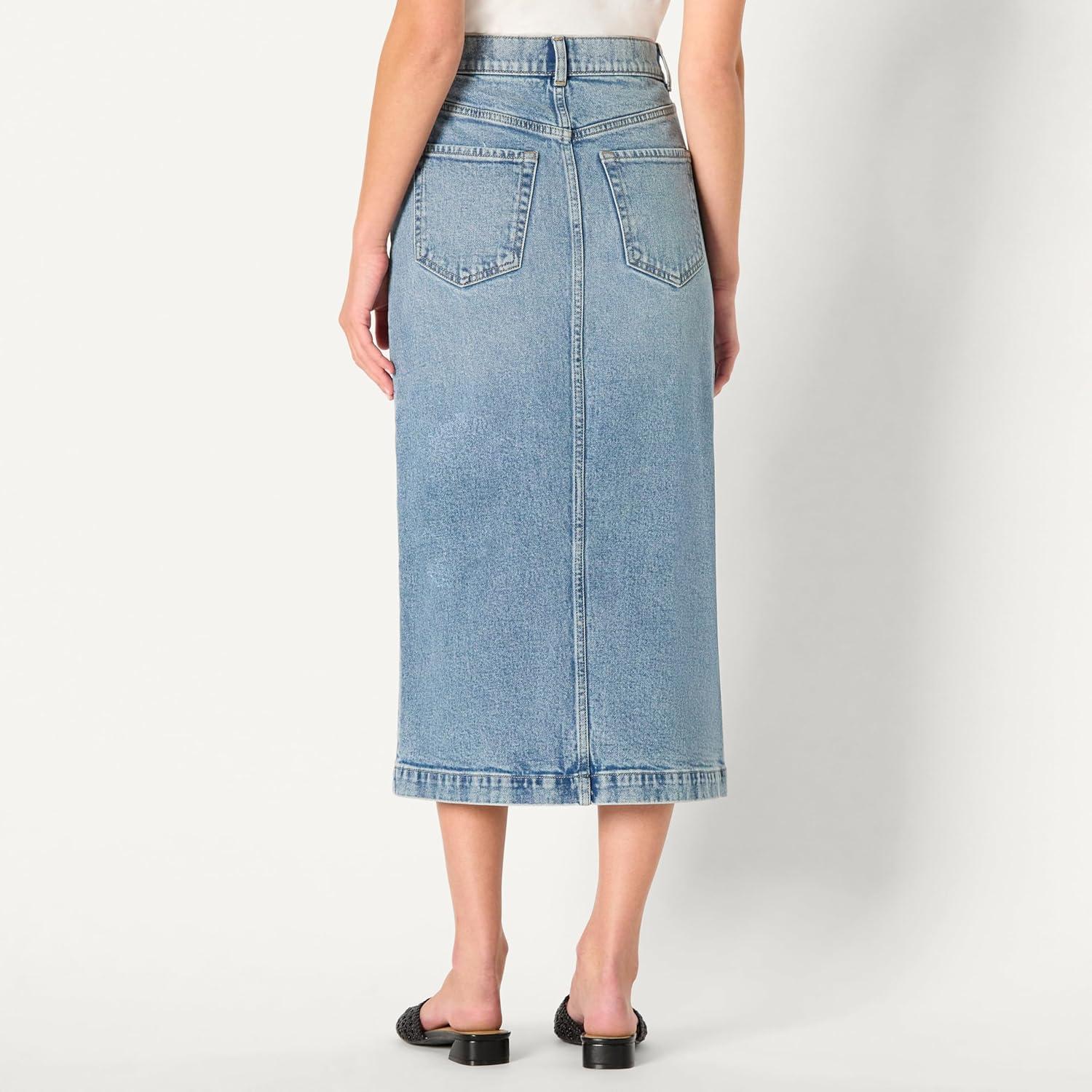 Amazon Essentials Women’s Low Stretch Regular-Fit High-Rise Long Jean Skirt(Authentic Medium Wash)