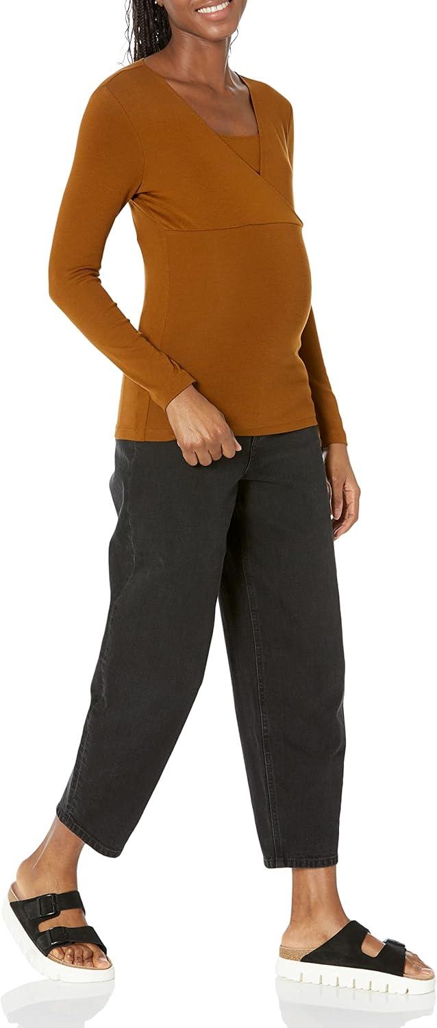 Amazon Essentials Women’s Maternity Nursing V-Neck Top(Dark Chestnut Brown)