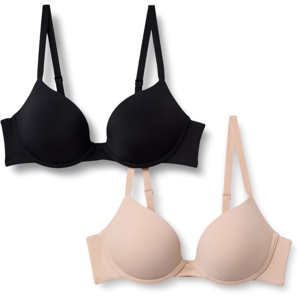 Amazon Essentials Women’s Microfiber Lined Push Up Plunge Bra, Pack of 2(Black/Rich Hazel)