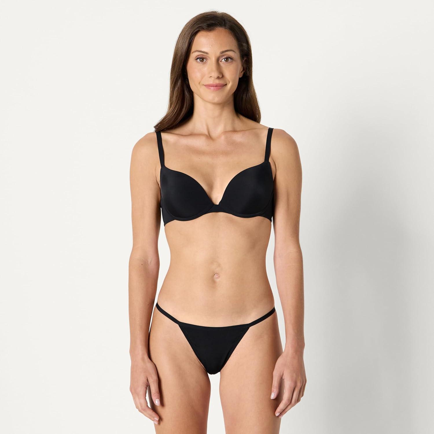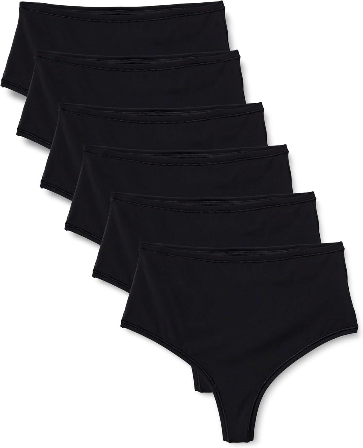 Amazon Essentials Women’s Microfiber Thong, Pack of 6(Black)