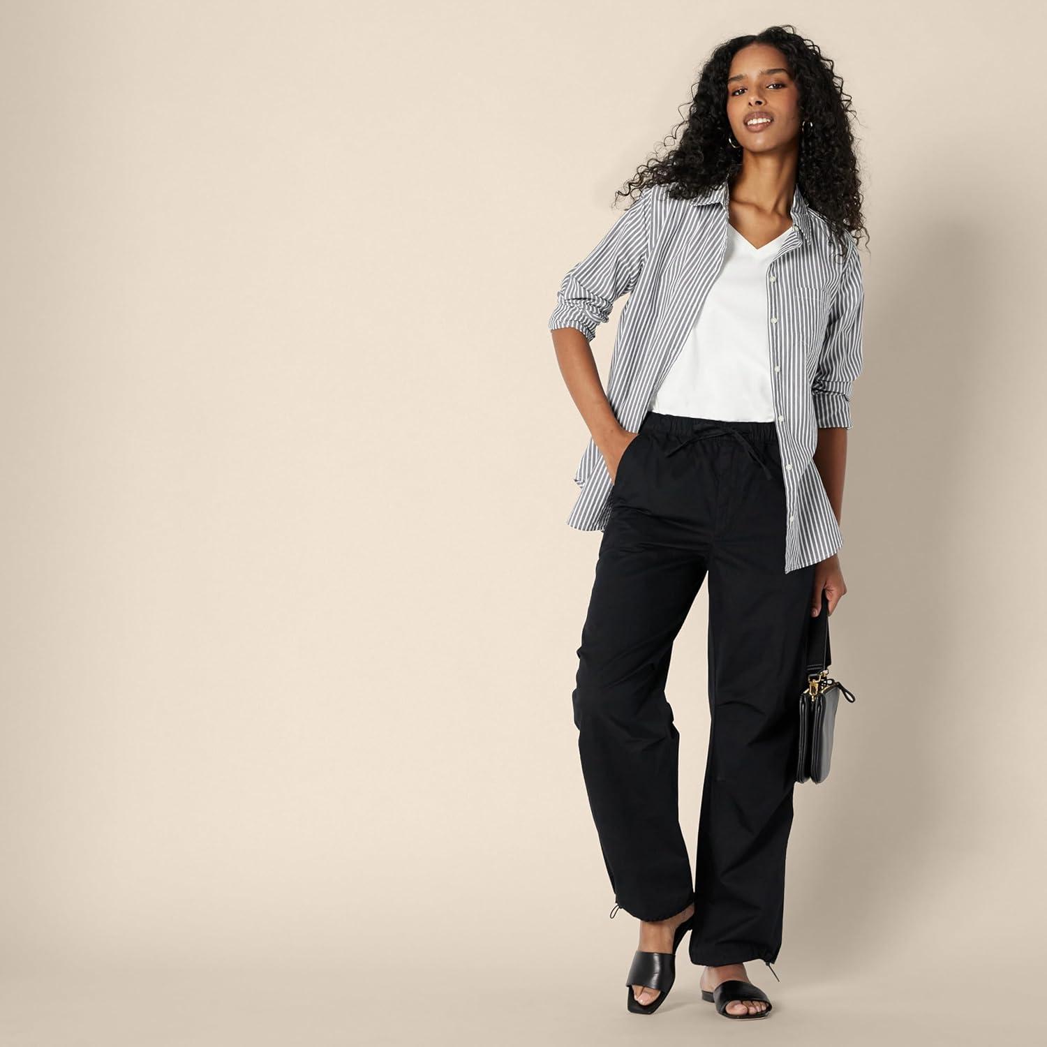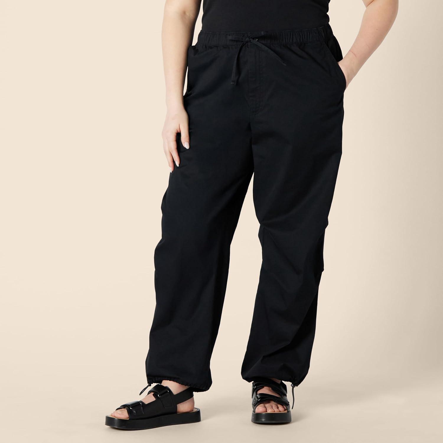 Get the Amazon Essentials Women’s Mid-Rise Baggy Loose-Fit Wide-Leg Parachute Pants(Black) you want at a price you can afford with our markdown sale.