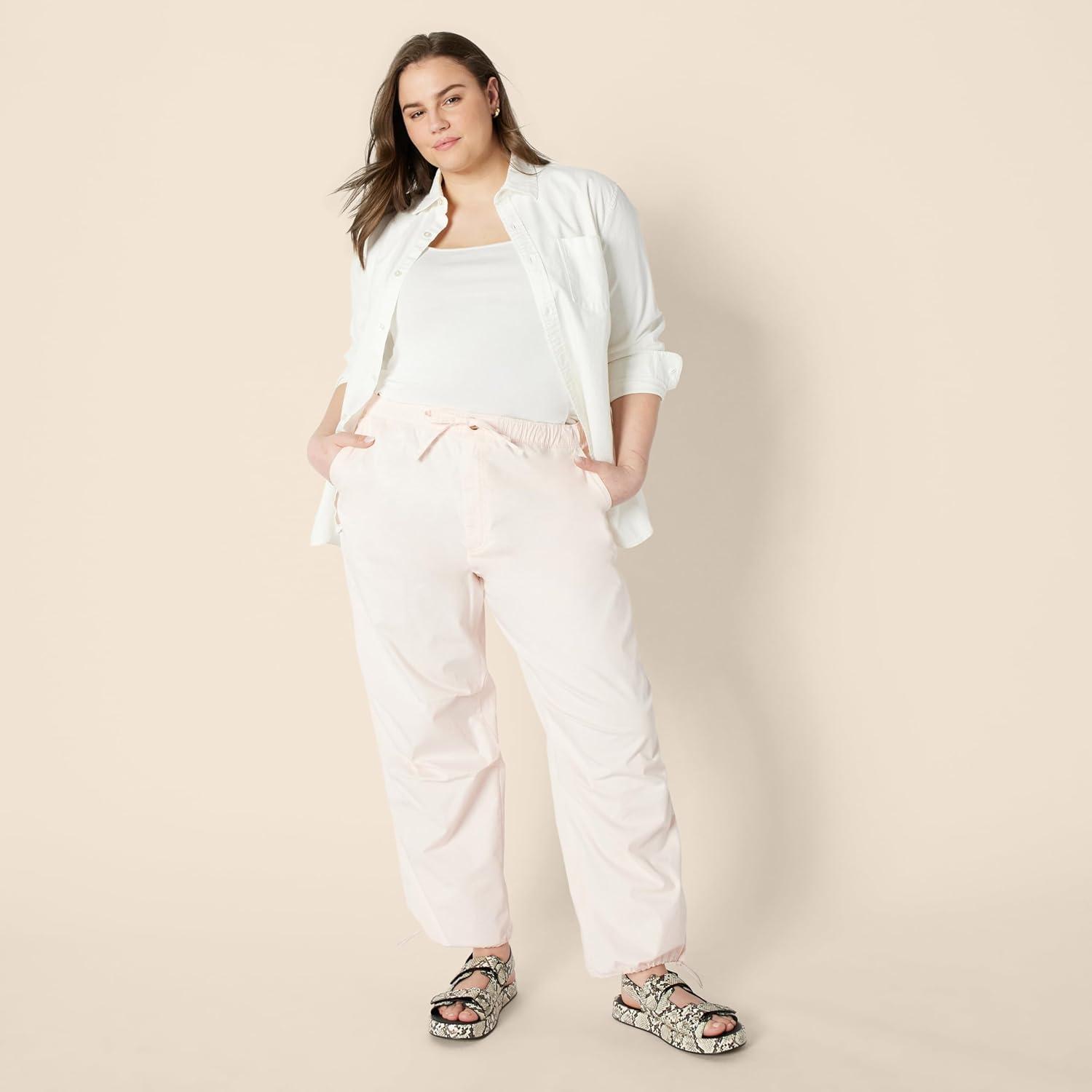 Amazon Essentials Women's Mid-Rise Baggy Loose-Fit Wide-Leg Parachute Pants(Light Pink)