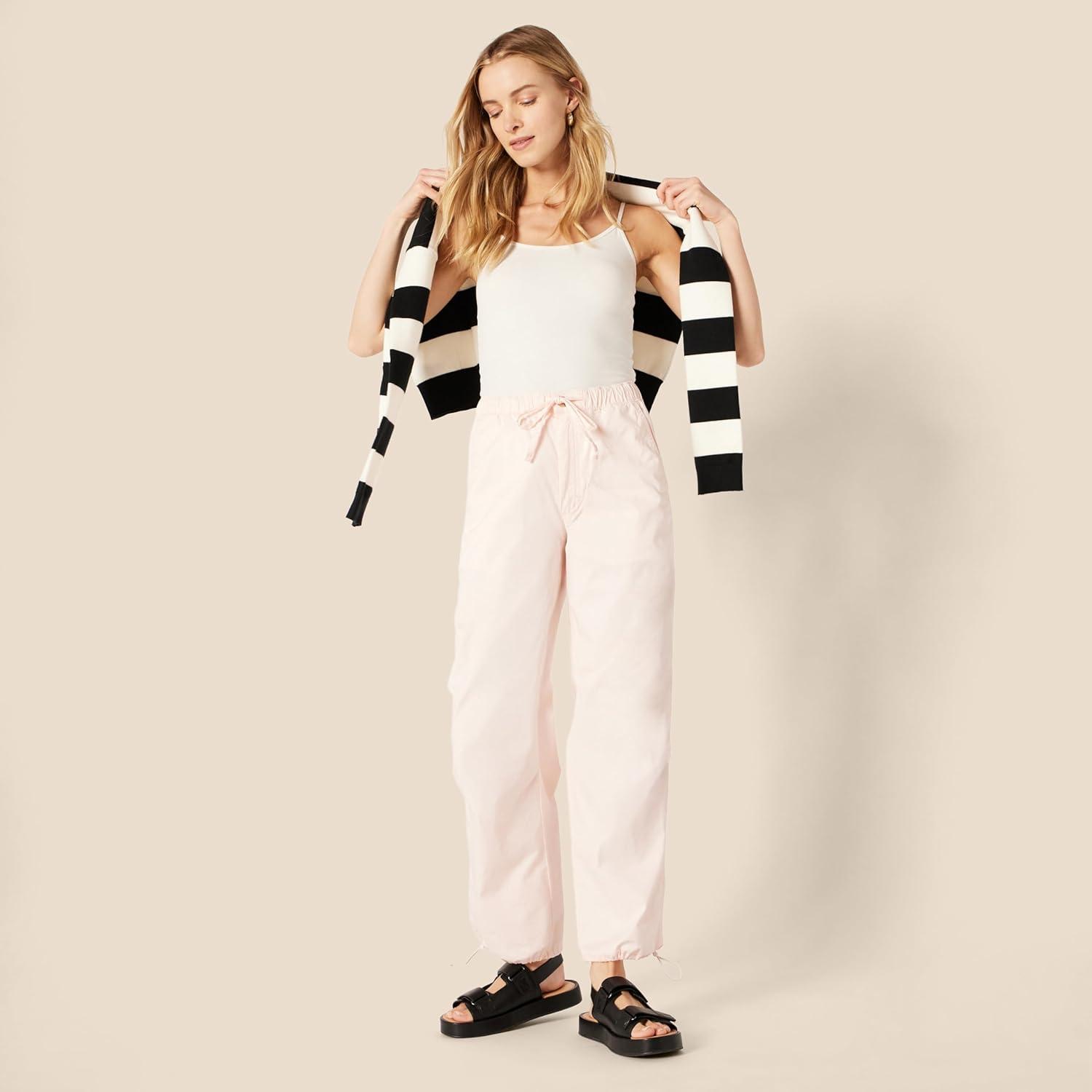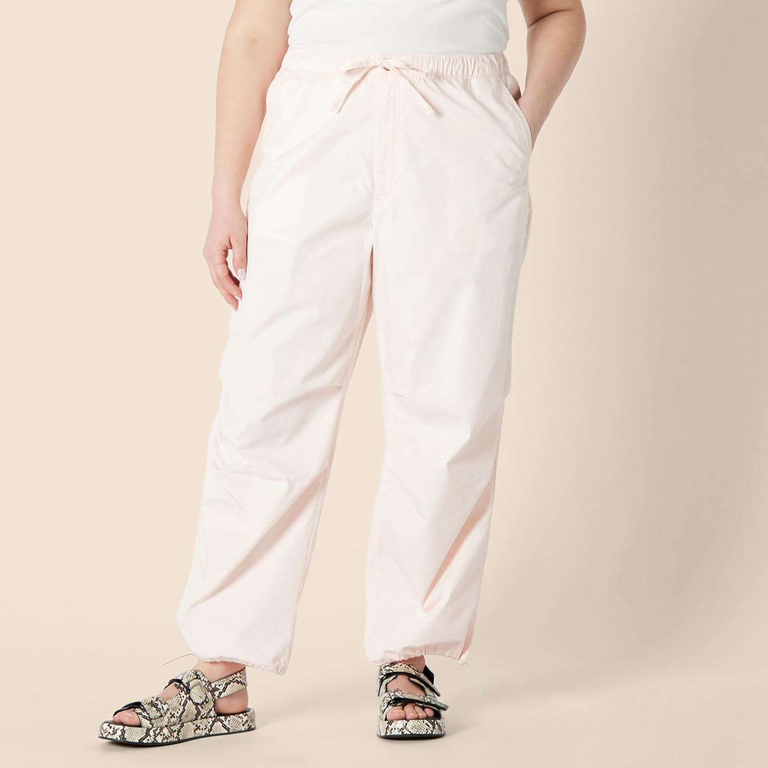 Amazon Essentials Women’s Mid-Rise Baggy Loose-Fit Wide-Leg Parachute Pants(Light Pink)