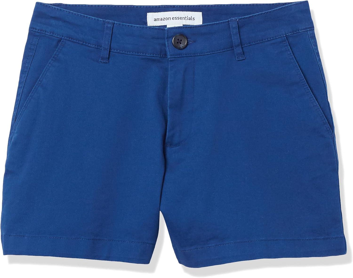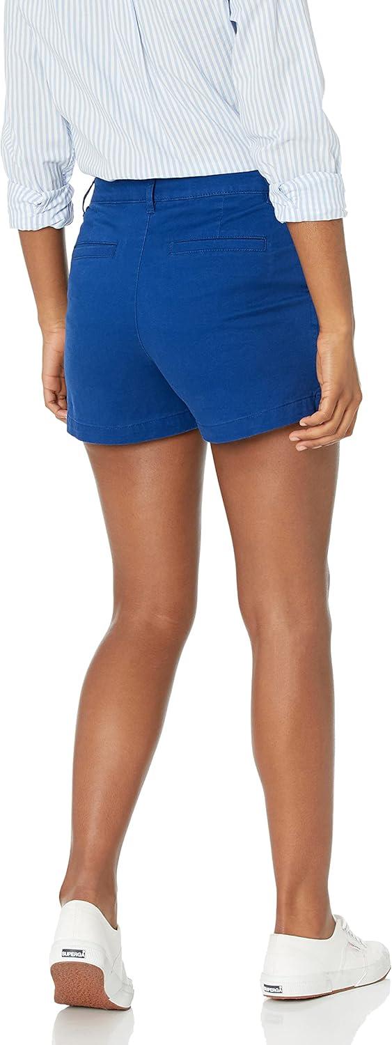 Amazon Essentials Women’s Mid-Rise Slim-Fit 3.5 Inch Inseam Khaki Short(Blue)