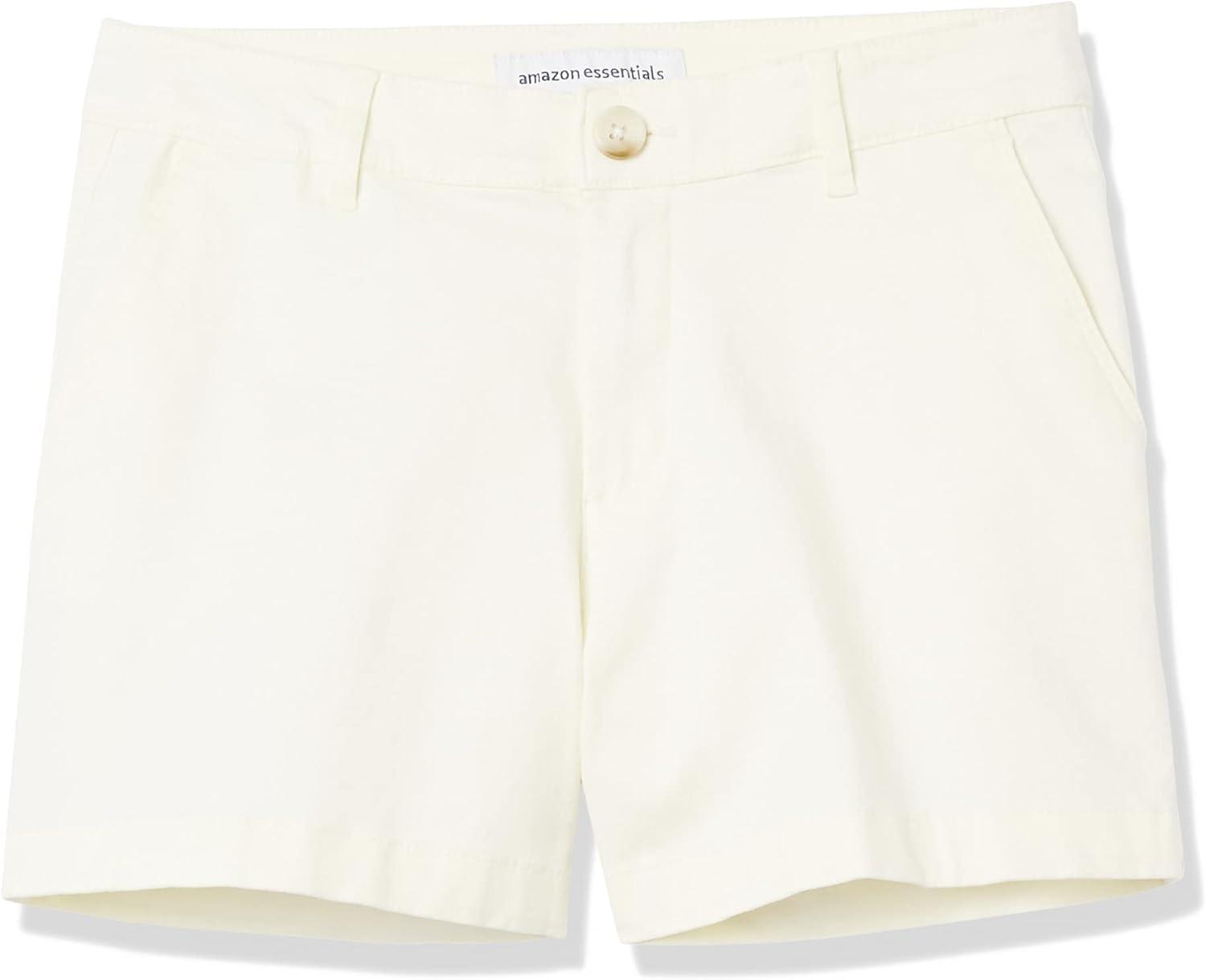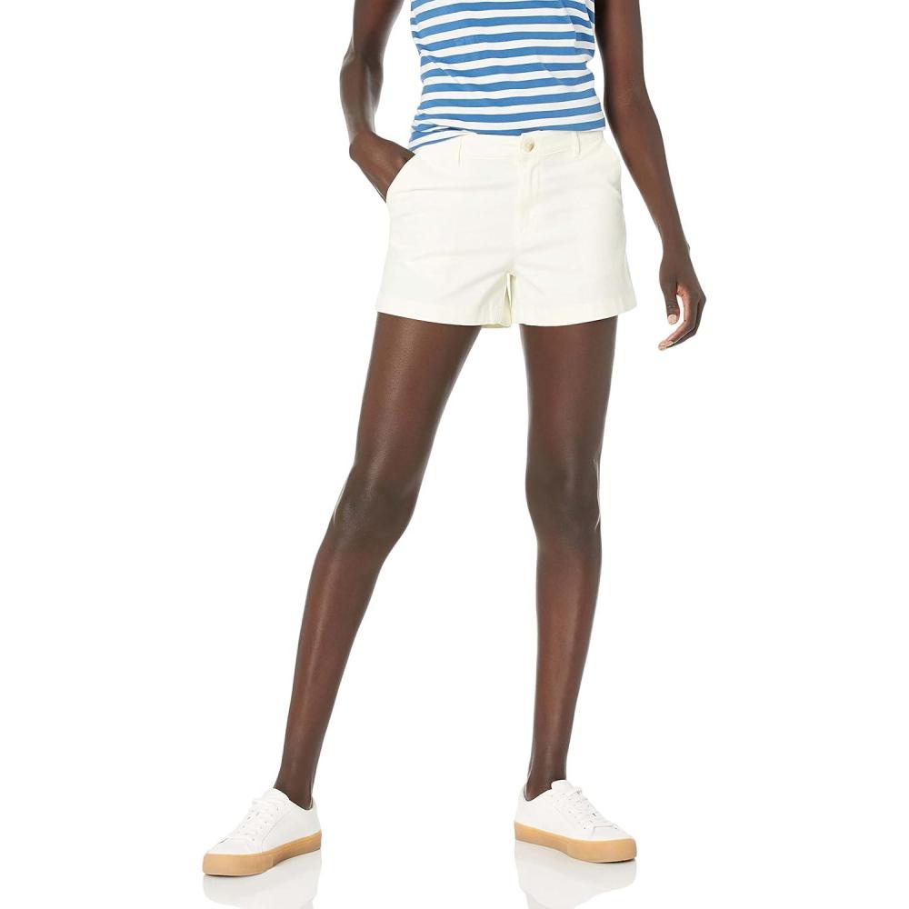 Amazon Essentials Women’s Mid-Rise Slim-Fit 3.5 Inch Inseam Khaki Short(Cream)
