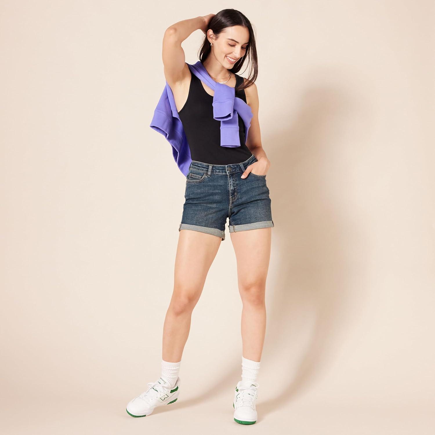Amazon Essentials Women’s Mid-Rise Slim Fit 4″ Denim Shorts(Dark Denim)