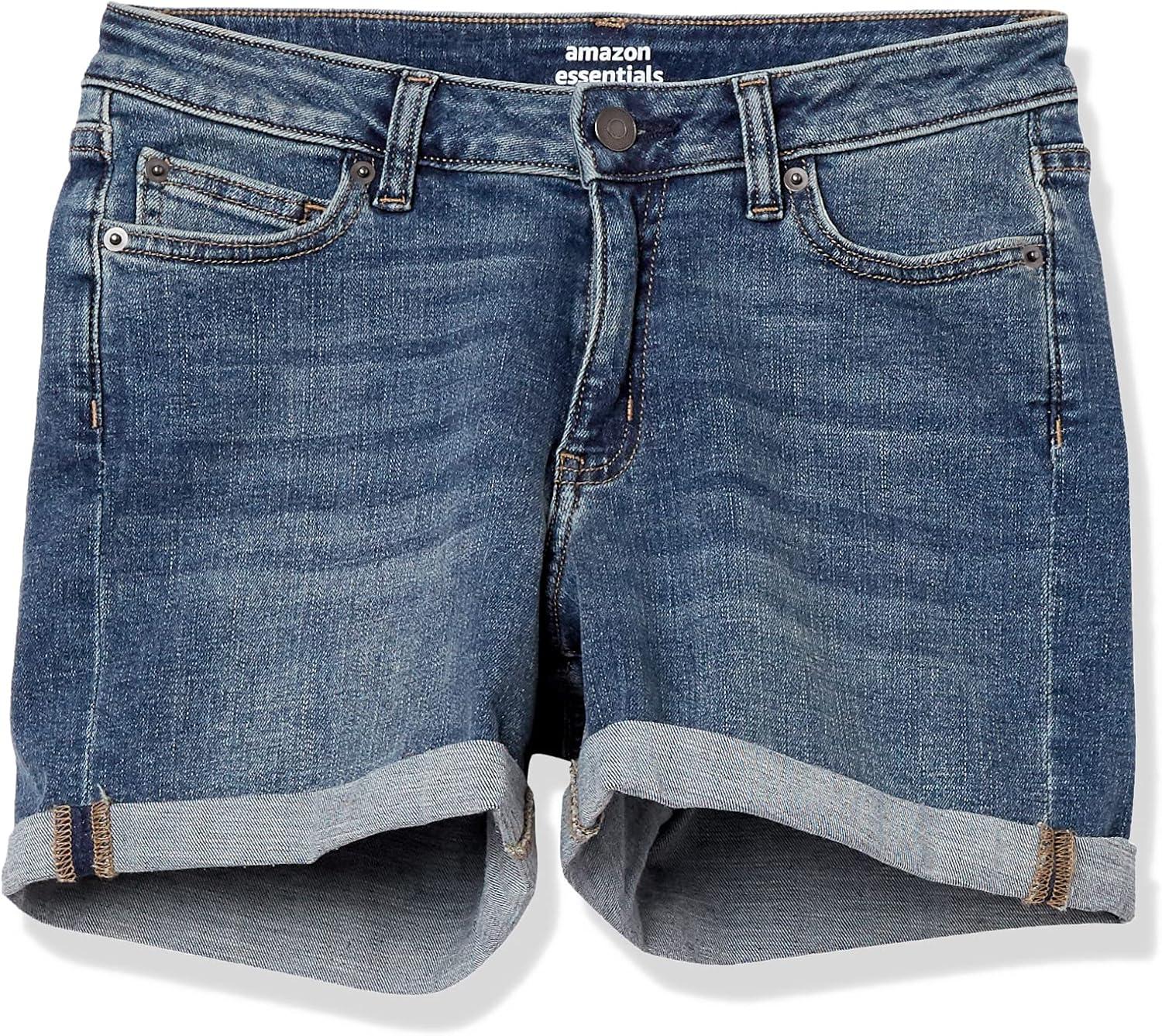 Amazon Essentials Women’s Mid-Rise Slim Fit 4″ Denim Shorts(Medium Wash)