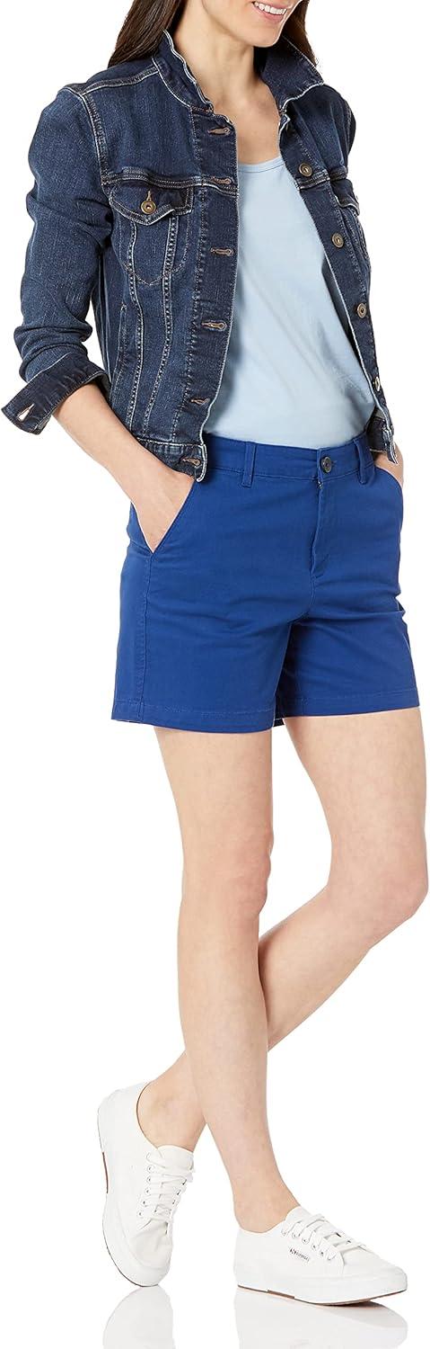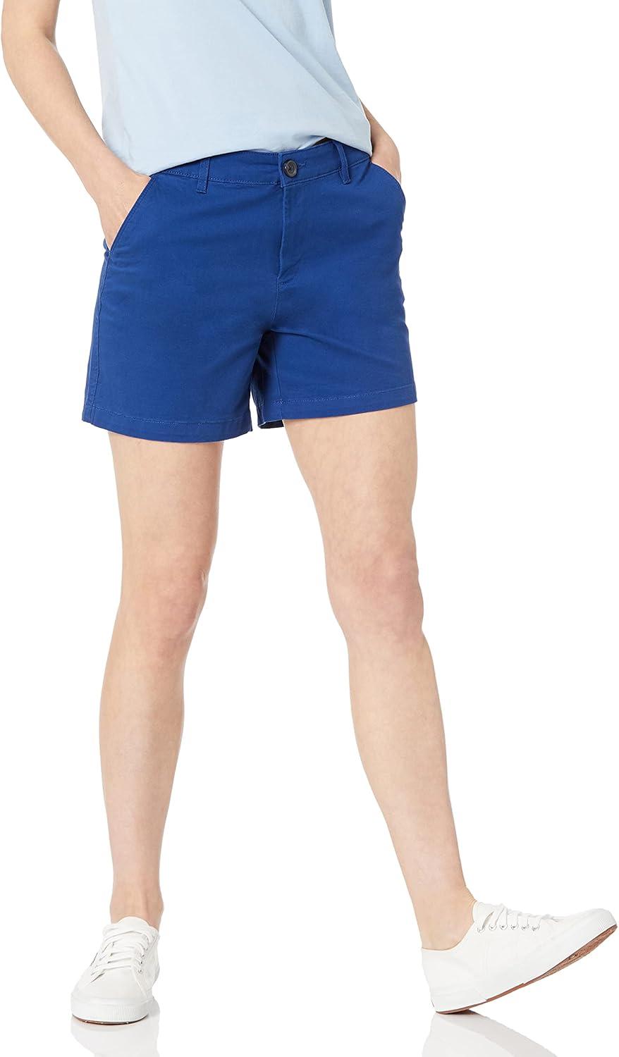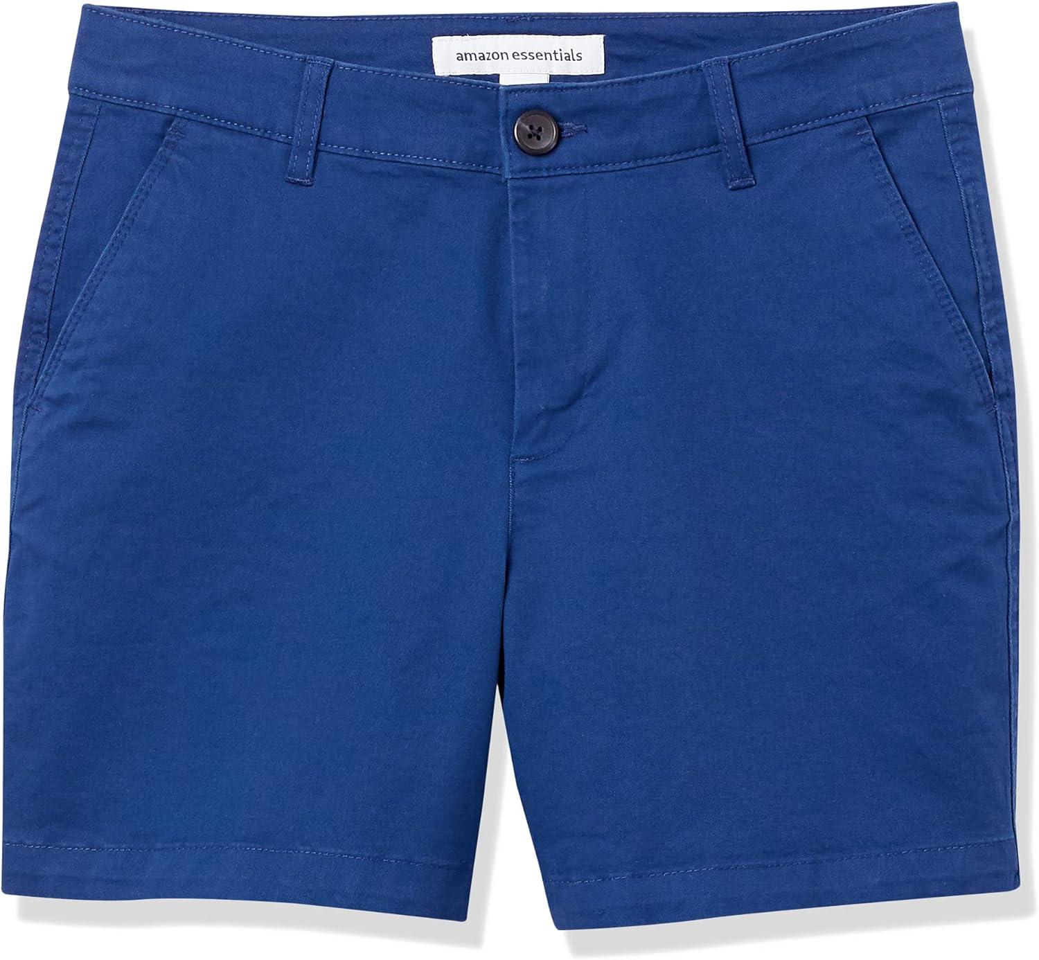 Amazon Essentials Women’s Mid-Rise Slim-Fit 5 Inch Inseam Khaki Short (Available in Straight and Curvy Fits)(Blue)