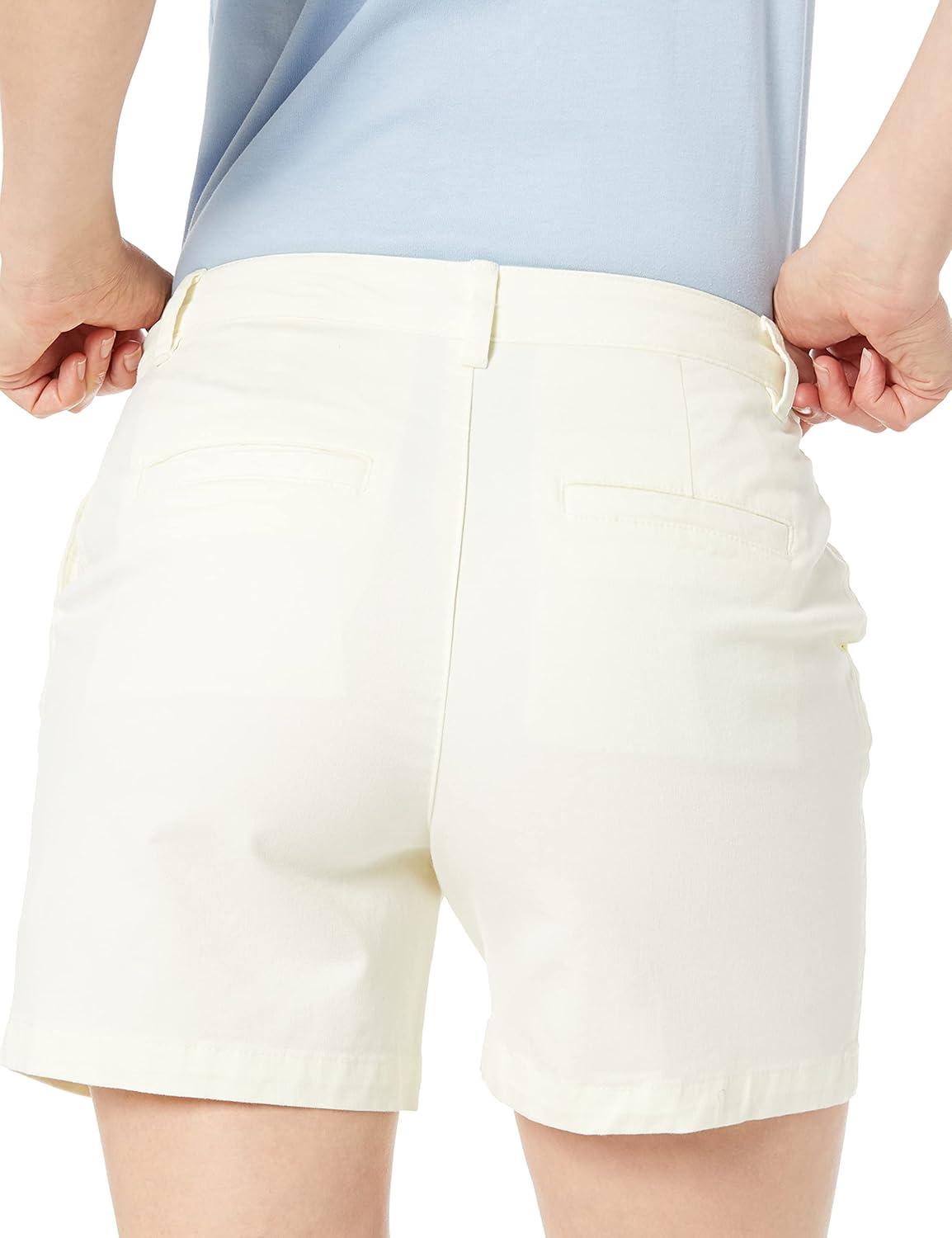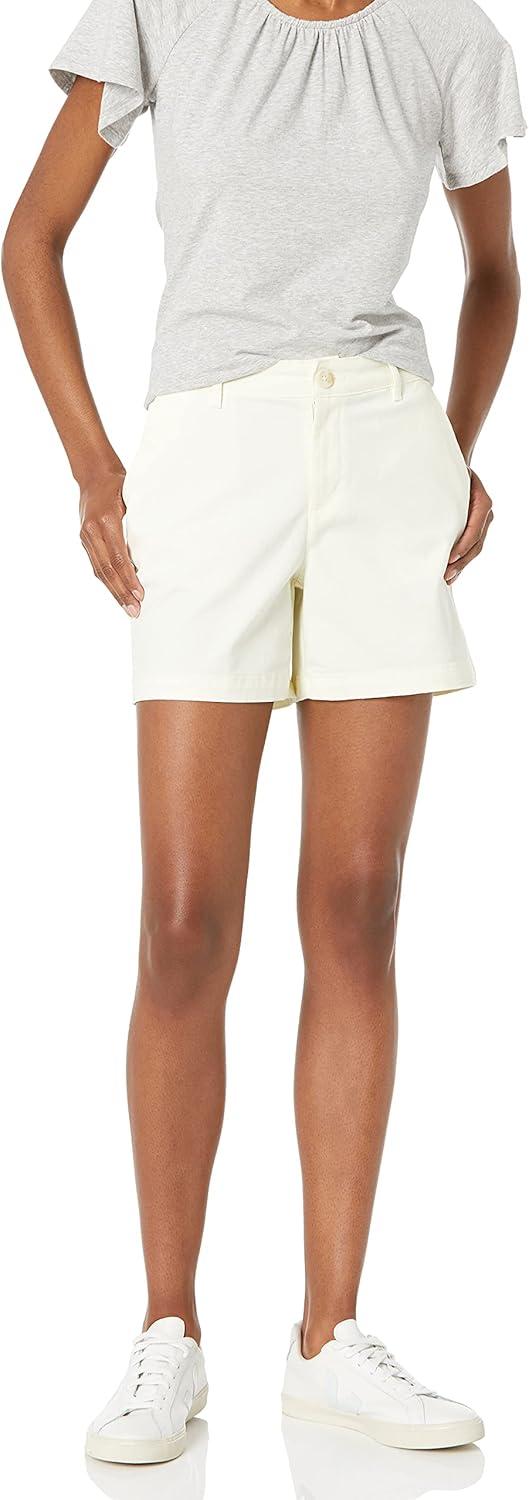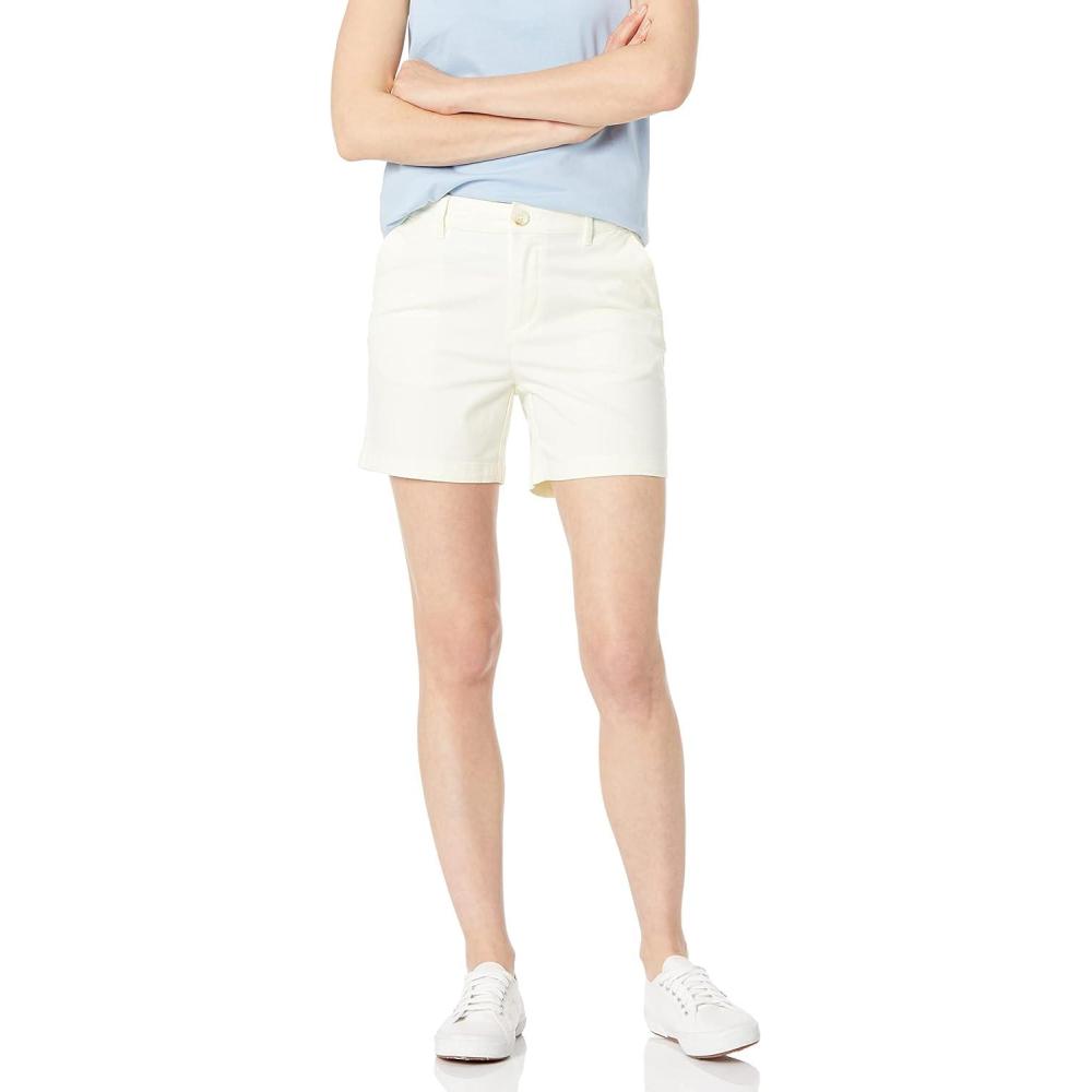 Amazon Essentials Women’s Mid-Rise Slim-Fit 5 Inch Inseam Khaki Short (Available in Straight and Curvy Fits)(White)