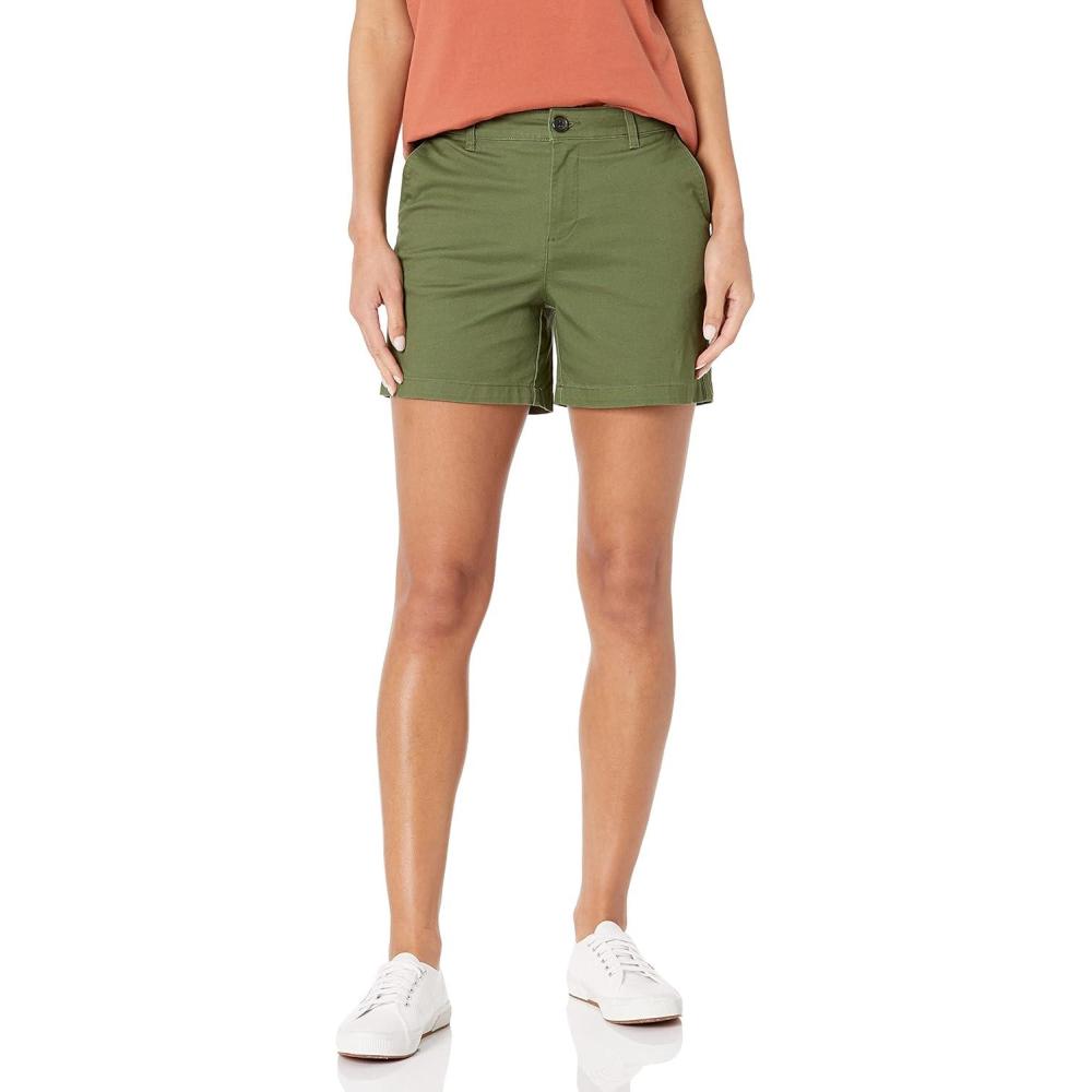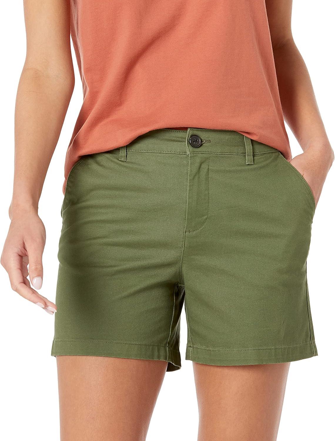 Amazon Essentials Women’s Mid-Rise Slim-Fit 5 Inch Inseam Khaki Short (Available in Straight and Curvy Fits)(Olive)