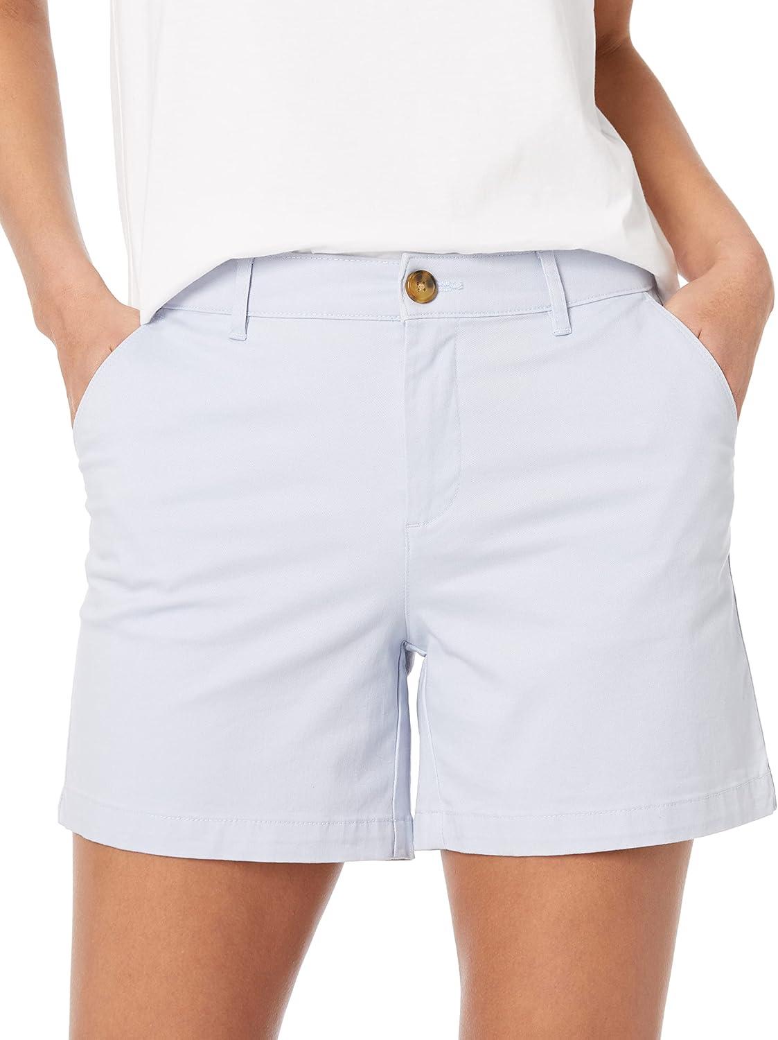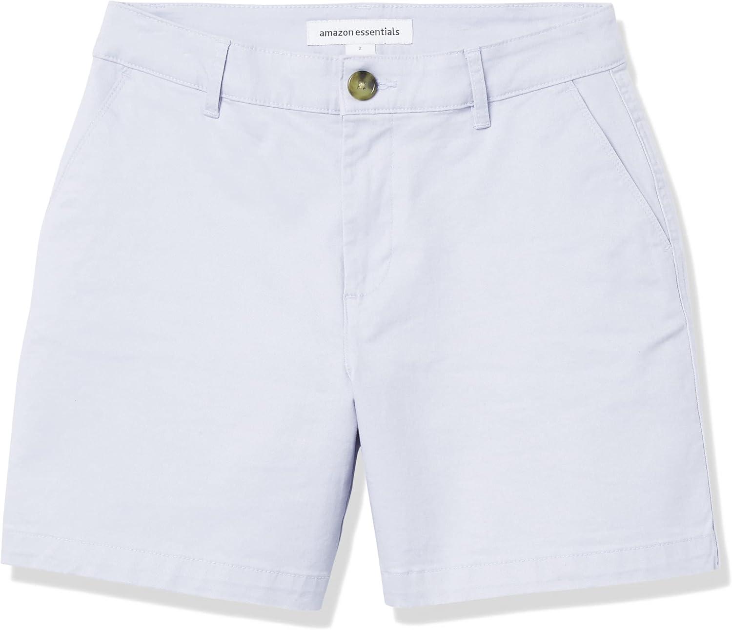Amazon Essentials Women’s Mid-Rise Slim-Fit 5 Inch Inseam Khaki Short (Available in Straight and Curvy Fits)(Light Blue)