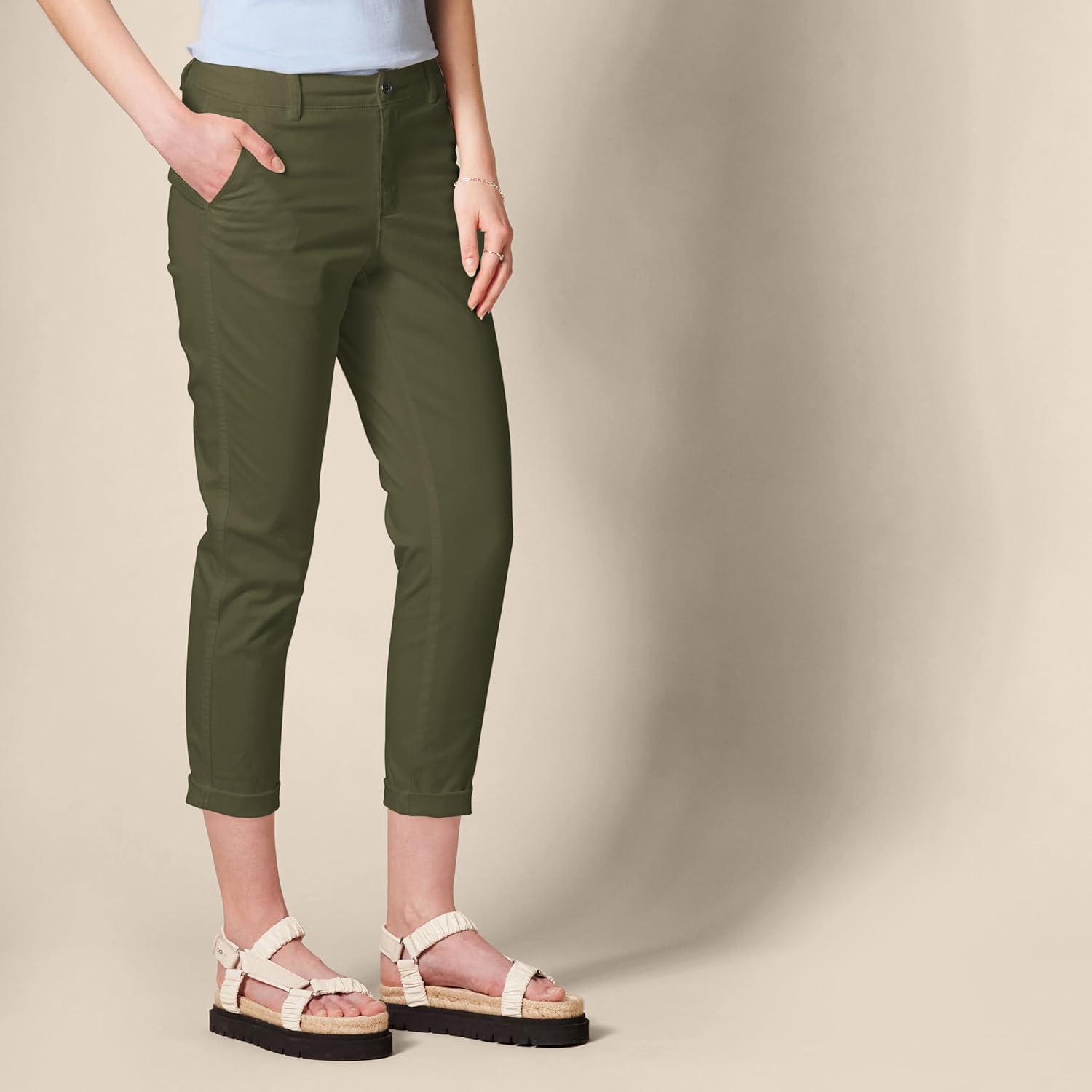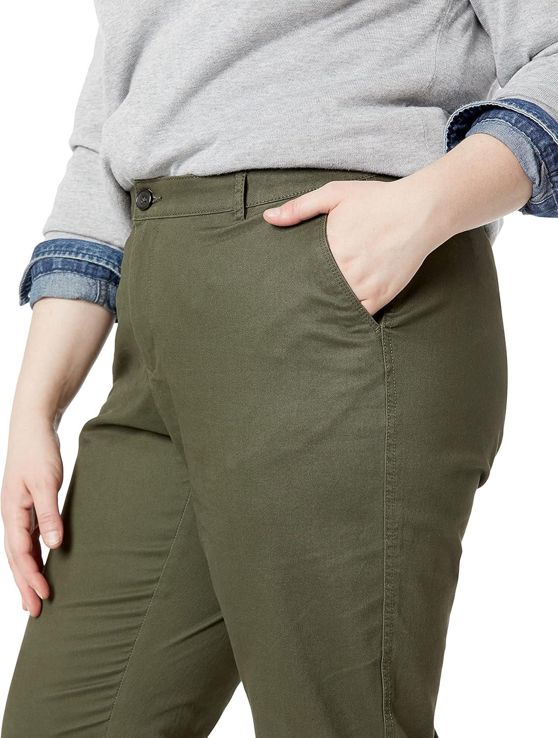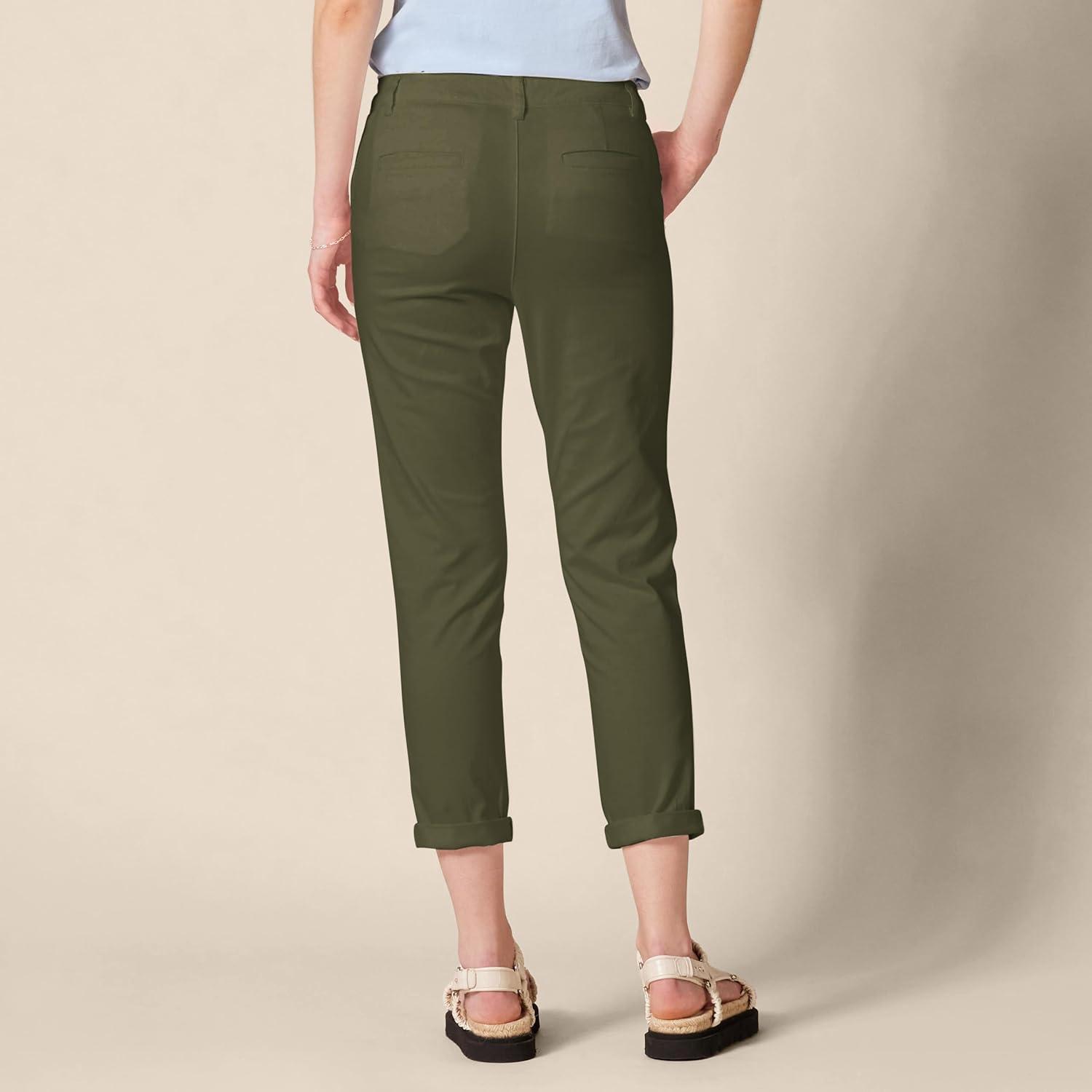Amazon Essentials Women’s Mid-Rise Slim-Fit Stretchy Cropped Tapered Leg Khaki Dress Pants (Available in Plus Size)(Dark Olive)