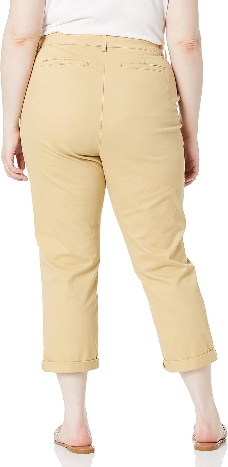 Amazon Essentials Women’s Mid-Rise Slim-Fit Stretchy Cropped Tapered Leg Khaki Dress Pants (Available in Plus Size)(Light Tan)
