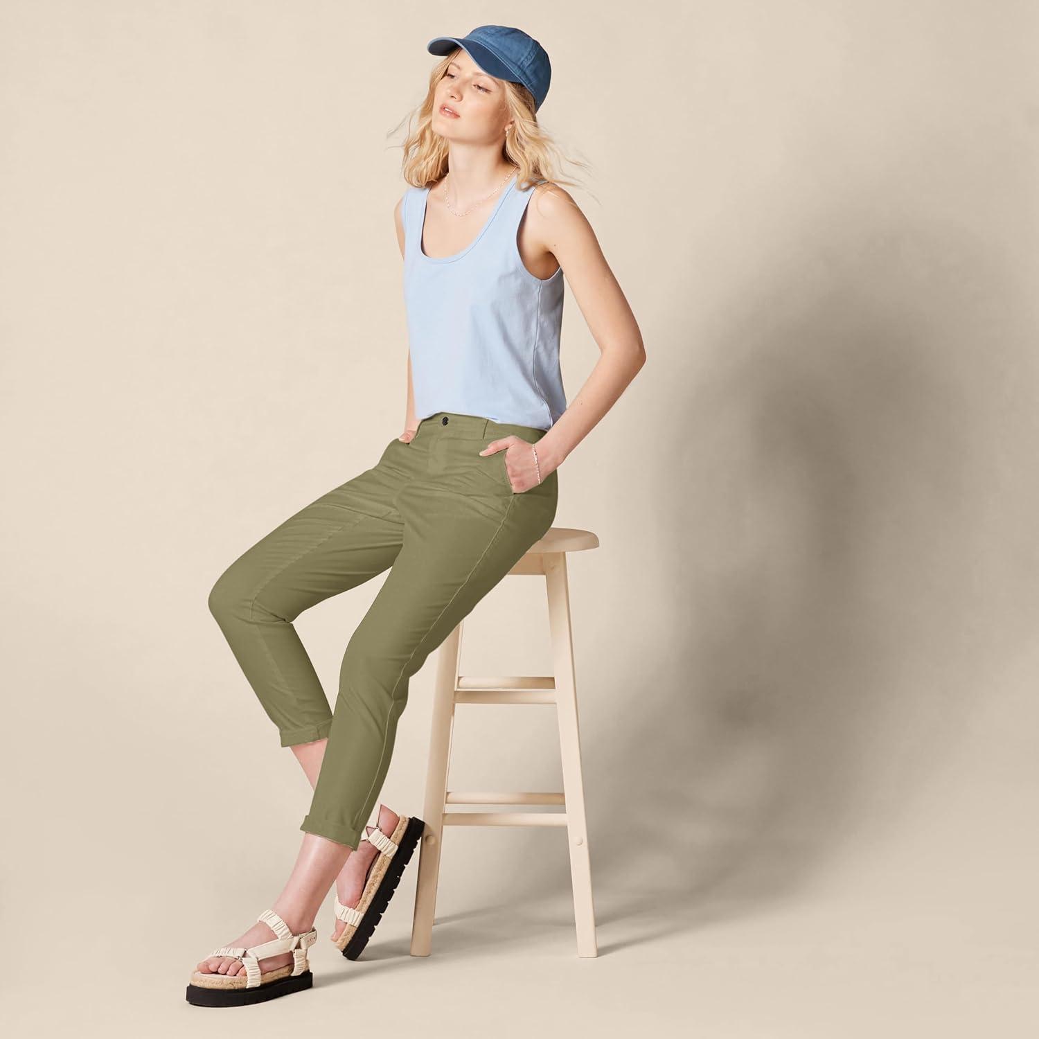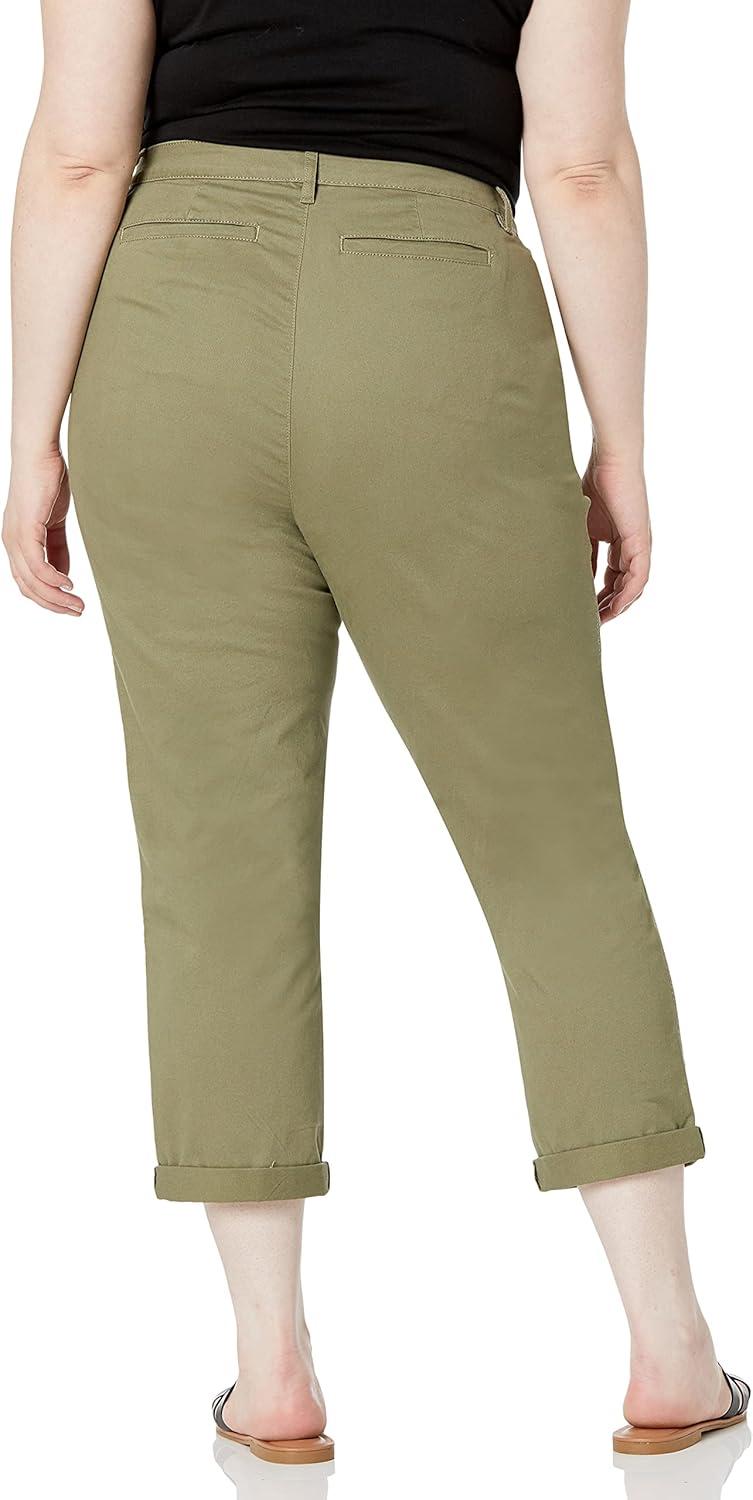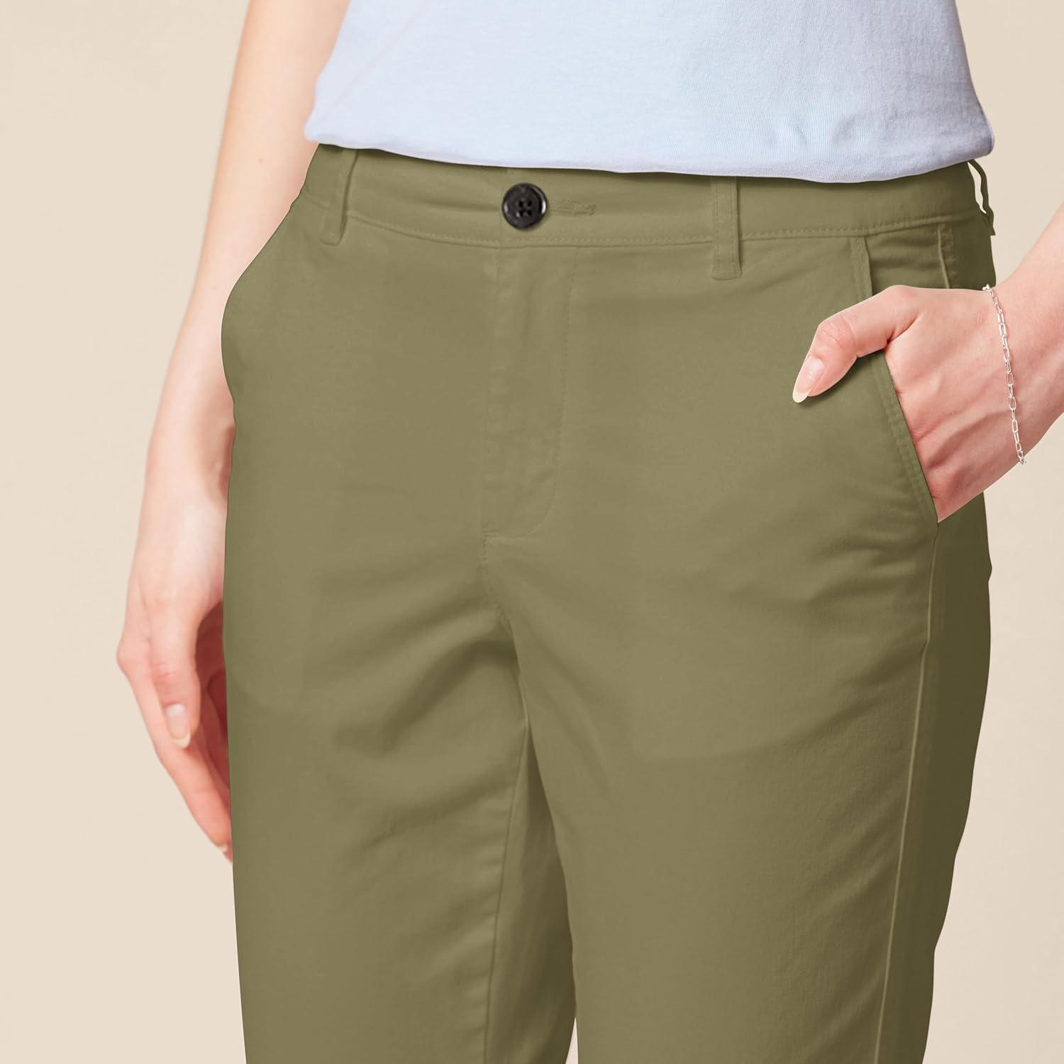 Amazon Essentials Women’s Mid-Rise Slim-Fit Stretchy Cropped Tapered Leg Khaki Dress Pants (Available in Plus Size)(Washed Olive)