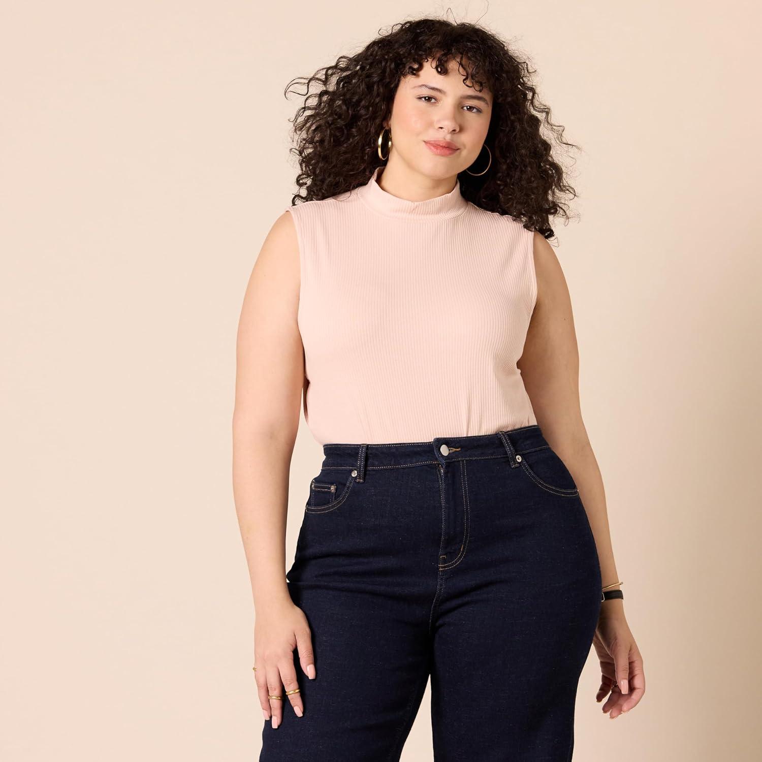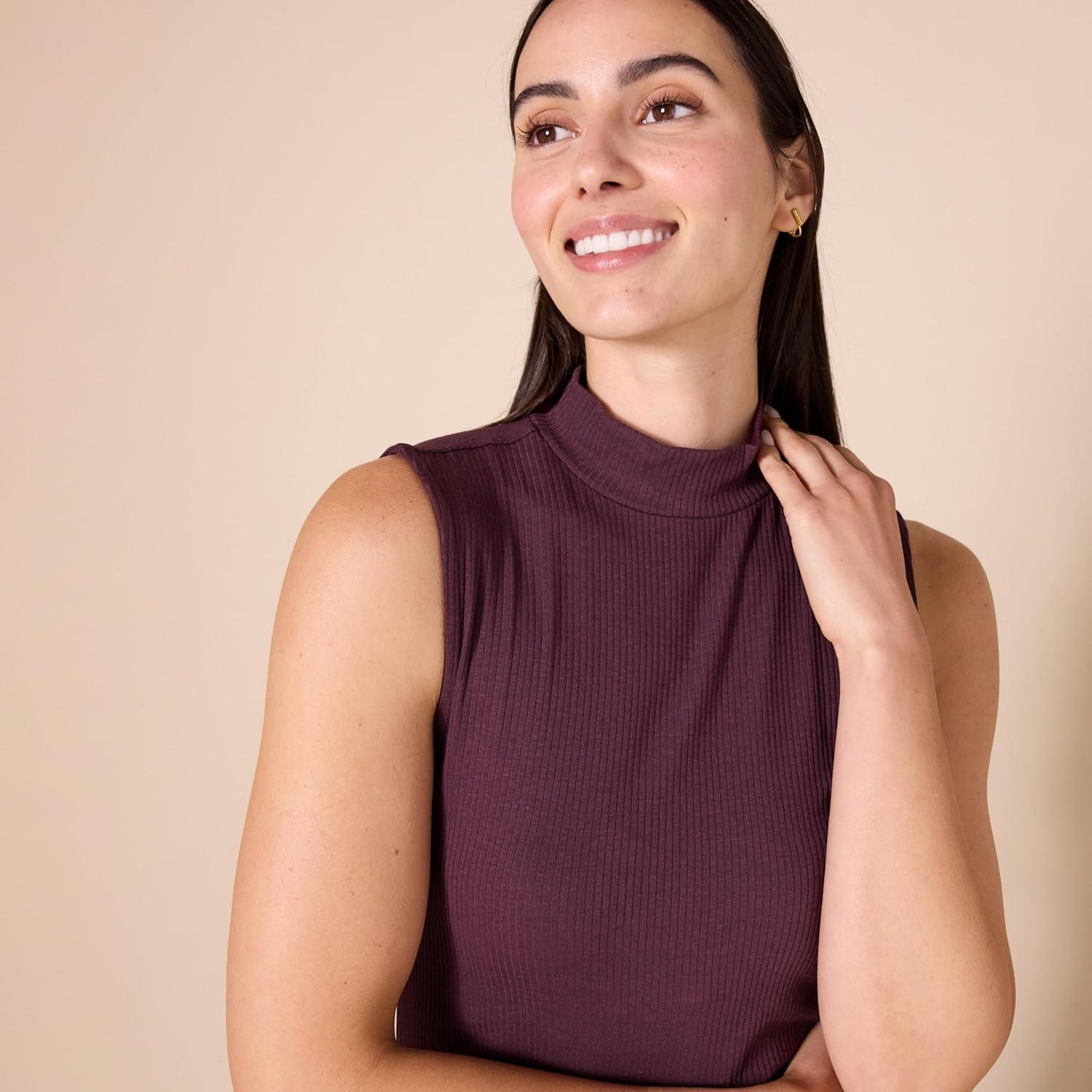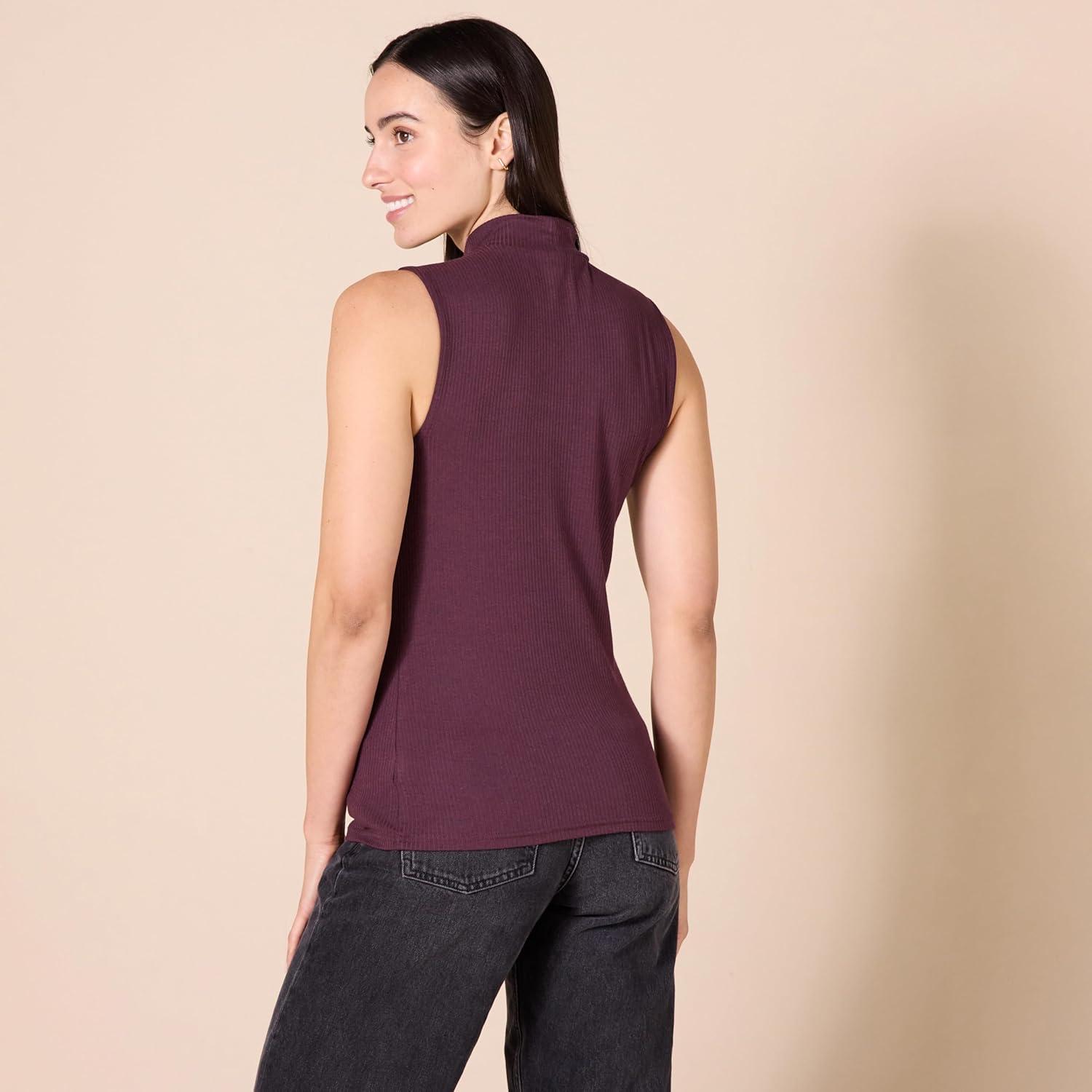 Amazon Essentials Women’s Mock-Neck Slim-Fit Rib-Knit Sleeveless Top, Pack of 2(Blush/Burgundy)