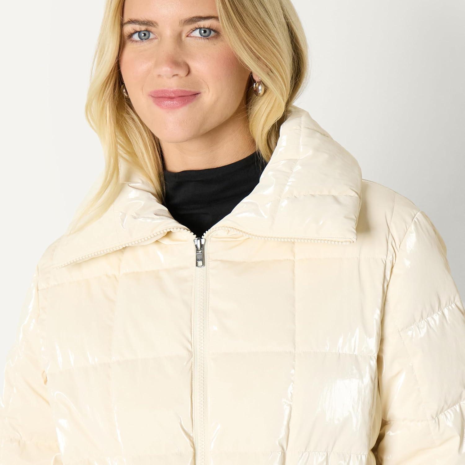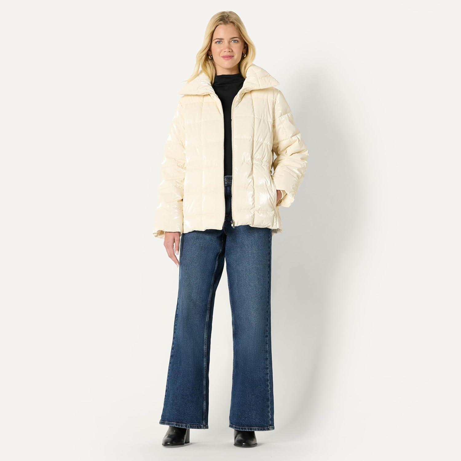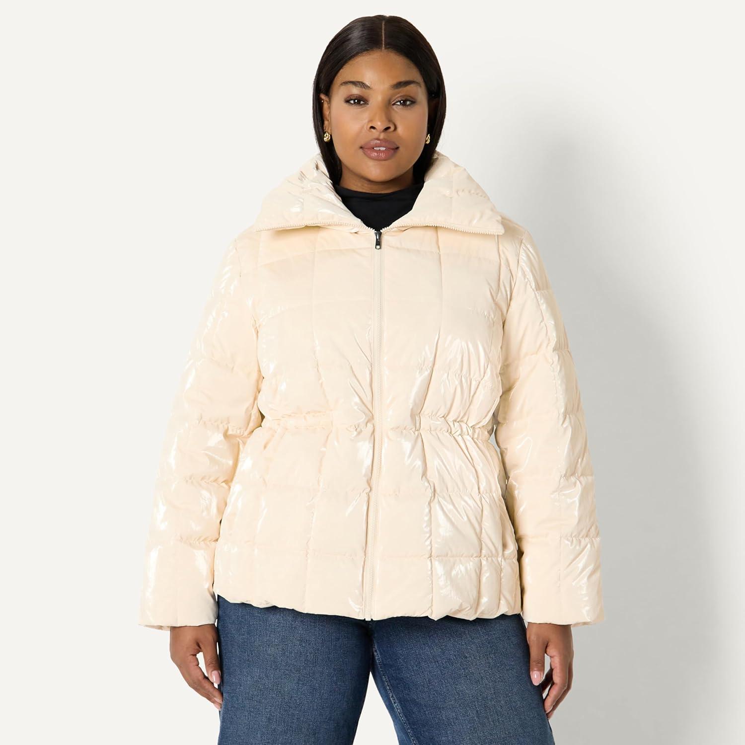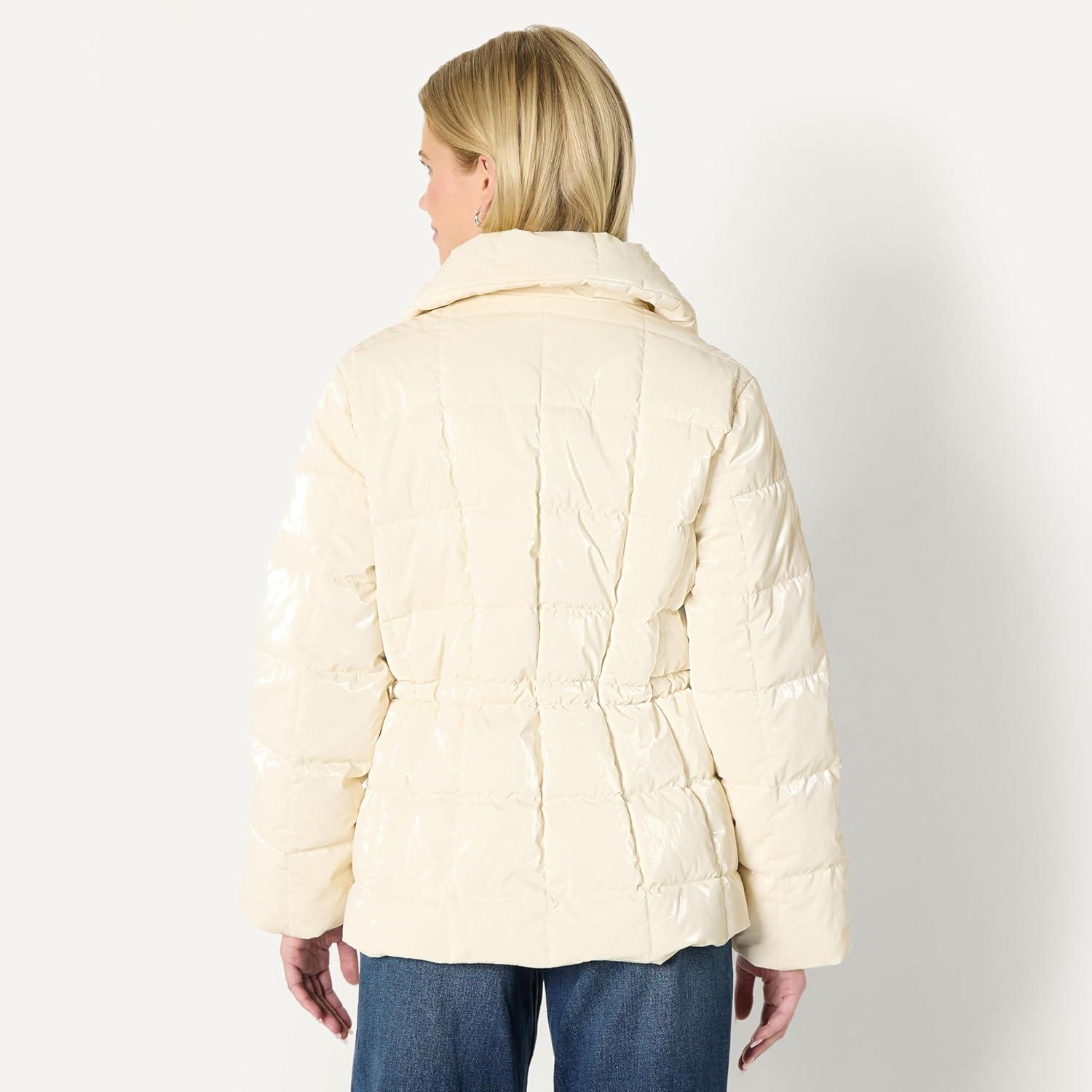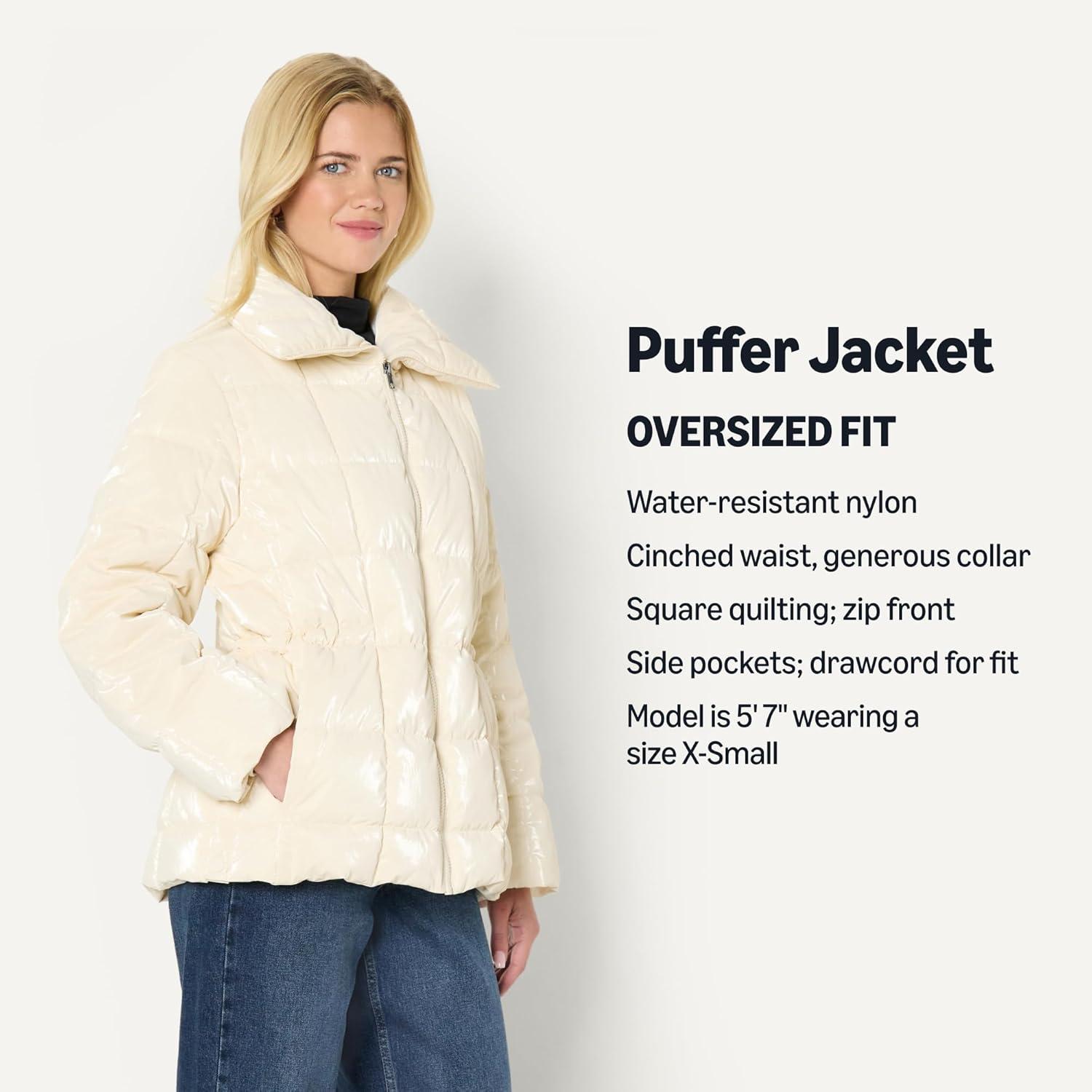 Amazon Essentials Womens Oversized-Fit Square Quilted Puffer Jacket with Adjustable Waist(Cream)