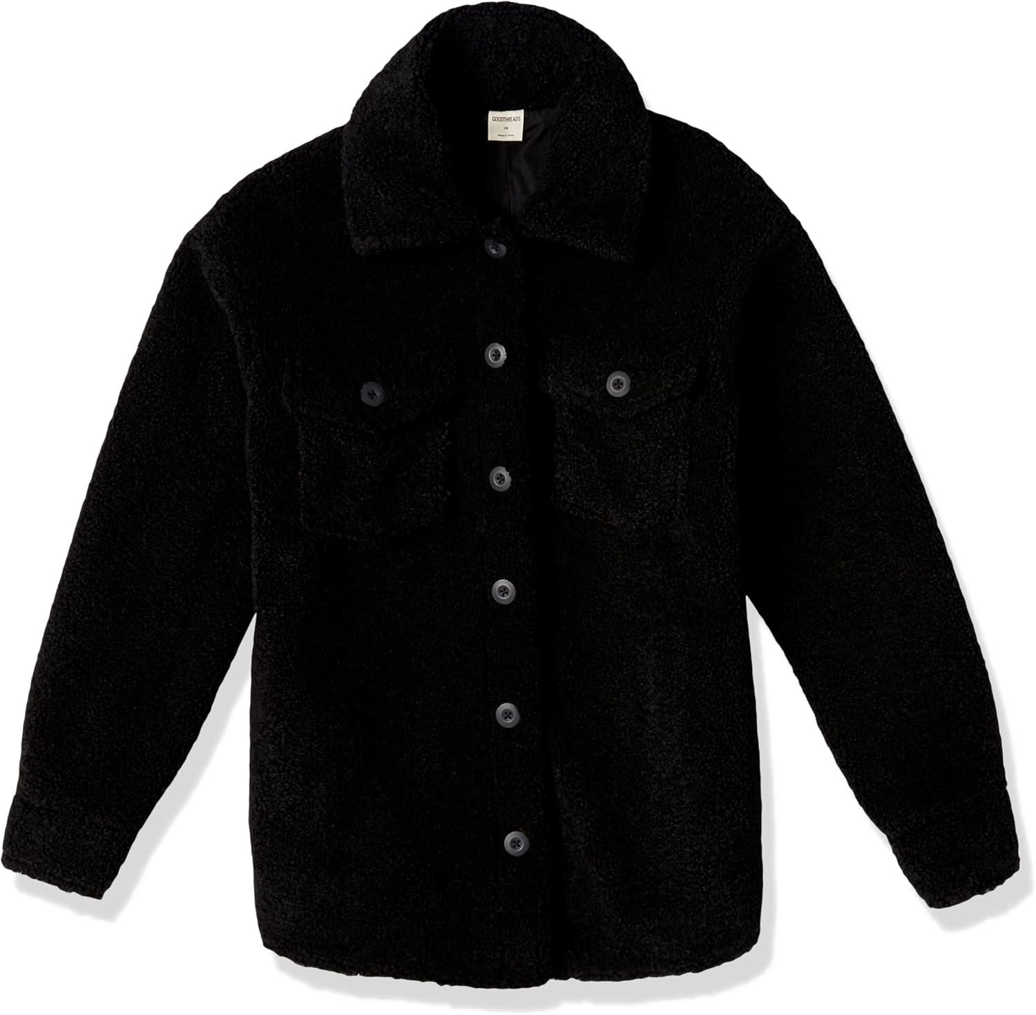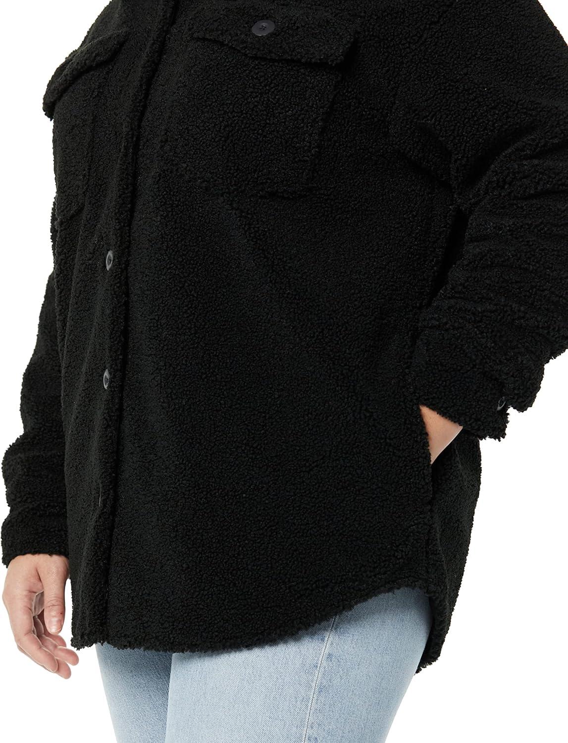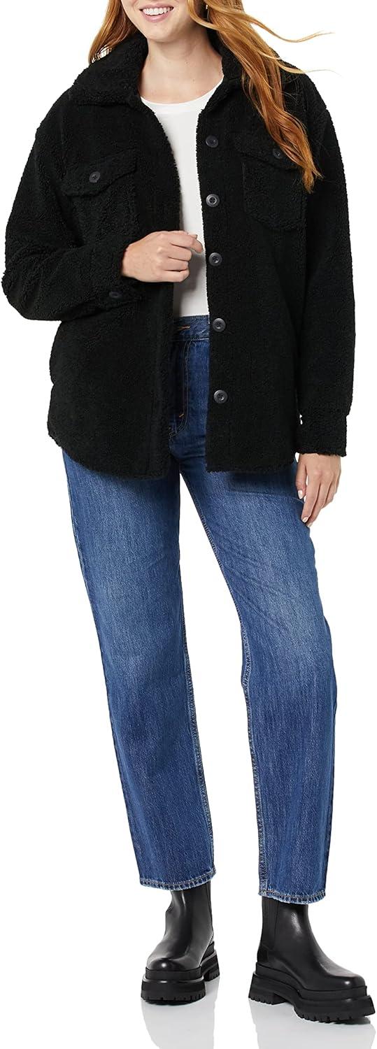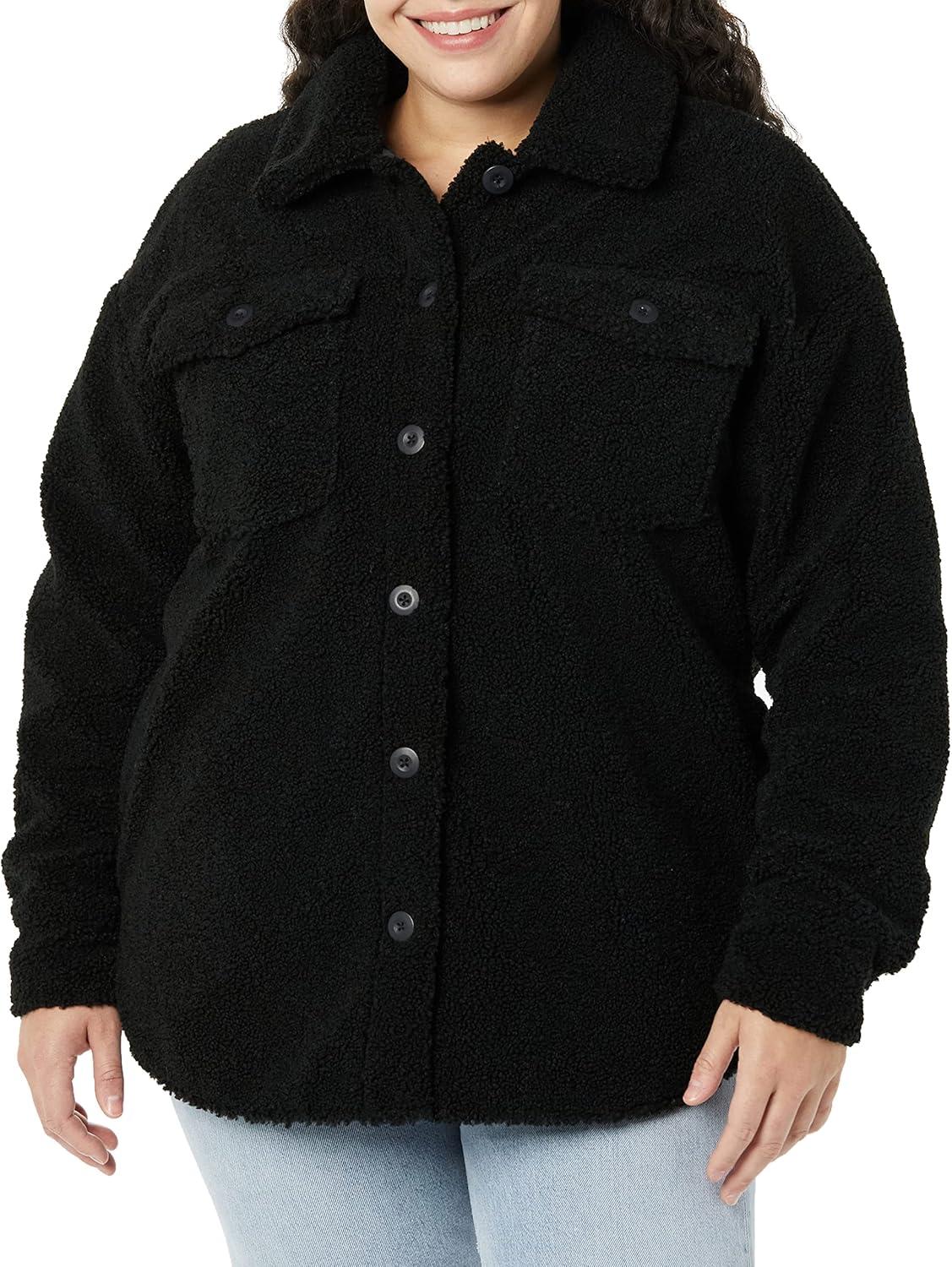 Amazon Essentials Women’s Oversized Teddy Sherpa Shirt Jacket (Previously Goodthreads)(Black)