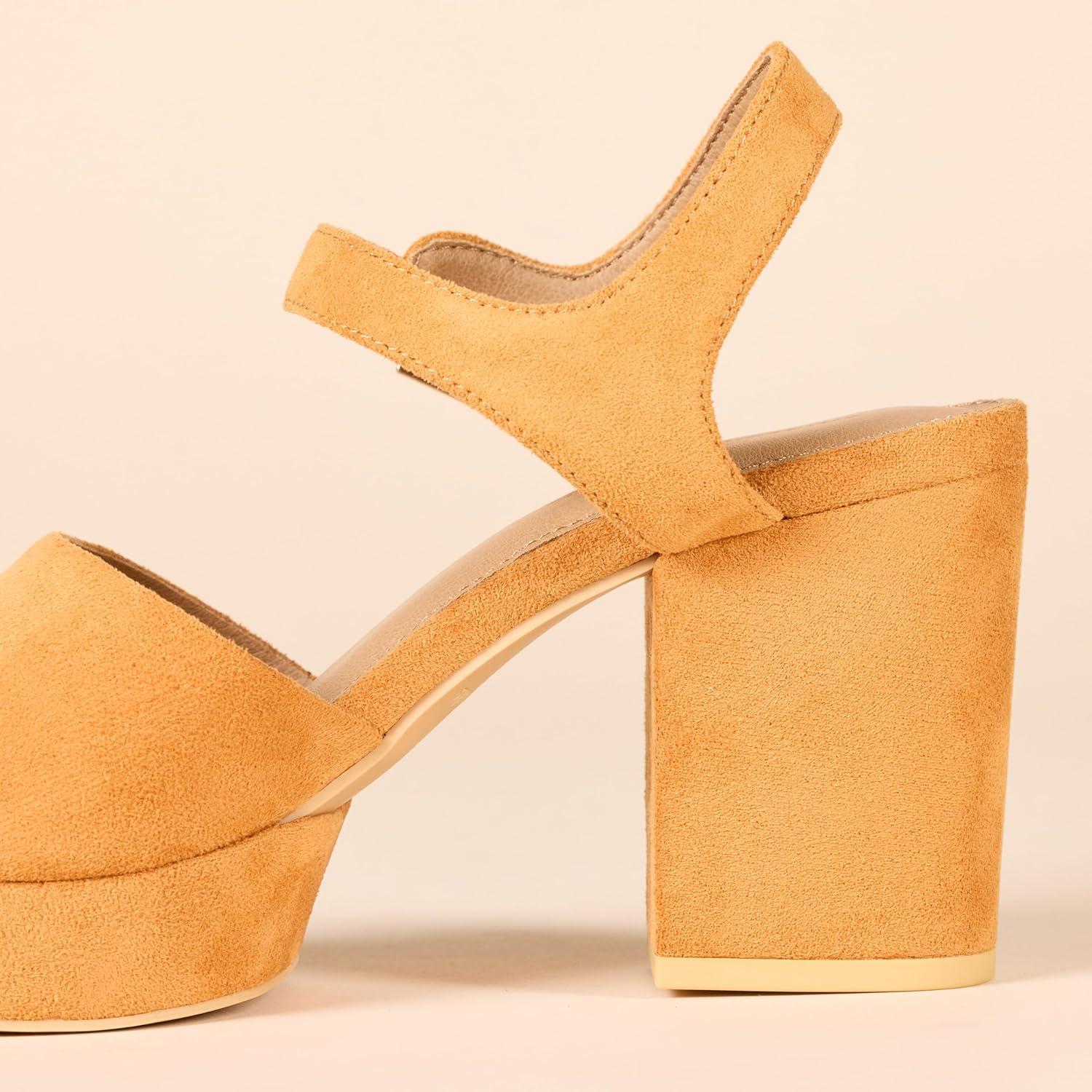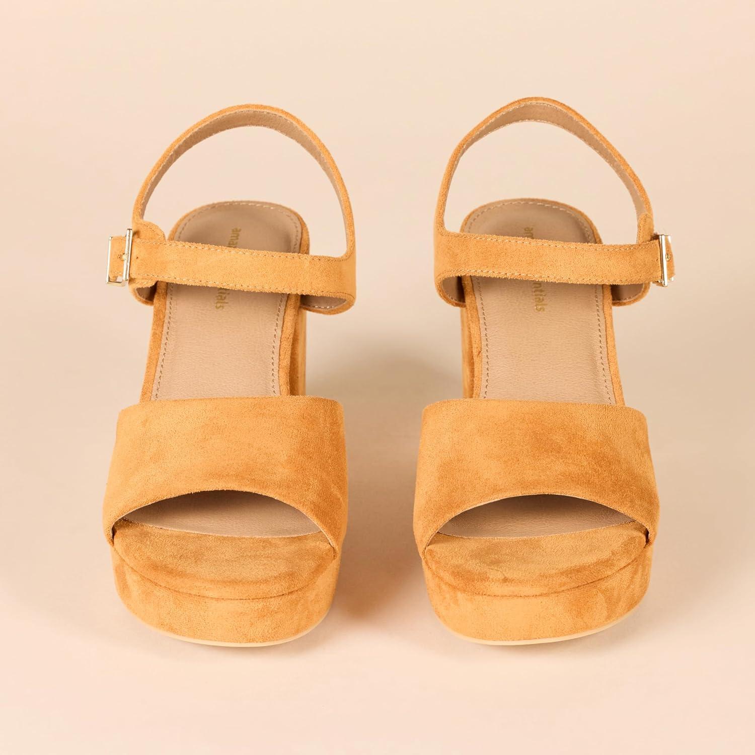 Amazon Essentials Women’s Platform Heel Sandal(Dark Orange Faux Suede)