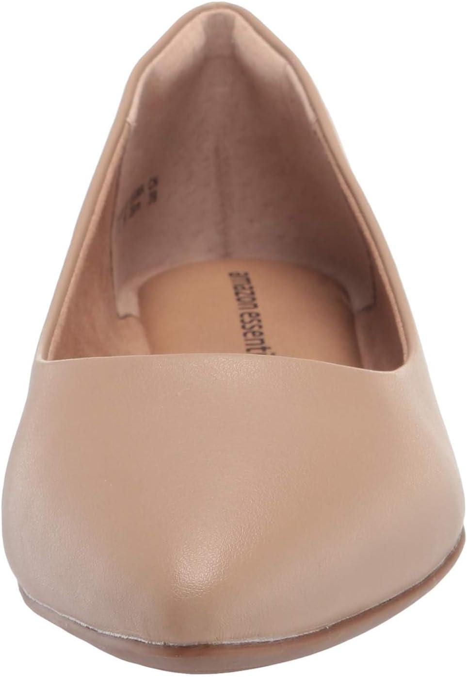 Amazon Essentials Women's Pointed-Toe Ballet Flat(Beige Faux Leather)