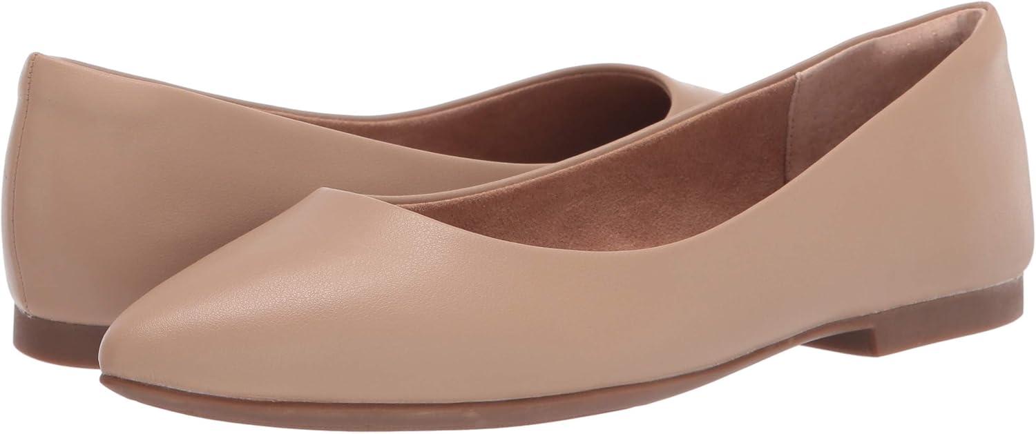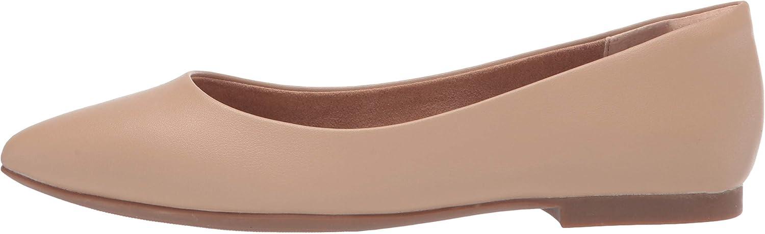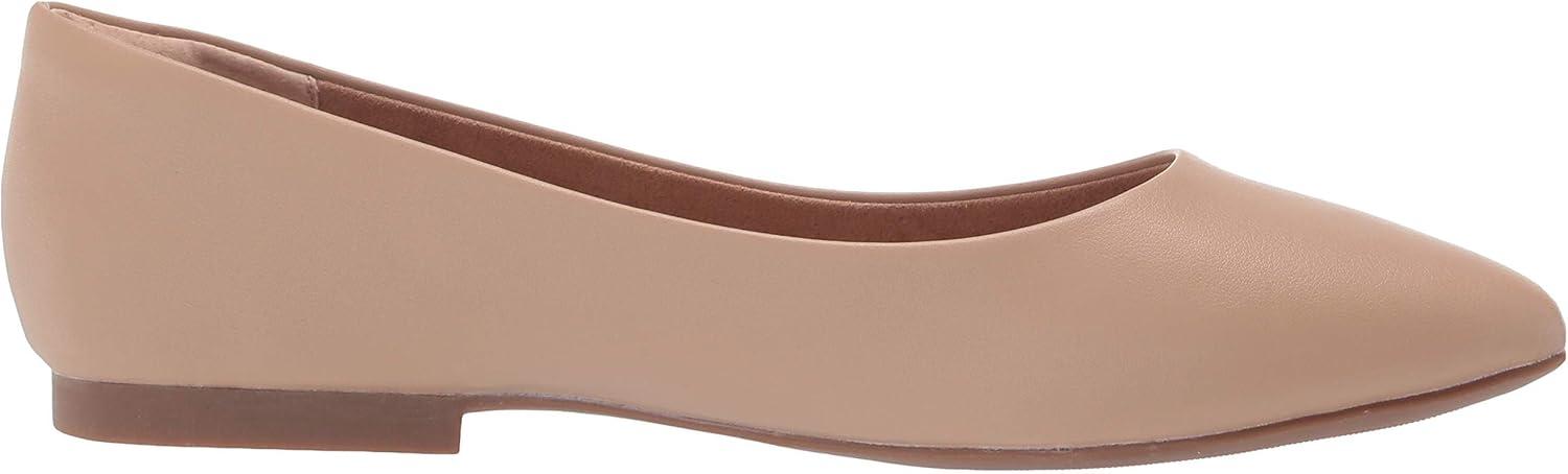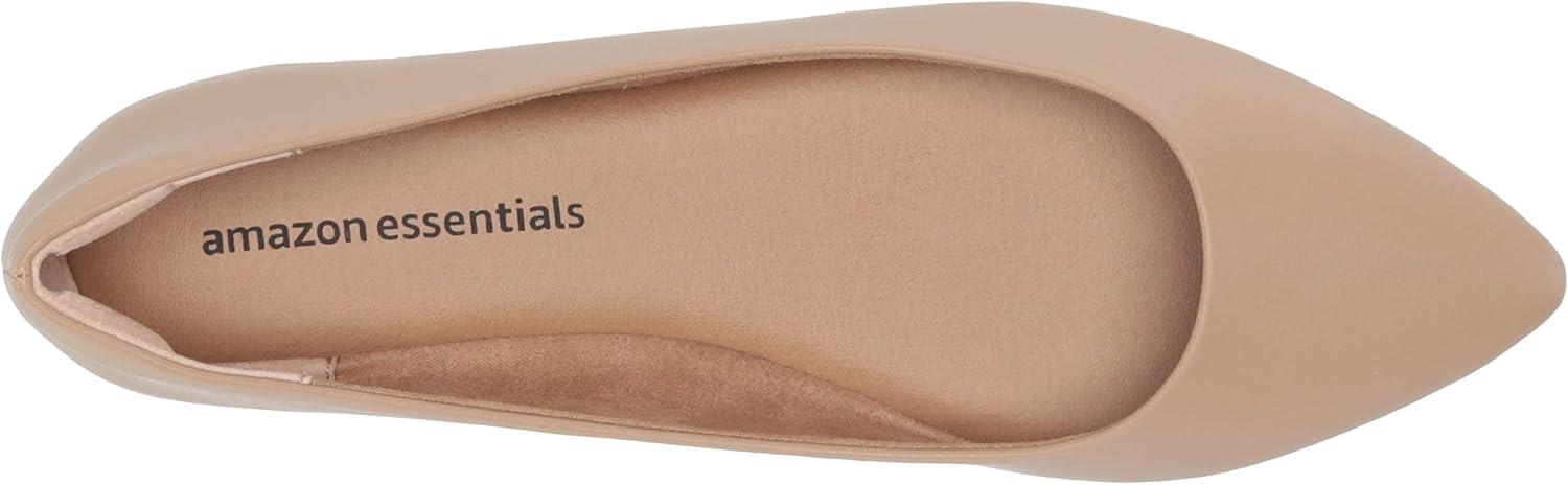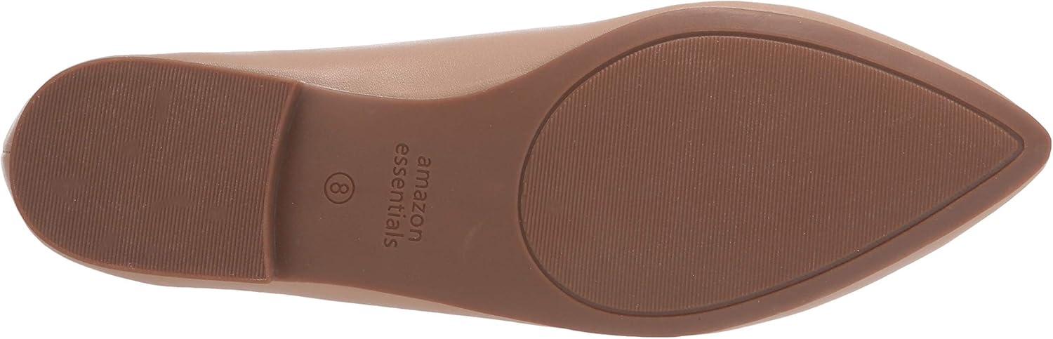 Amazon Essentials Women’s Pointed-Toe Ballet Flat(Beige Faux Leather)