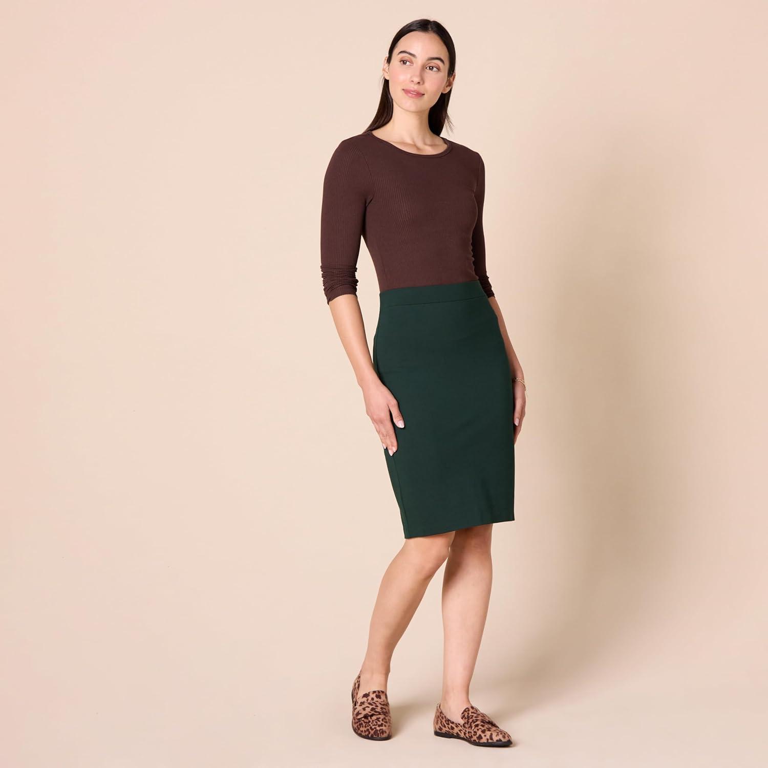 Amazon Essentials Women’s Ponte Pull-On Above The Knee Fitted Pencil Skirt(Dark Green)