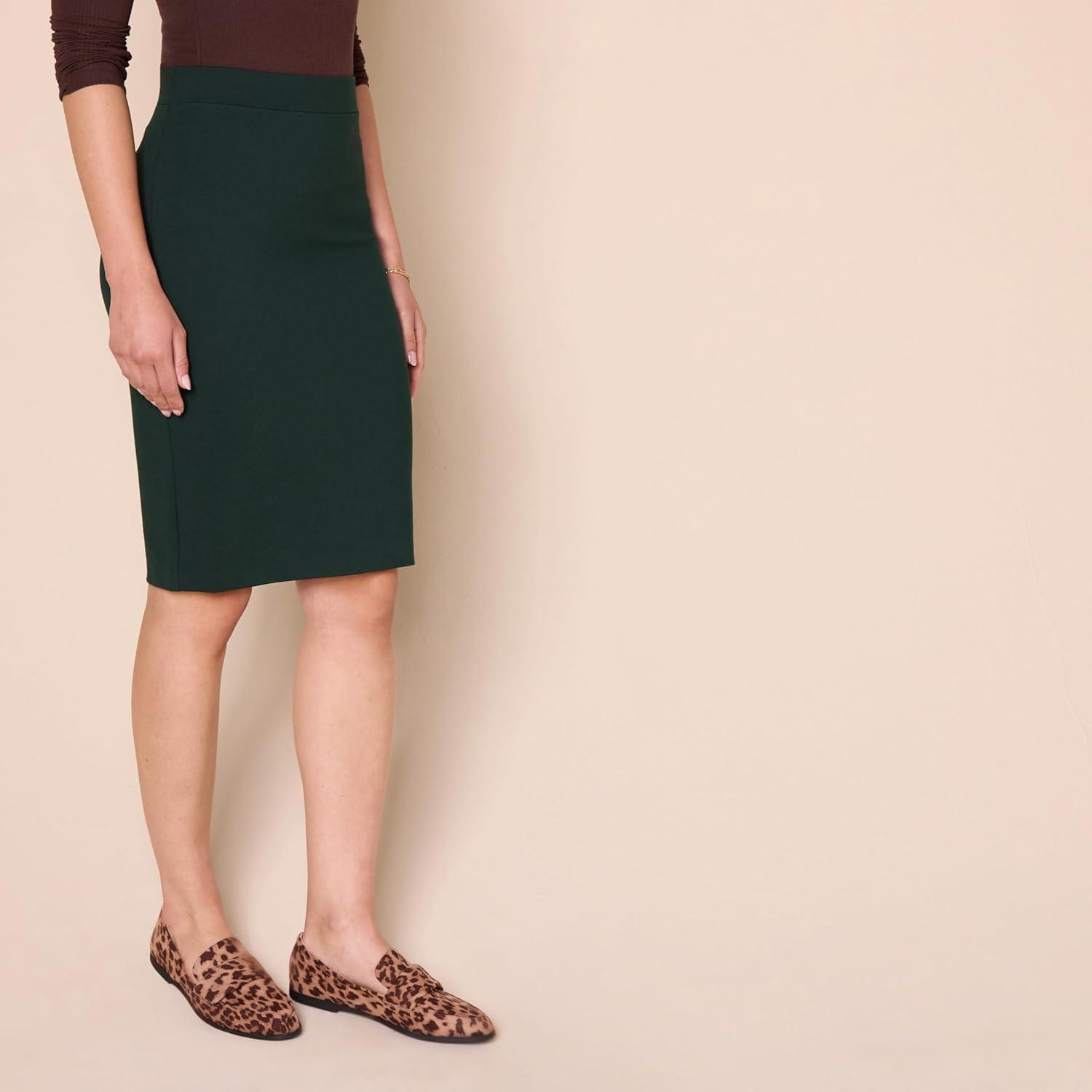 Amazon Essentials Women's Ponte Pull-On Above The Knee Fitted Pencil Skirt(Dark Green)