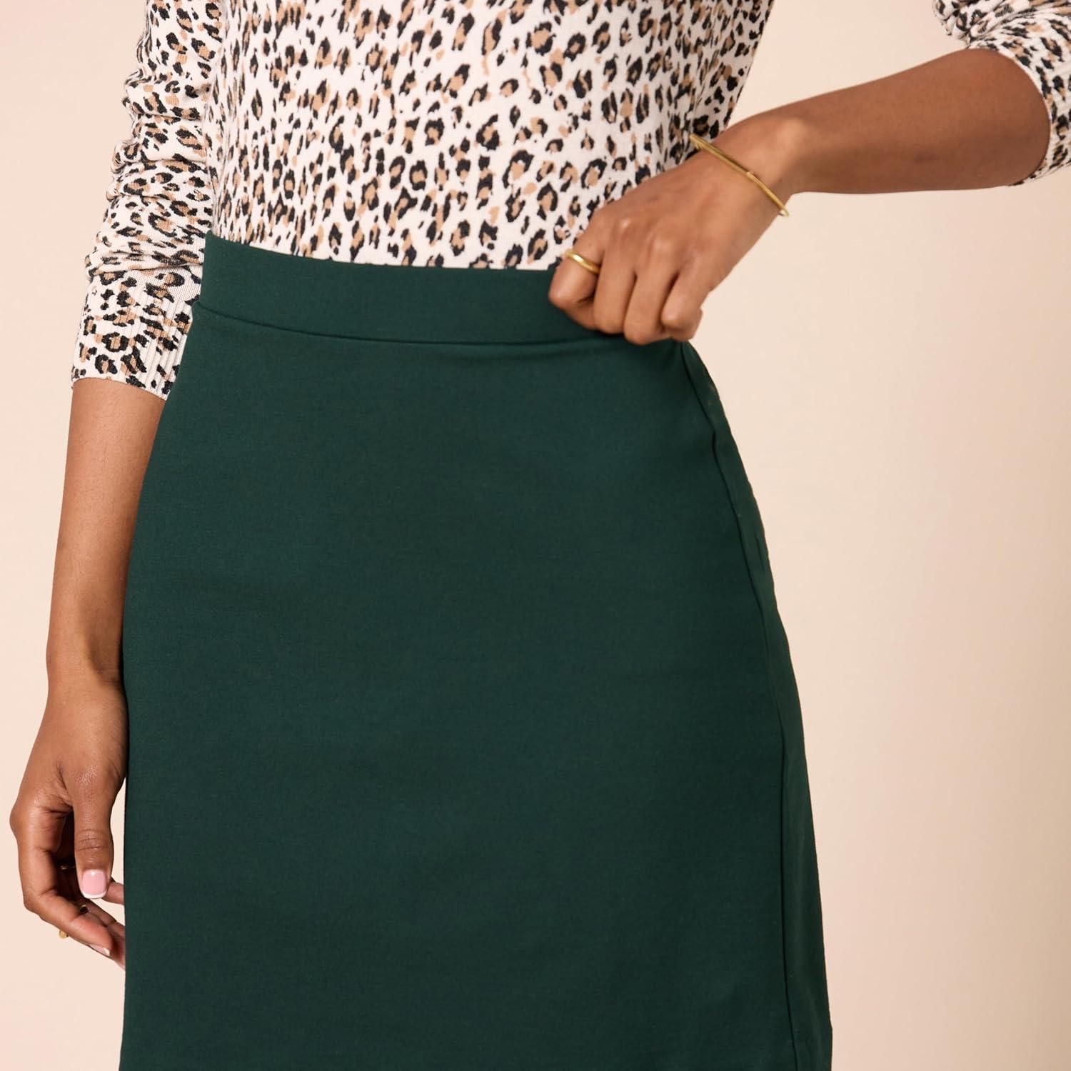 Amazon Essentials Women’s Ponte Pull-On Mini Length A-Line Skirt(Dark Green)