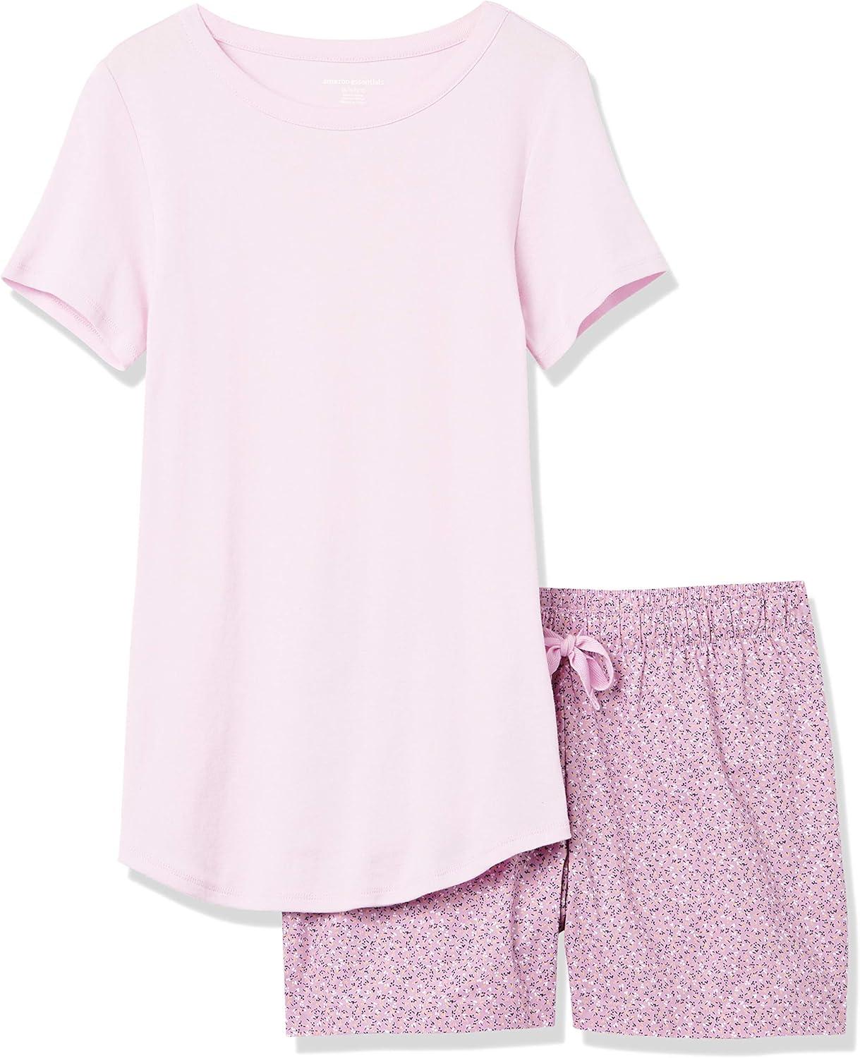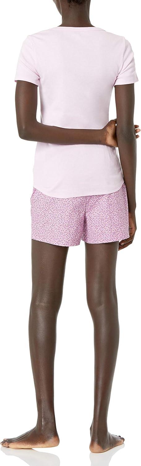 Amazon Essentials Women’s Poplin Short and Sleep Tee Set(Light Pink Cherry Print)