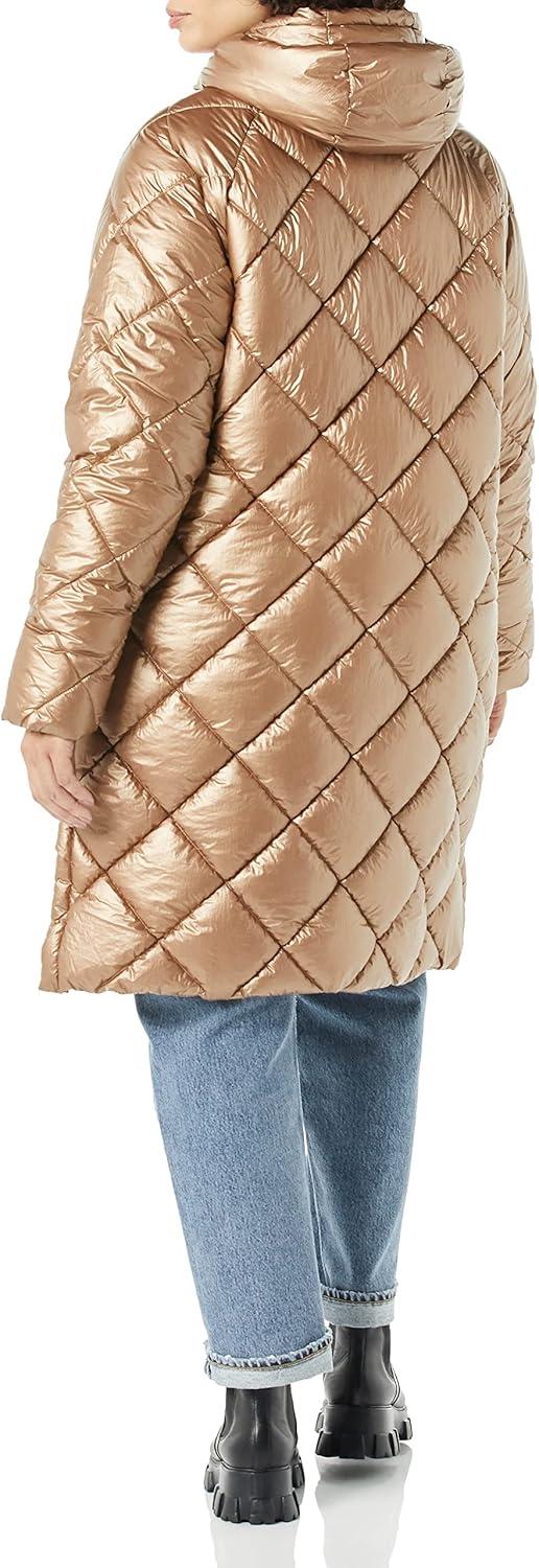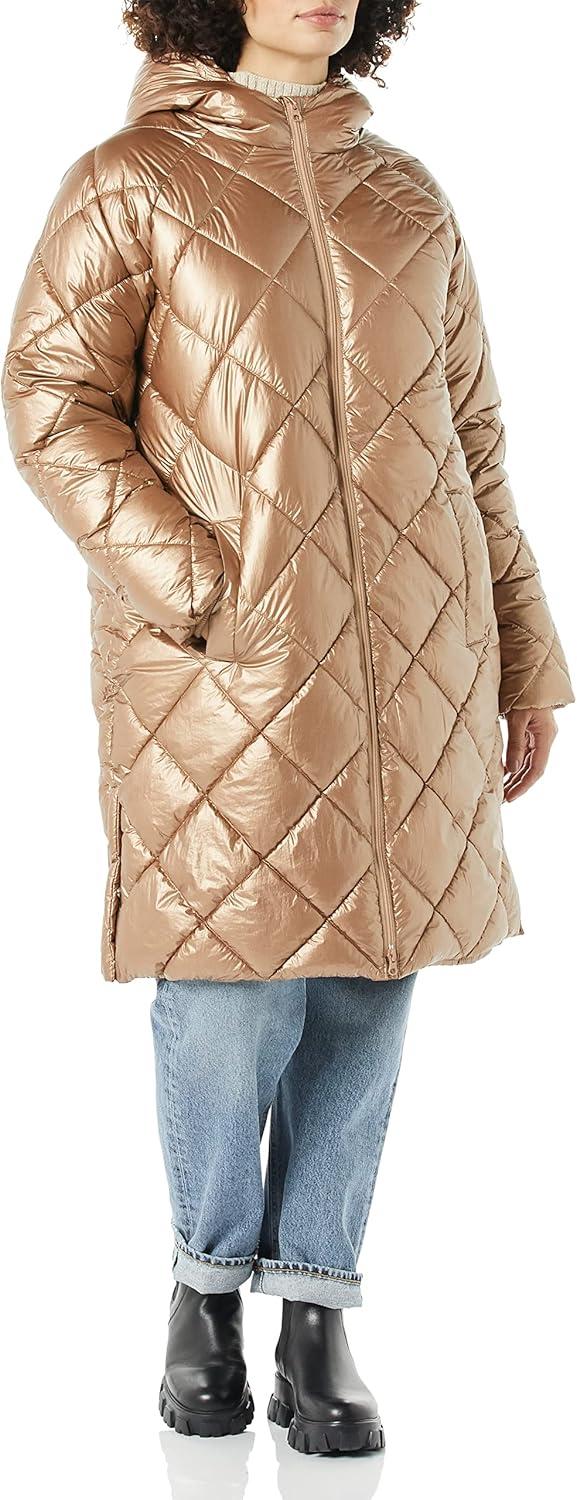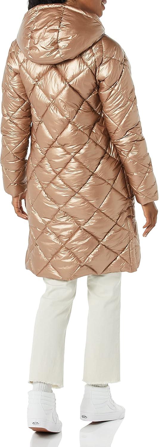Amazon Essentials Women's Puffer Jacket, Heavyweight Diamond Quilted Knee Length Winter Coat(Metallic Taupe)