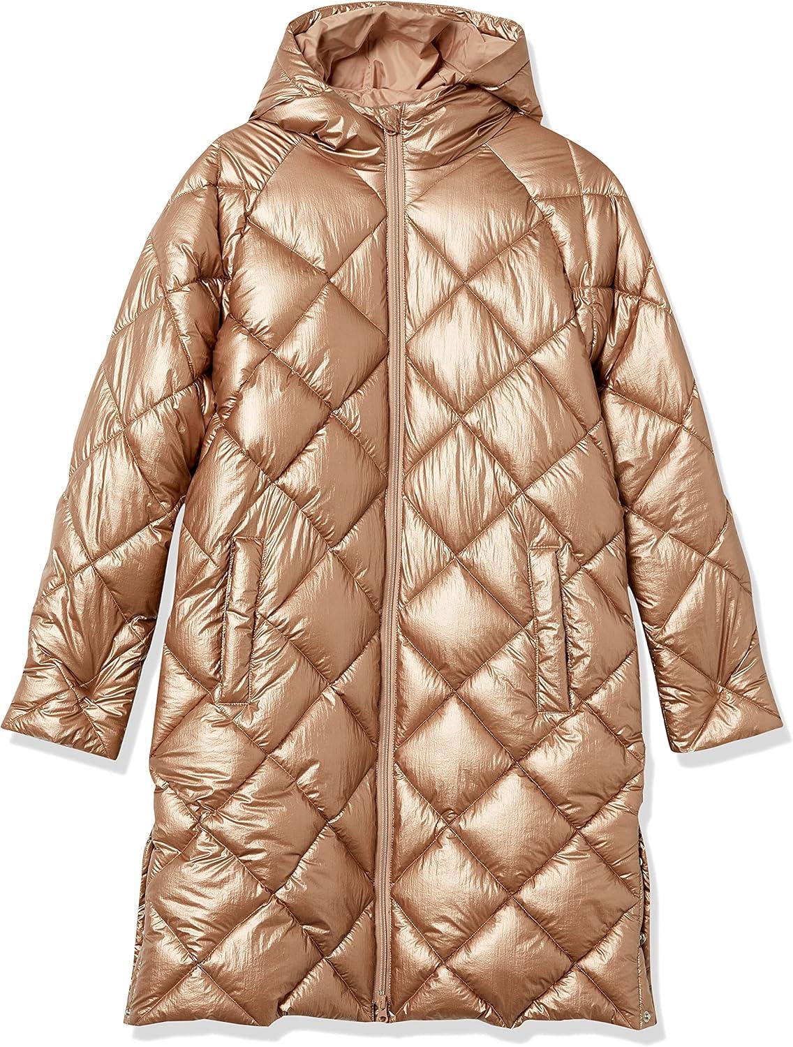 Amazon Essentials Women’s Puffer Jacket, Heavyweight Diamond Quilted Knee Length Winter Coat(Metallic Taupe)