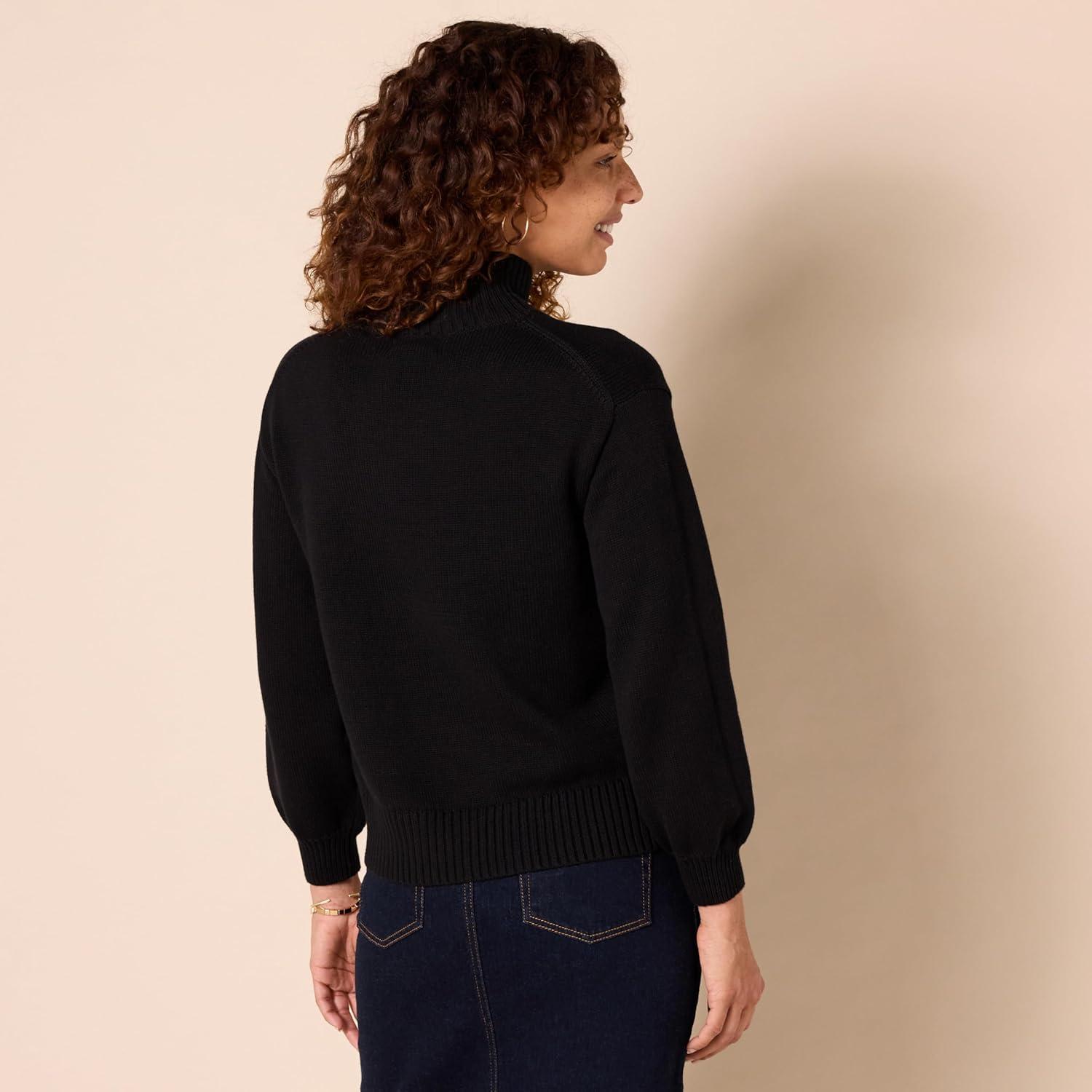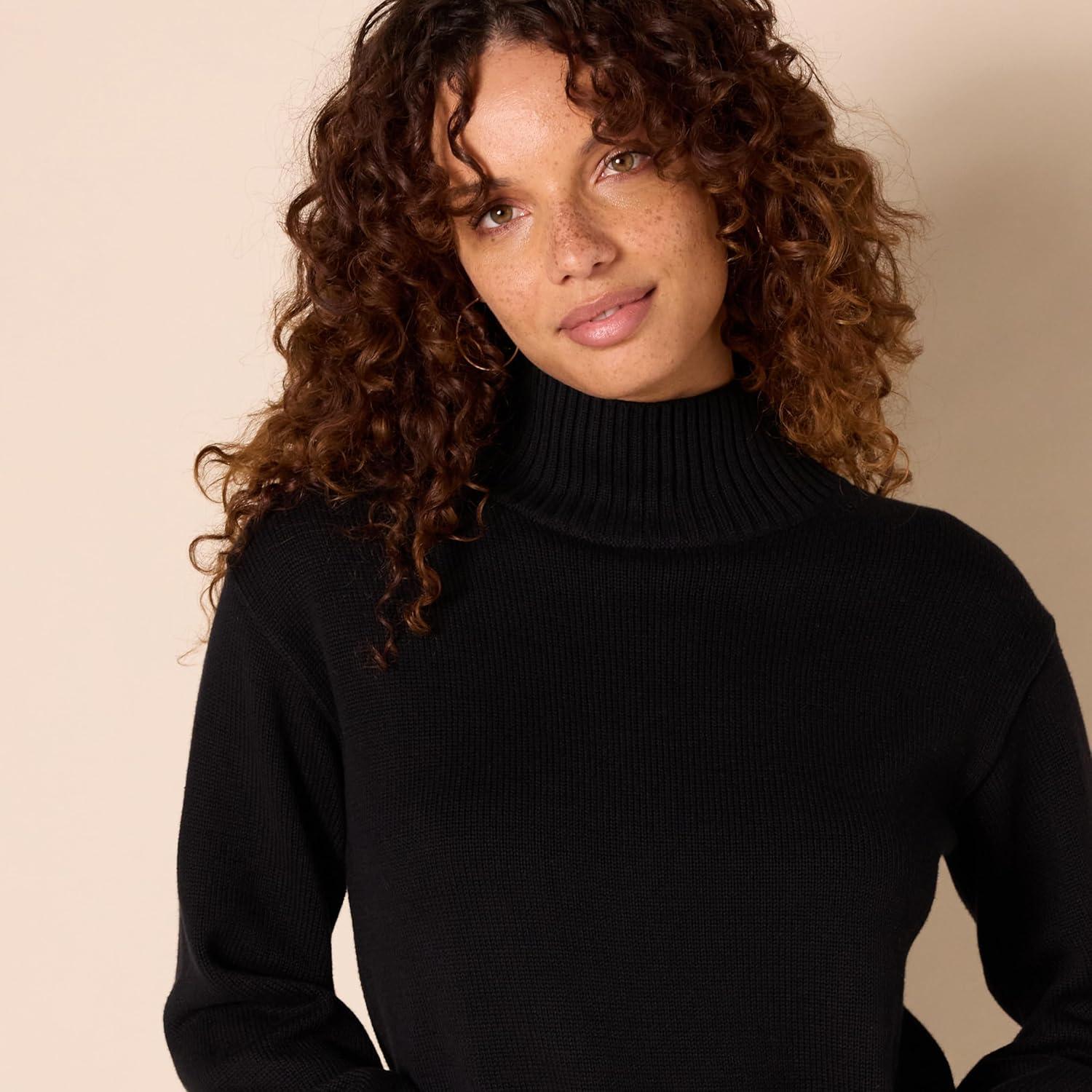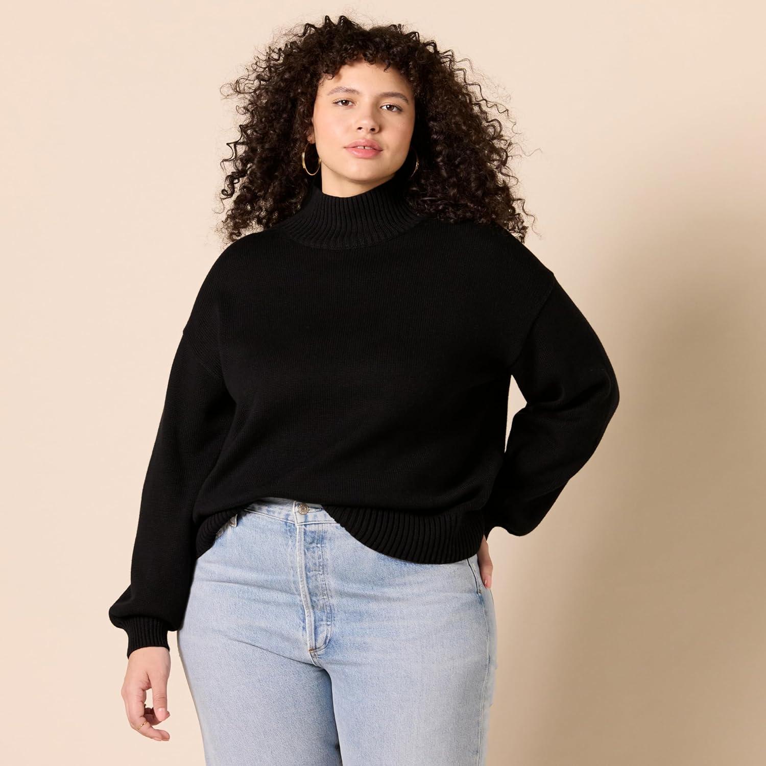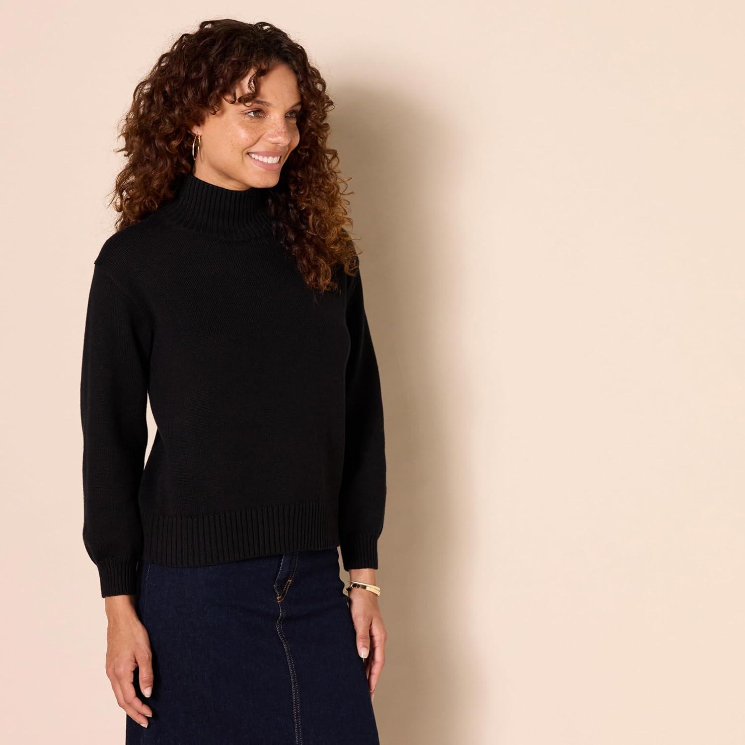 Amazon Essentials Women’s Pull-Over Cotton Sweaters, Funnel-Neck, Available in Plus Size(Black)