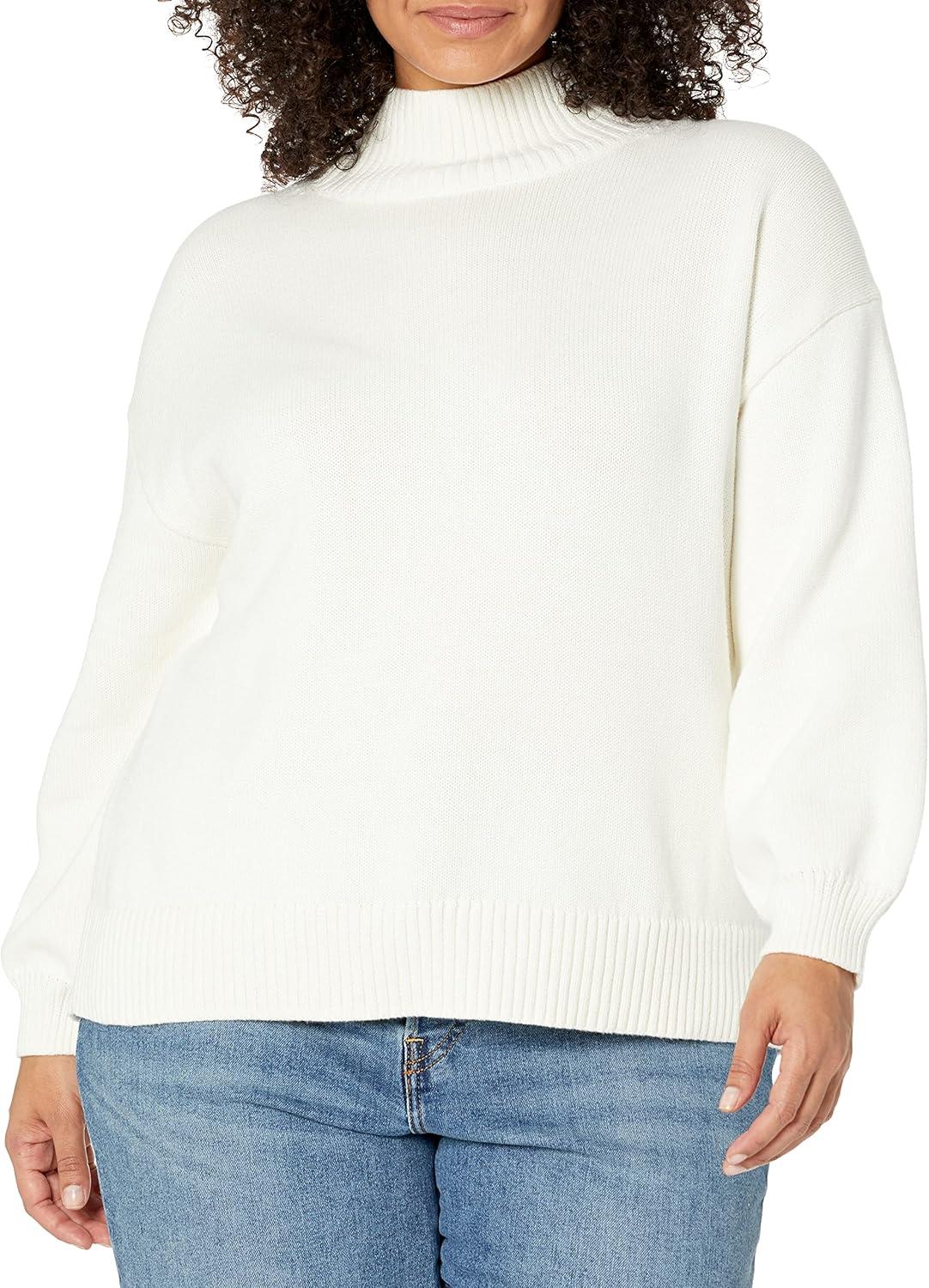 Amazon Essentials Women’s Pull-Over Cotton Sweaters, Funnel-Neck, Available in Plus Size(Eggshell White)