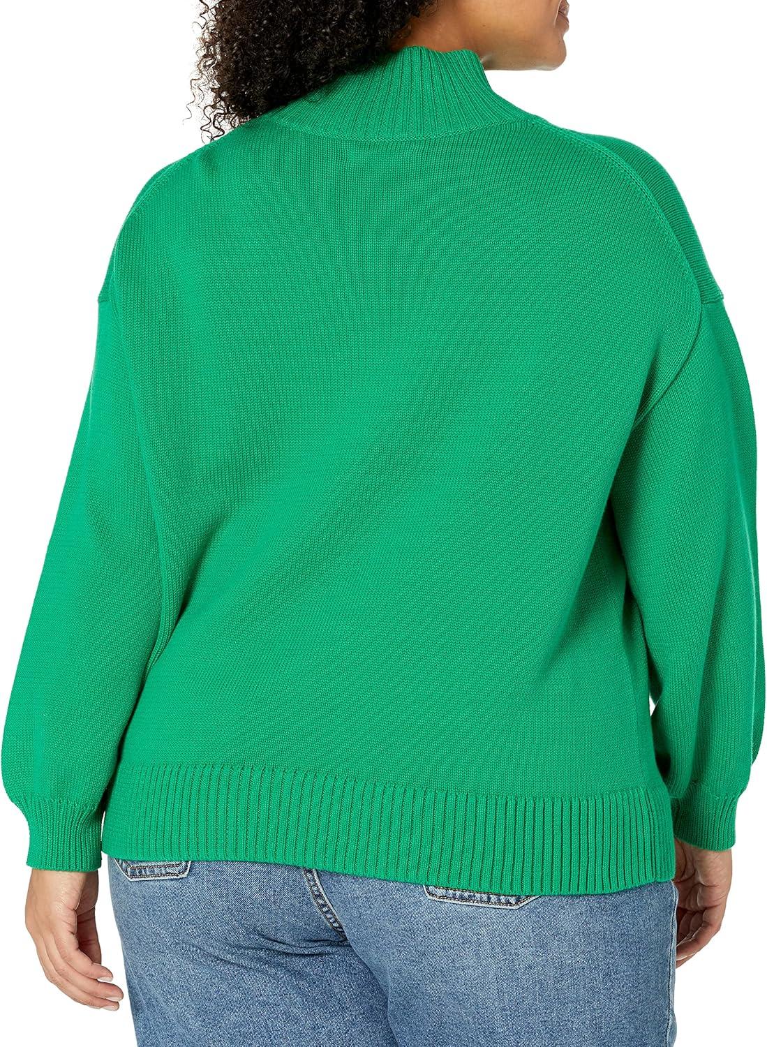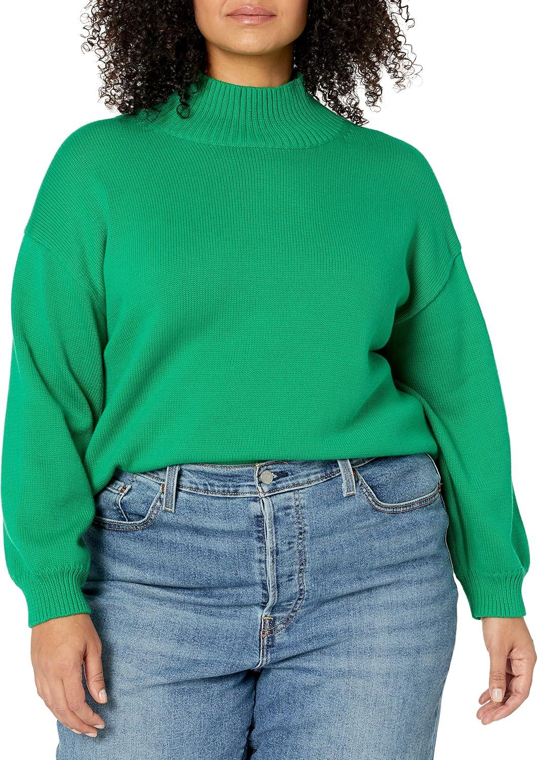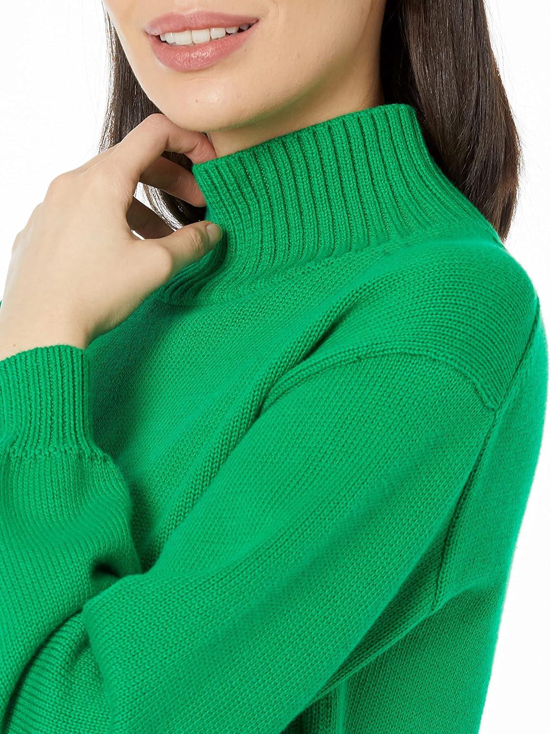Amazon Essentials Women’s Pull-Over Cotton Sweaters, Funnel-Neck, Available in Plus Size(Green)
