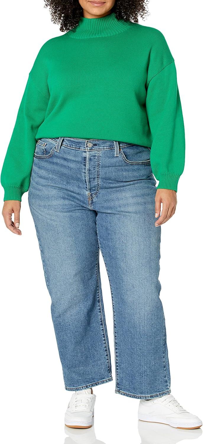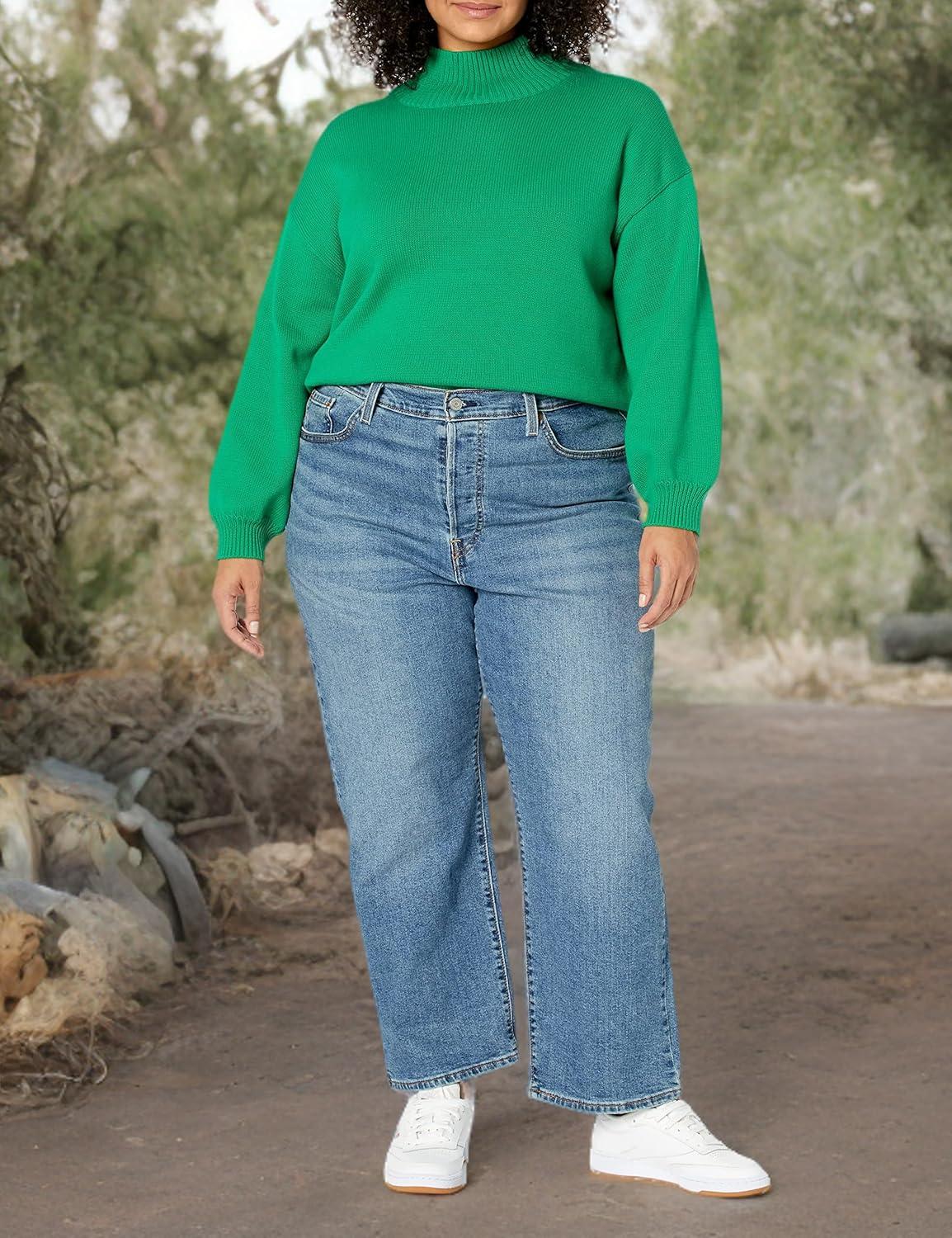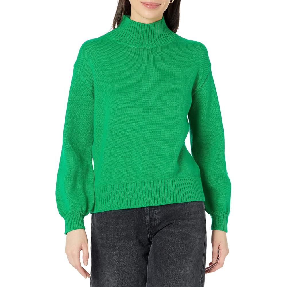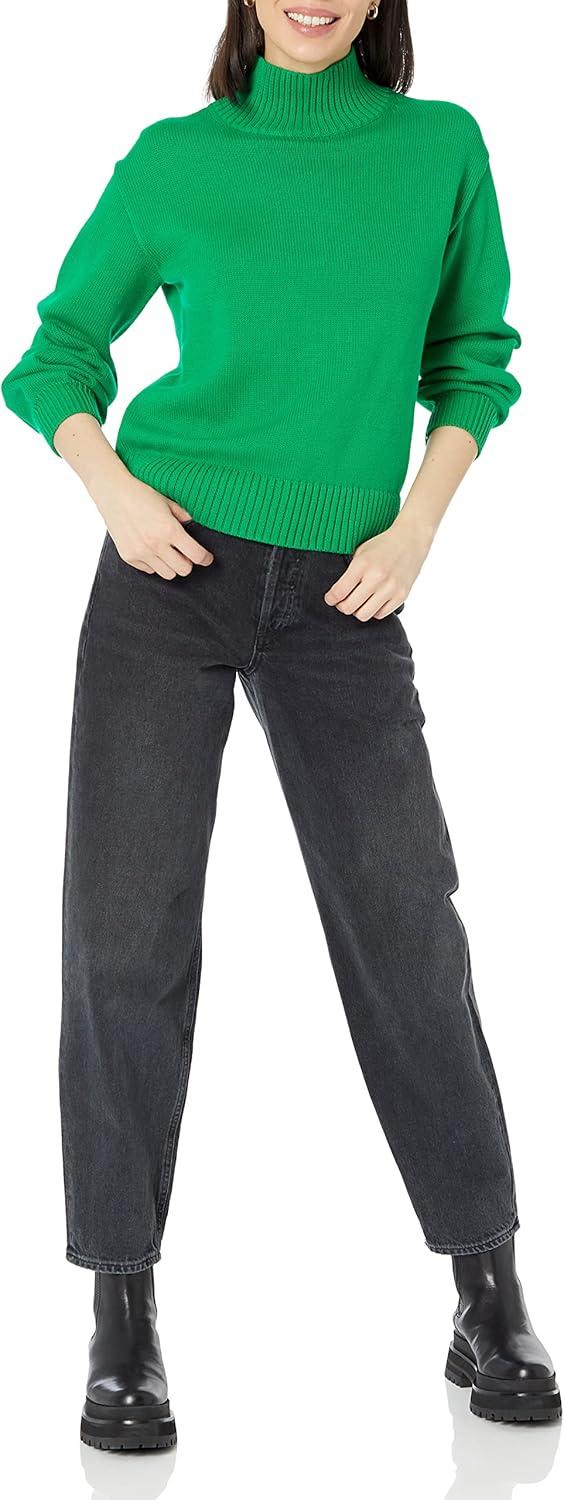 Amazon Essentials Women’s Pull-Over Cotton Sweaters, Funnel-Neck, Available in Plus Size(Green)