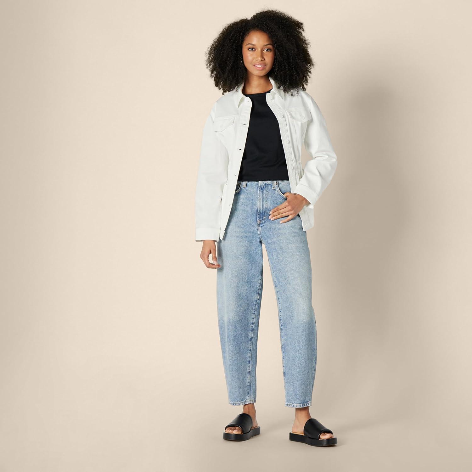 Amazon Essentials Women’s 100% Cotton Regular-Fit Long-Sleeve V-Neck T-Shirt(White)