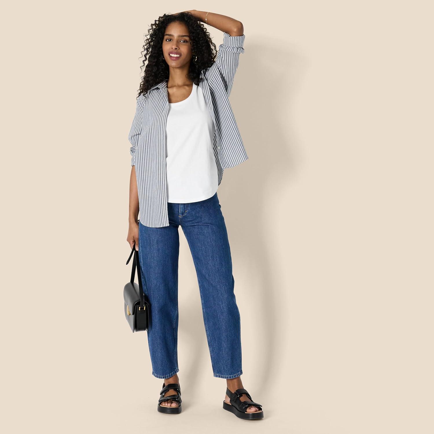 Amazon Essentials Women’s Regular-Fit 100% Cotton Sleeveless Tank Top, Pack of 2(Black/Mariner Stripe)
