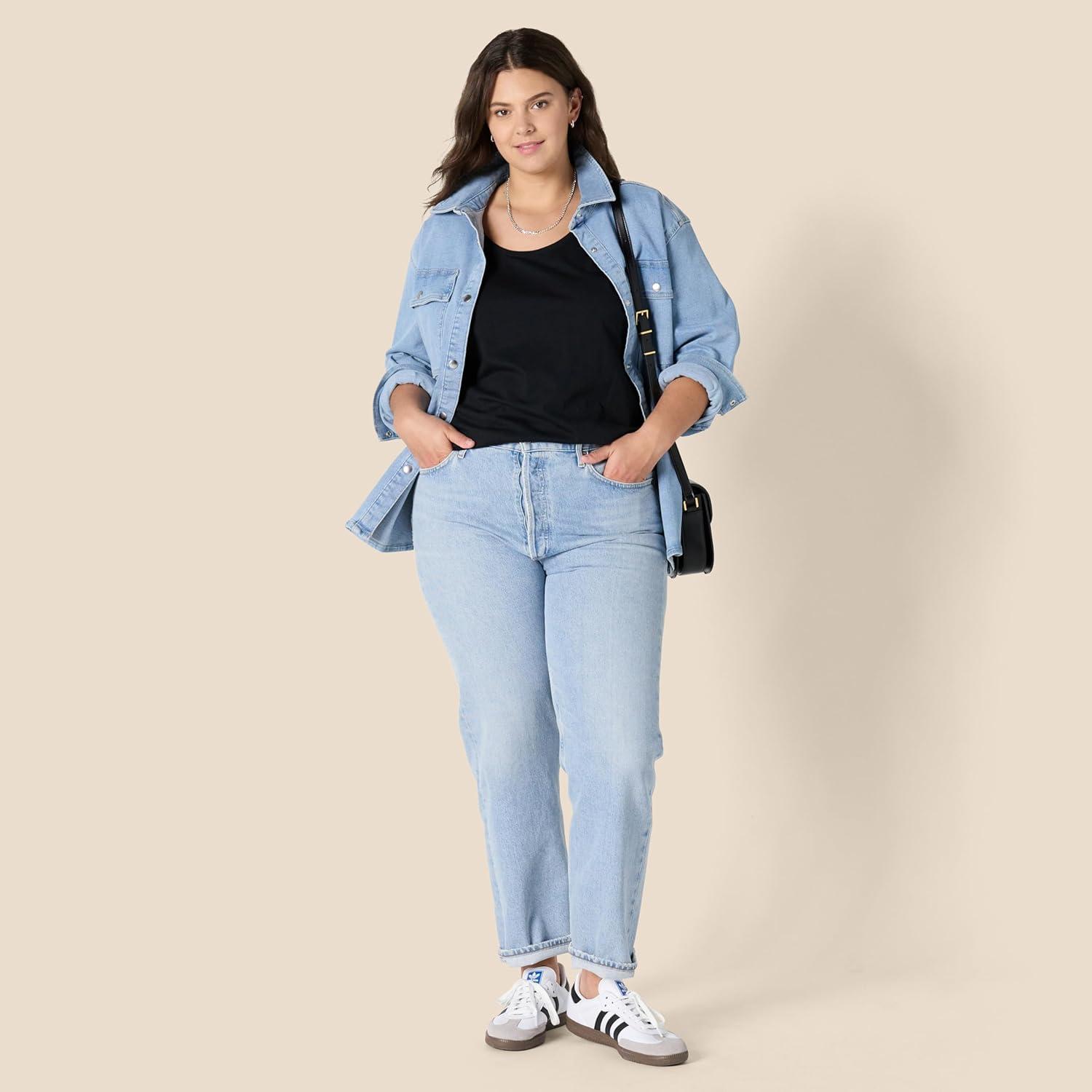 Amazon Essentials Women’s Regular-Fit 100% Cotton Sleeveless Tank Top, Pack of 2(Black/White)