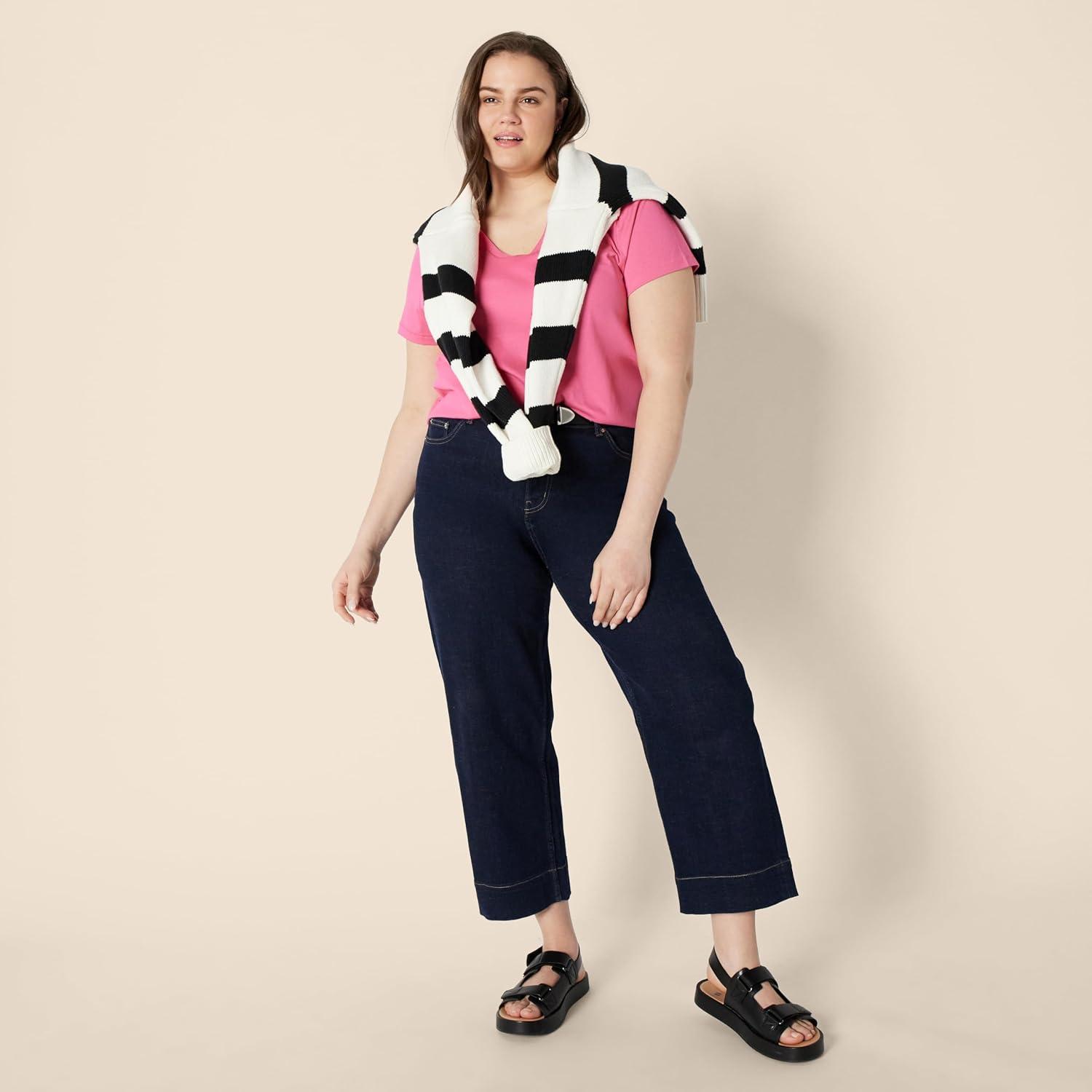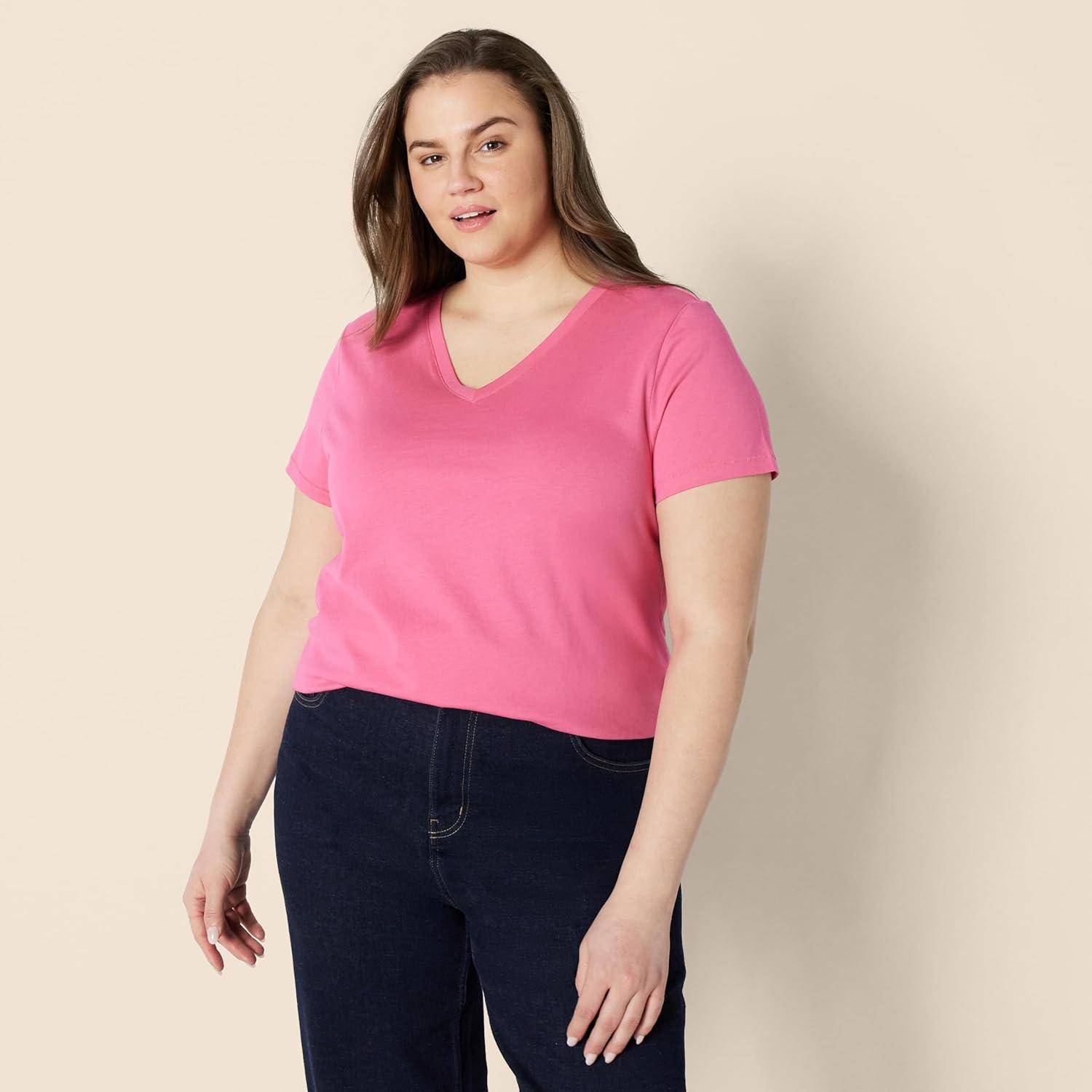 Amazon Essentials Women’s Regular Fit 100% Cotton V-Neck Short Sleeve T-Shirt, Multipacks(Hot Pink)